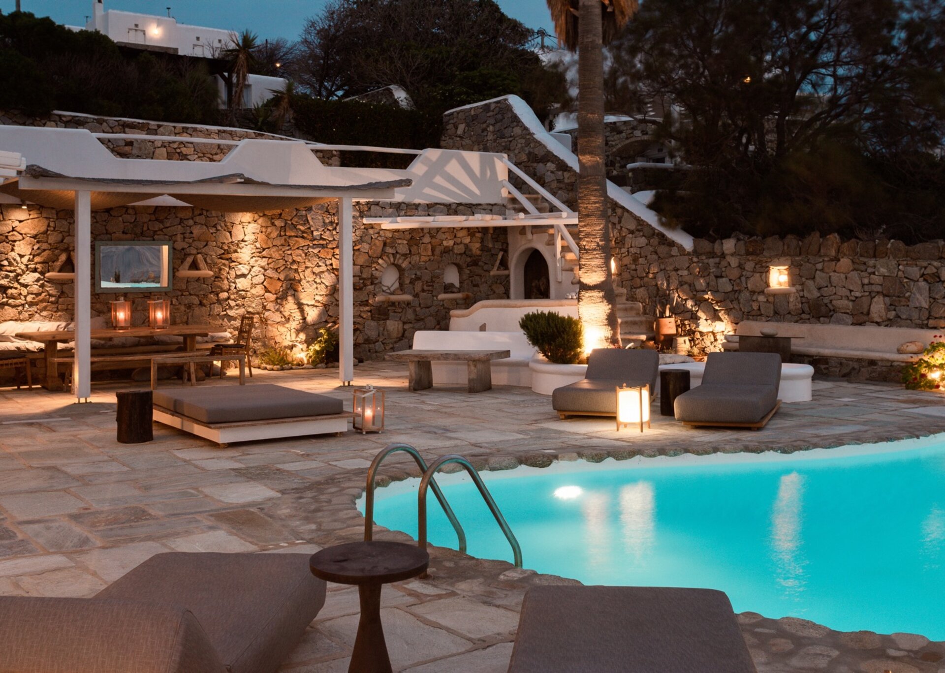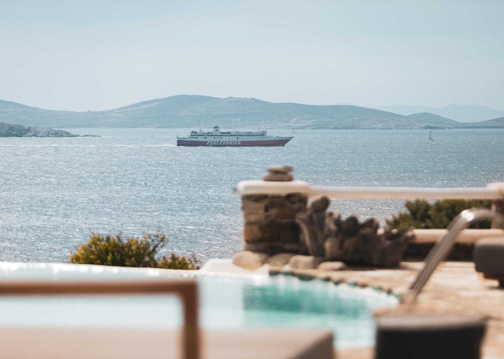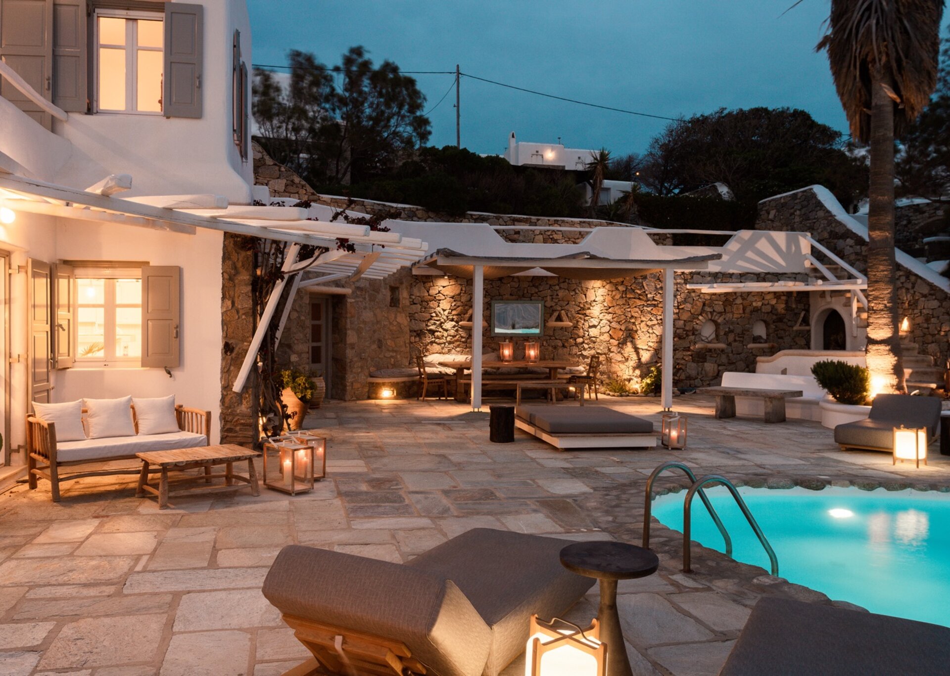 The strategic location of this captivating villa provides numerous advantages to its sophisticated guests, including convenient access to popular destinations, wind protection, and an abundance of personalized services, creating an idyllic Mykonos accommodation experience.