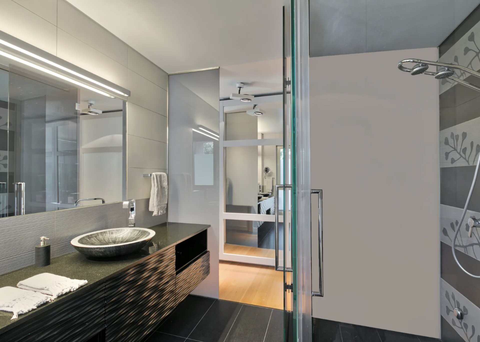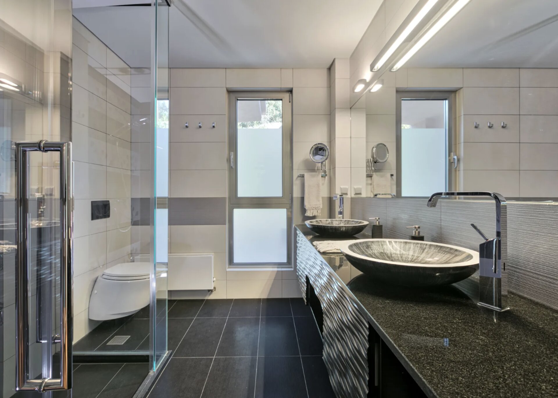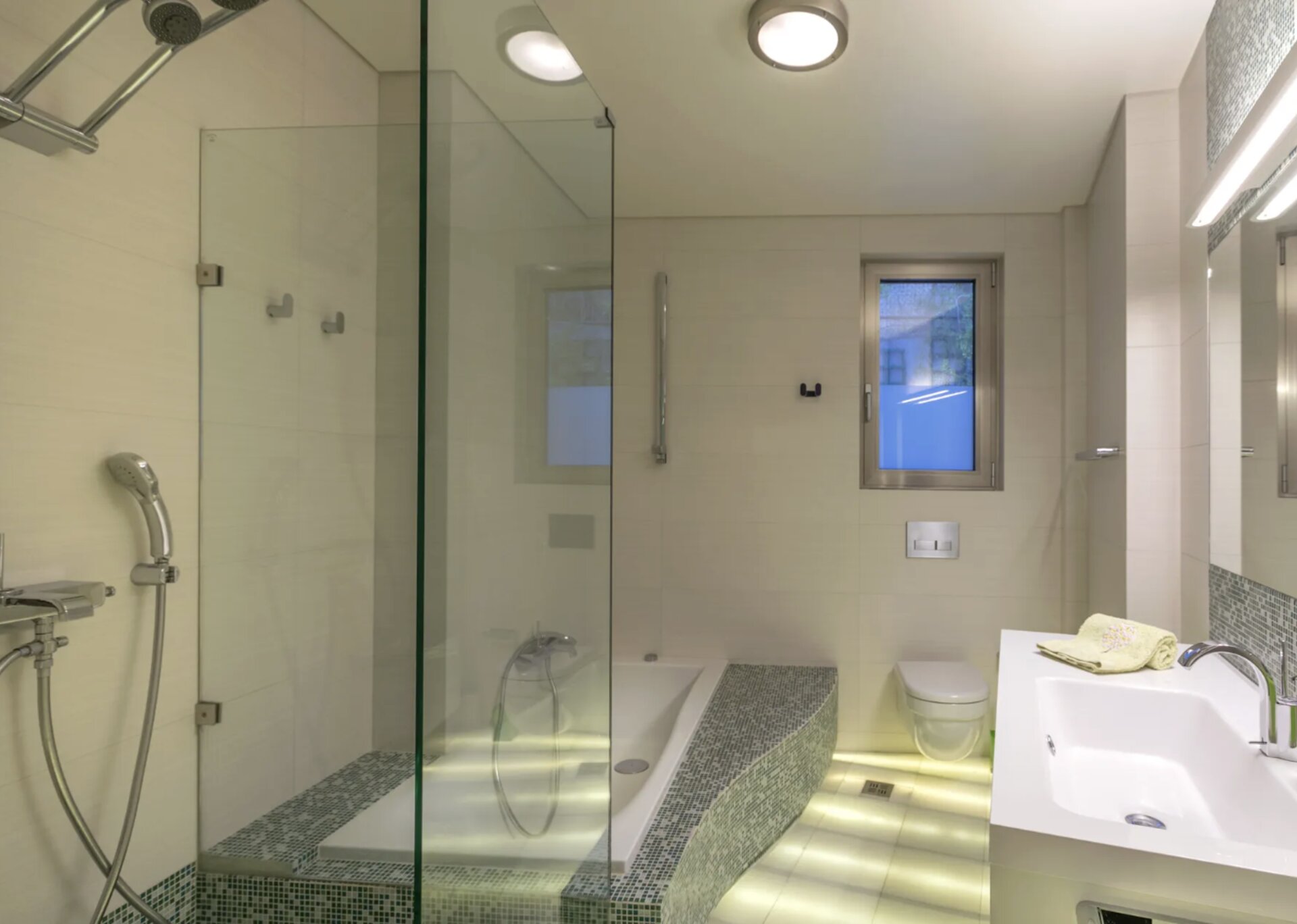 Villa Philia accommodates up to 14 guests across five comfortable bedrooms. Three bedrooms feature queen-size beds, one large bedroom includes two queen beds and two twin beds, while the fifth bedroom offers a king-size bed. Each bedroom includes its own ensuite bathroom with shower, while two additional guest WC facilities provide extra convenience for larger groups.