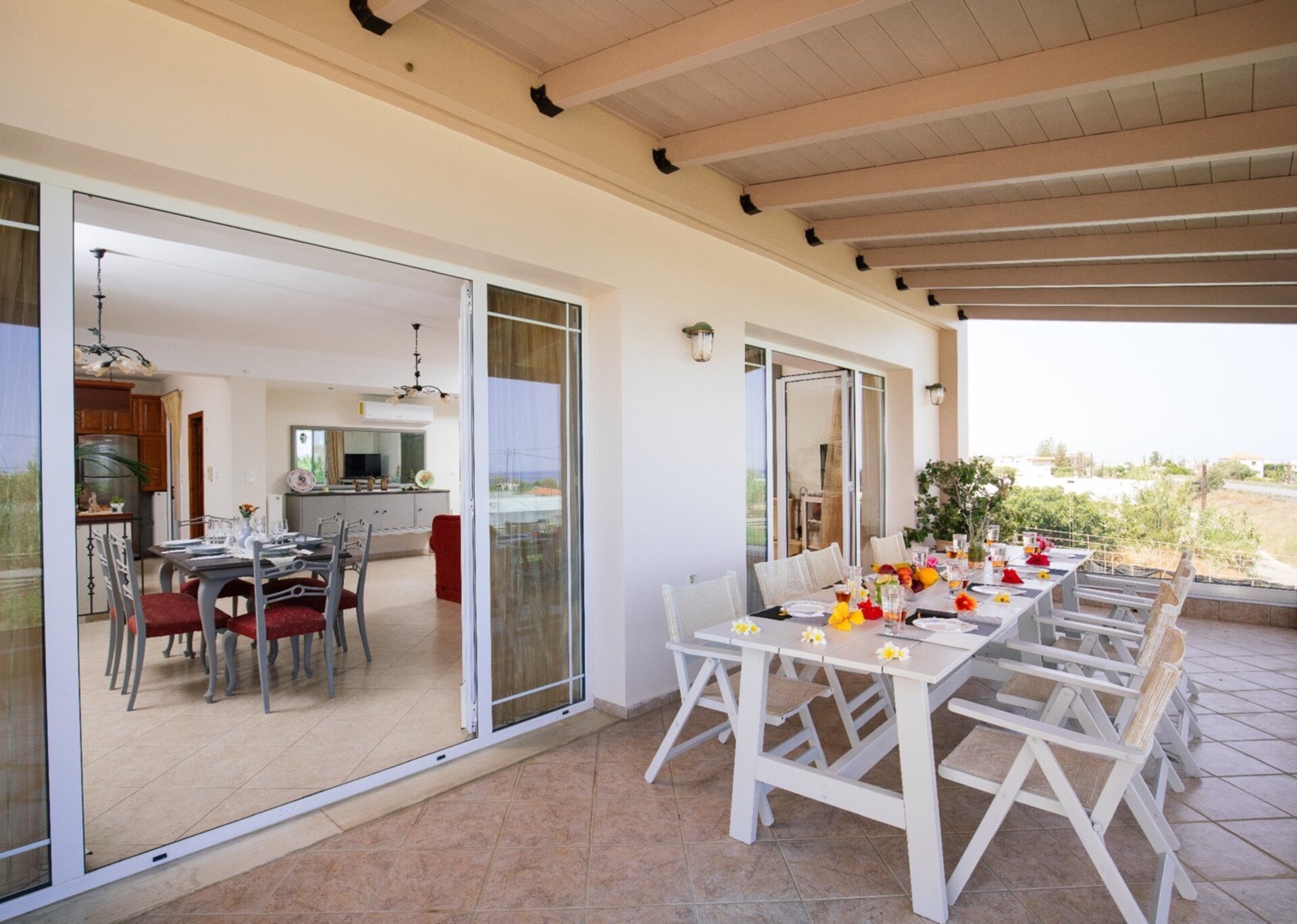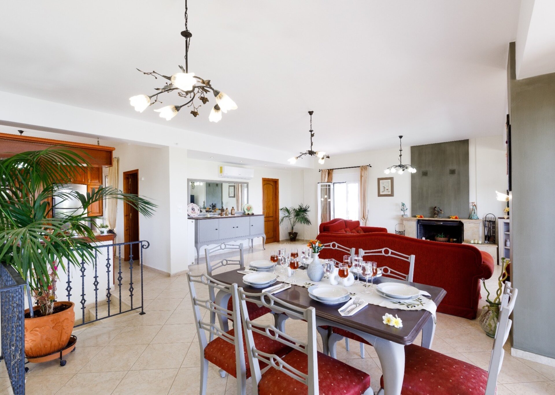 This air-conditioned 4-bedroom villa is elegantly decorated with attention to detail and features classic furnishings and a fireplace. It consists of a living room with a sofa and a flat-screen satellite TV, as well as a kitchen with a dining area and an oven with cooking rings, a balcony and a patio.