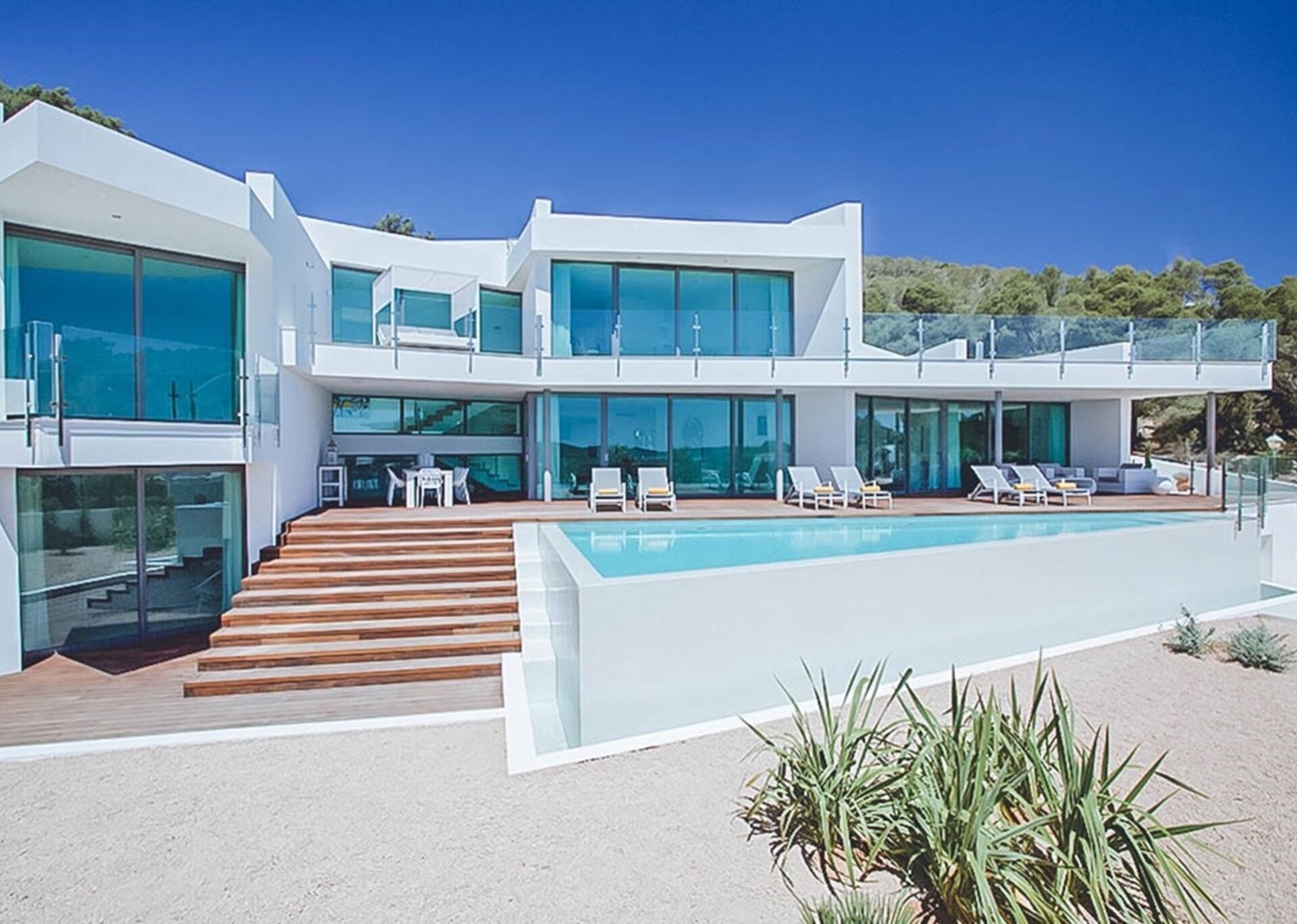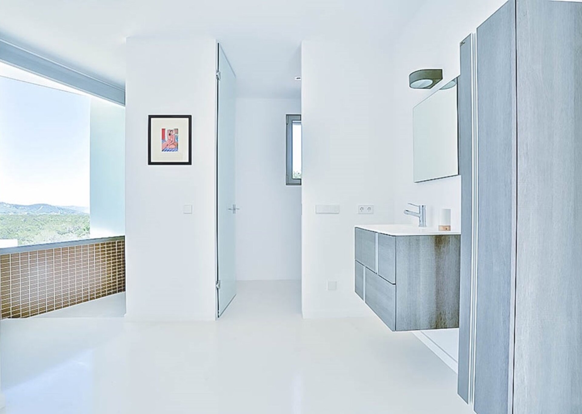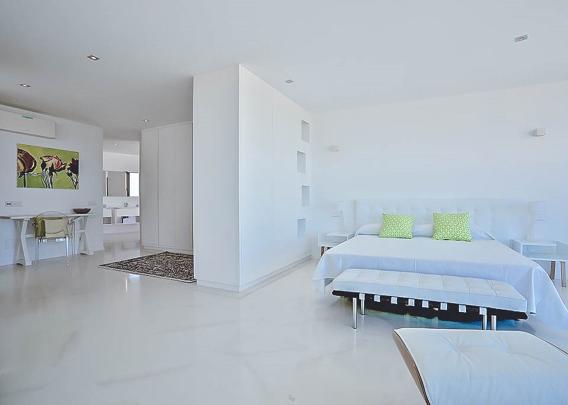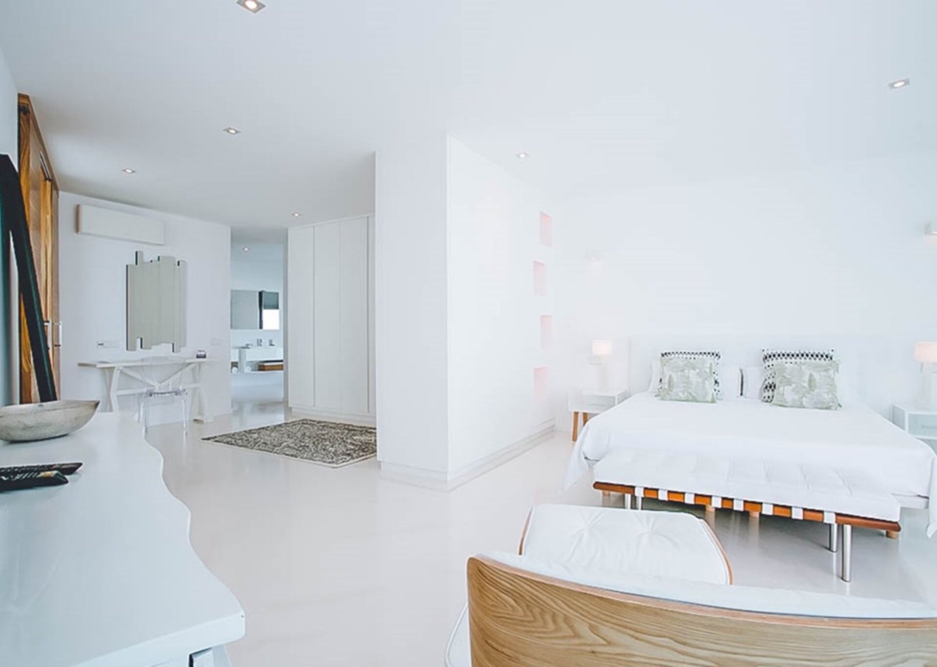 Ascending to the pinnacle of luxury, the master bedroom occupies the entire top floor and boasts its own private terrace, providing an idyllic retreat to soak in the picturesque views that stretch as far as the neighboring island of Formentera. The remaining bedrooms are equally impressive, each complete with its own en-suite bathroom, ensuring the utmost comfort and privacy for all guests.