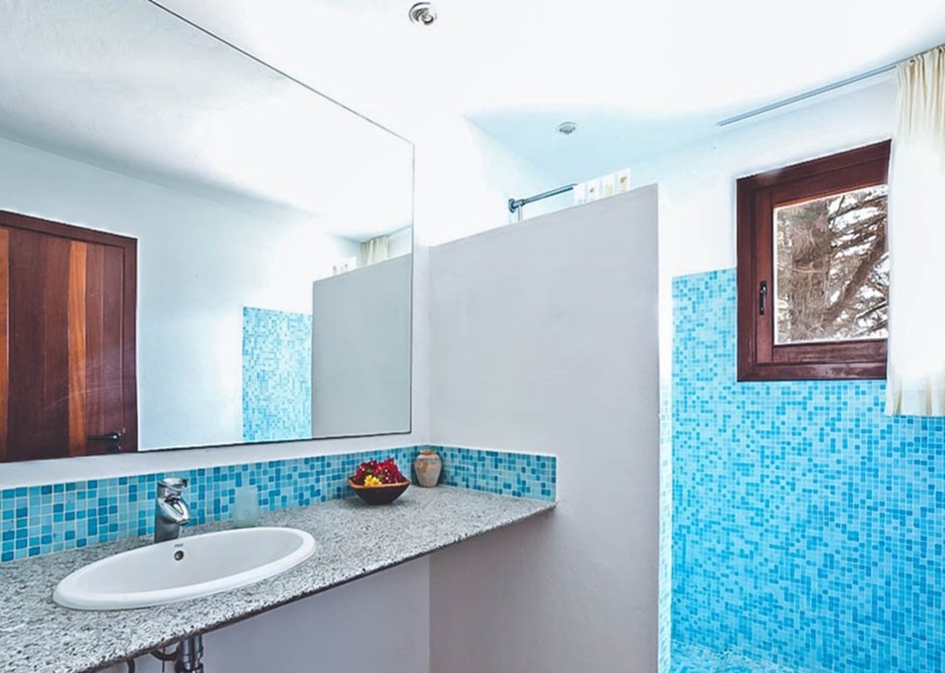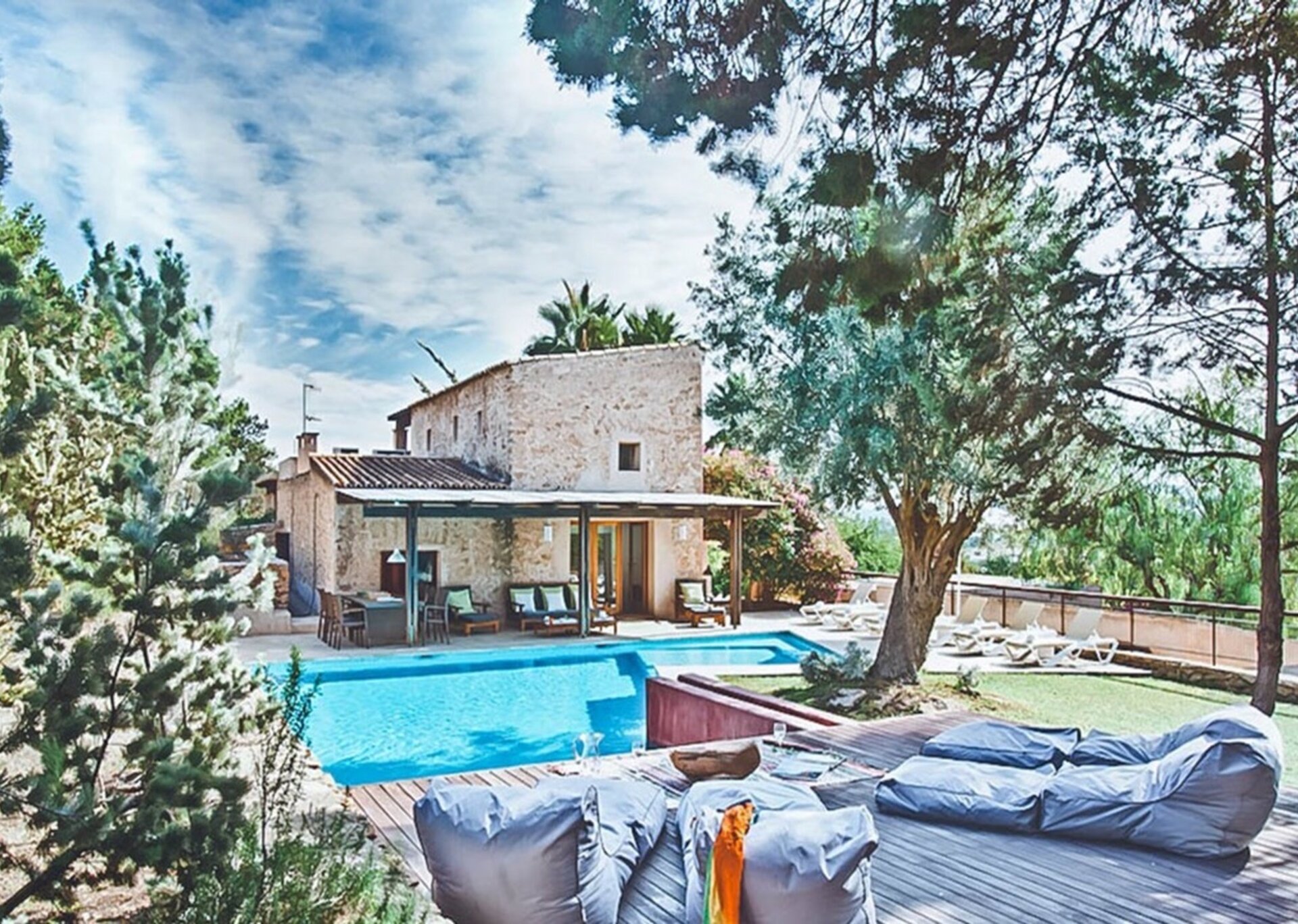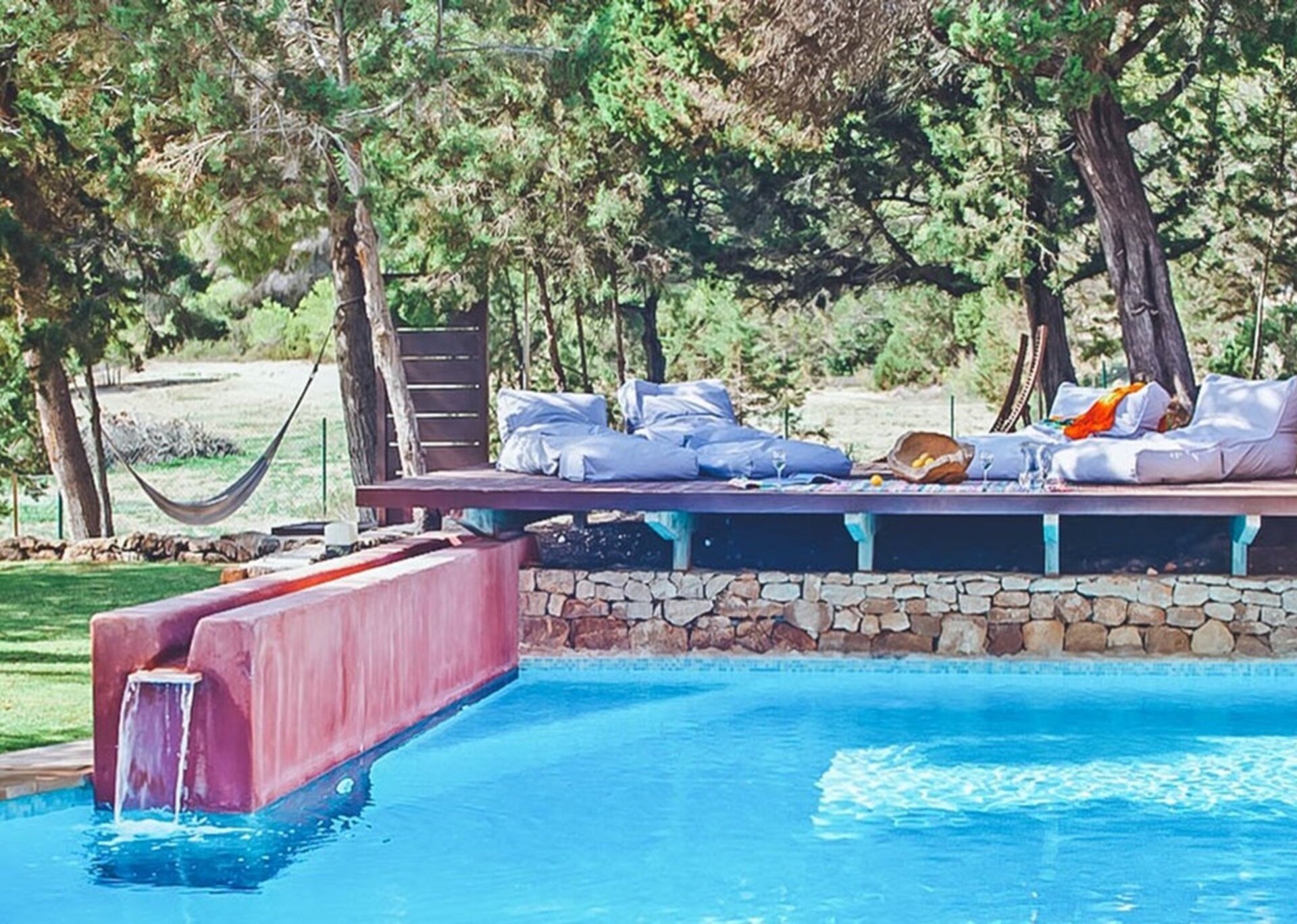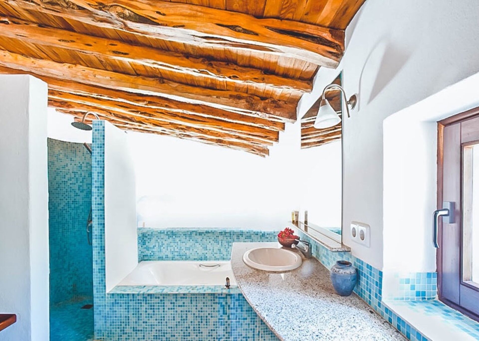 Delight in the comfort of the private L-shaped pool, surrounded by inviting terraces and luxurious wooden decking. An expansive terrace shaded by a traditional wooden-beamed roof beckons al-fresco dining, while picturesque gardens invite you to relax in exterior seating areas. A charming wooden pergola offers a second outside dining space. And let's not forget the mesmerizing spectacle of the world-famous Ibizan sunset painting the sky each night, making this truly desirable holiday home even more magical.