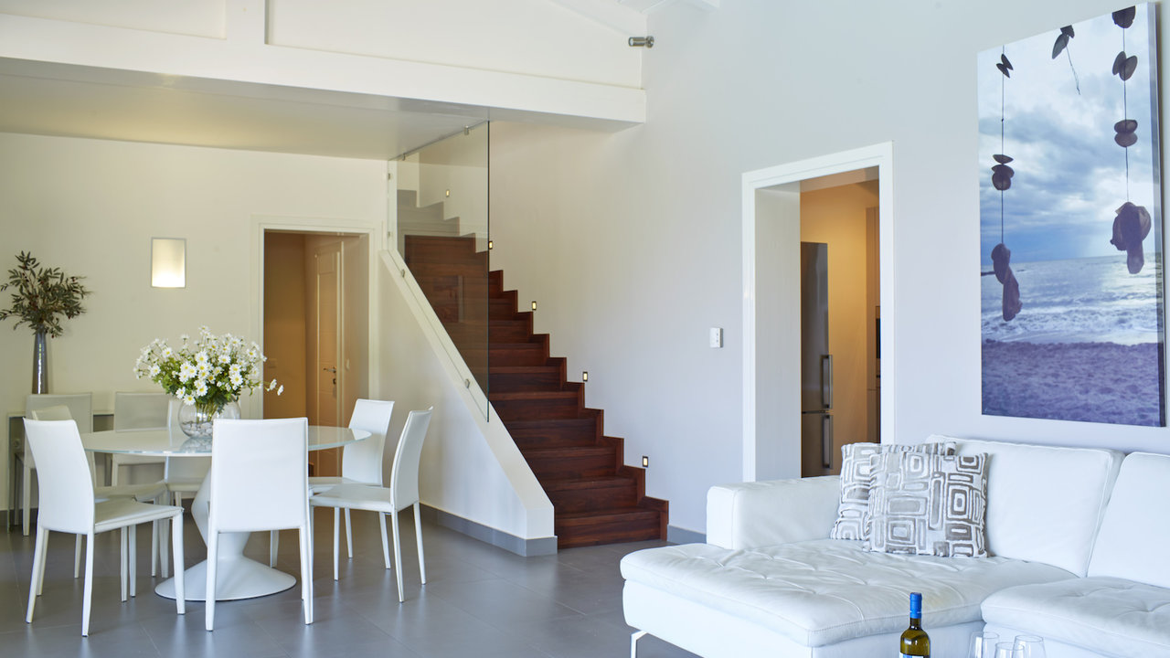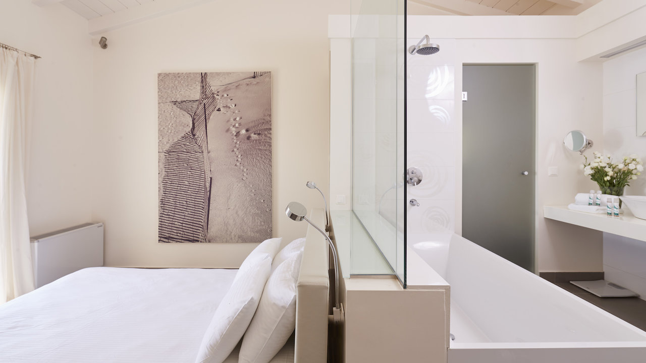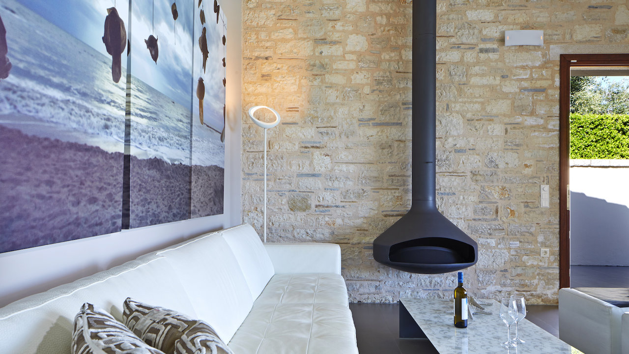 The indoor area, undoubtedly capures the Ionian spirit of the island. Rayna's decoration is crisp, bright and elegant, while the furniture are high end luxury pieces and extremely classy. The living room is like a lavish and cozy nestle, with a magnificent design. In the early hours of the day the house is sunbathed but cool as it is fully air conditioned. The mansion can accommodate up to 8 perosns into 4 fully featured and comfortable en suited bedrooms. The bedrooms are spacious and have large windows to invite the sunlight inside and provide you a privilleged viewpoint of the unobstructed crystal view of the sea.