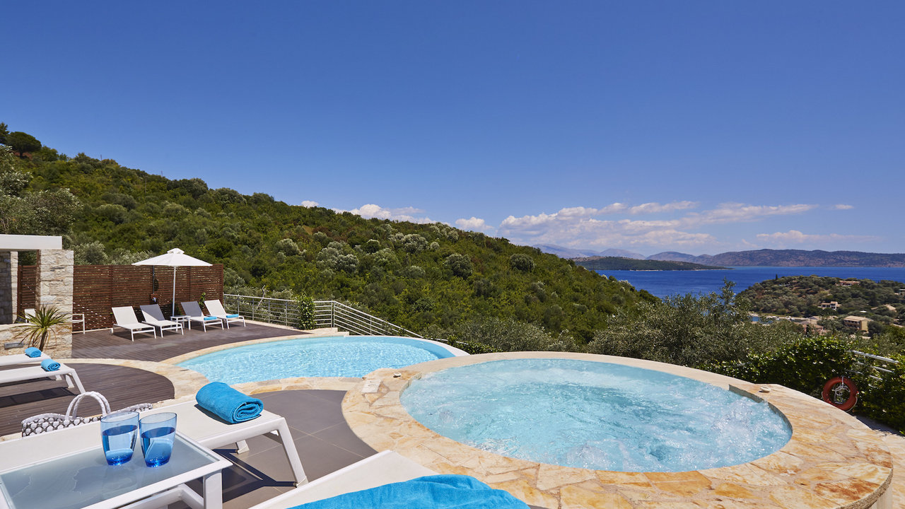 Ideally located in the charming village of San Stefano, villa Rayna occupies a secluded plot at the southwestern coast of Corfu. The villa is highlighted by its luxurious amenities and an astounding blue vista of the San Stefano's harbour. The dashing outdoor area offers paved terraces with astonishing lounging spots and wonderful large private swimming pool with an outdoor Jacuzzi featured with sunbeds and surrounded by greenery. The landscape around Rayna makes its guests experience the totally serene and peaceful atmosphere, while it may create a feeling that the property is situated to an immaculate emerald garden.