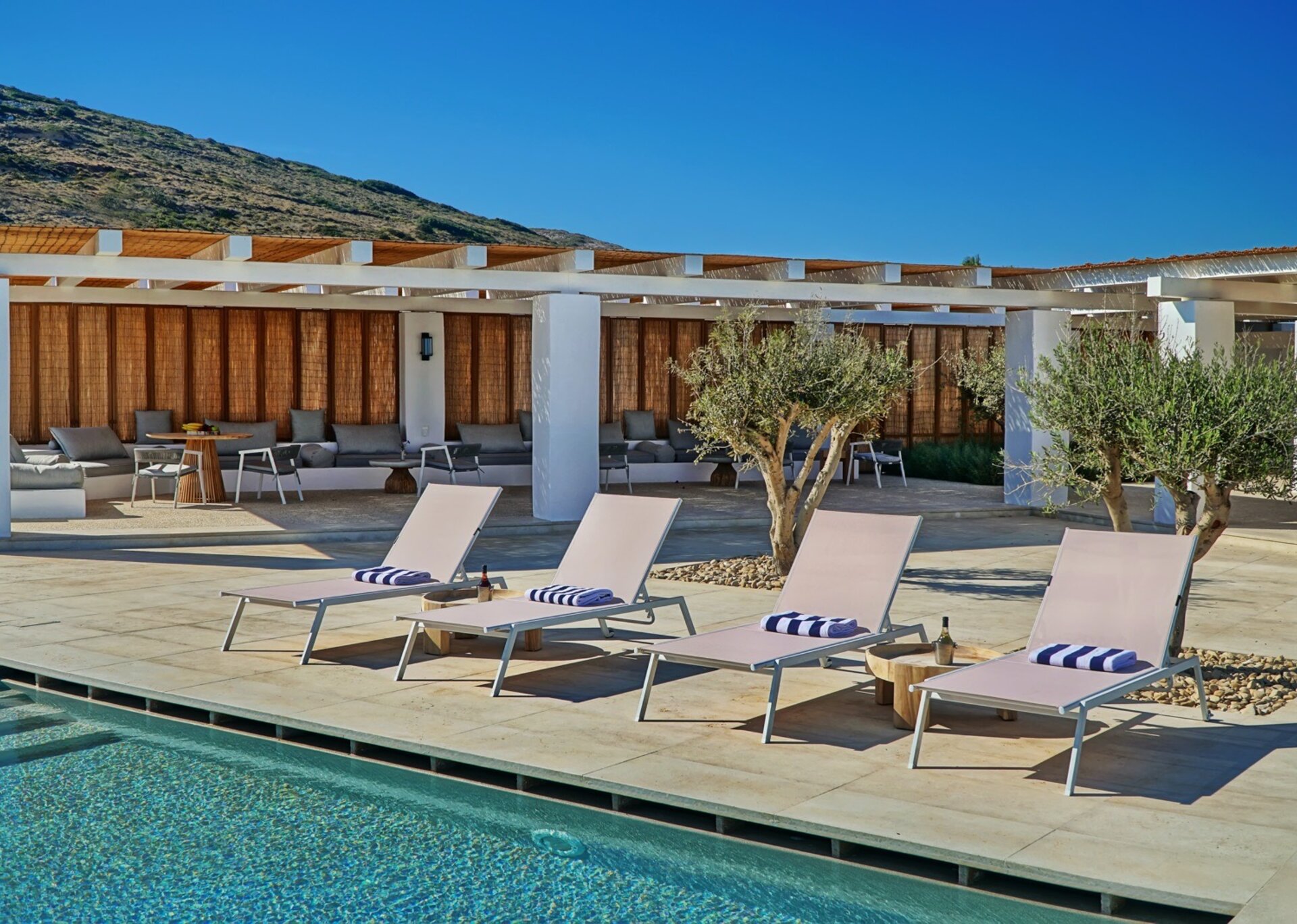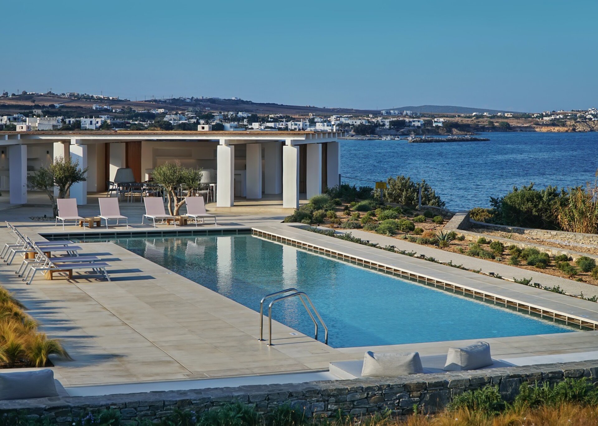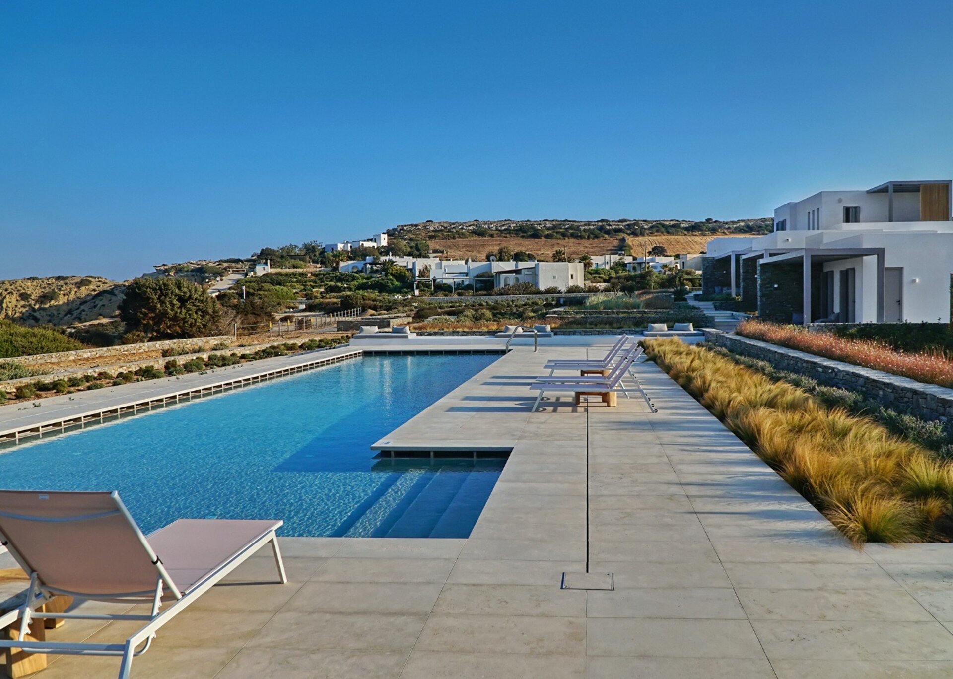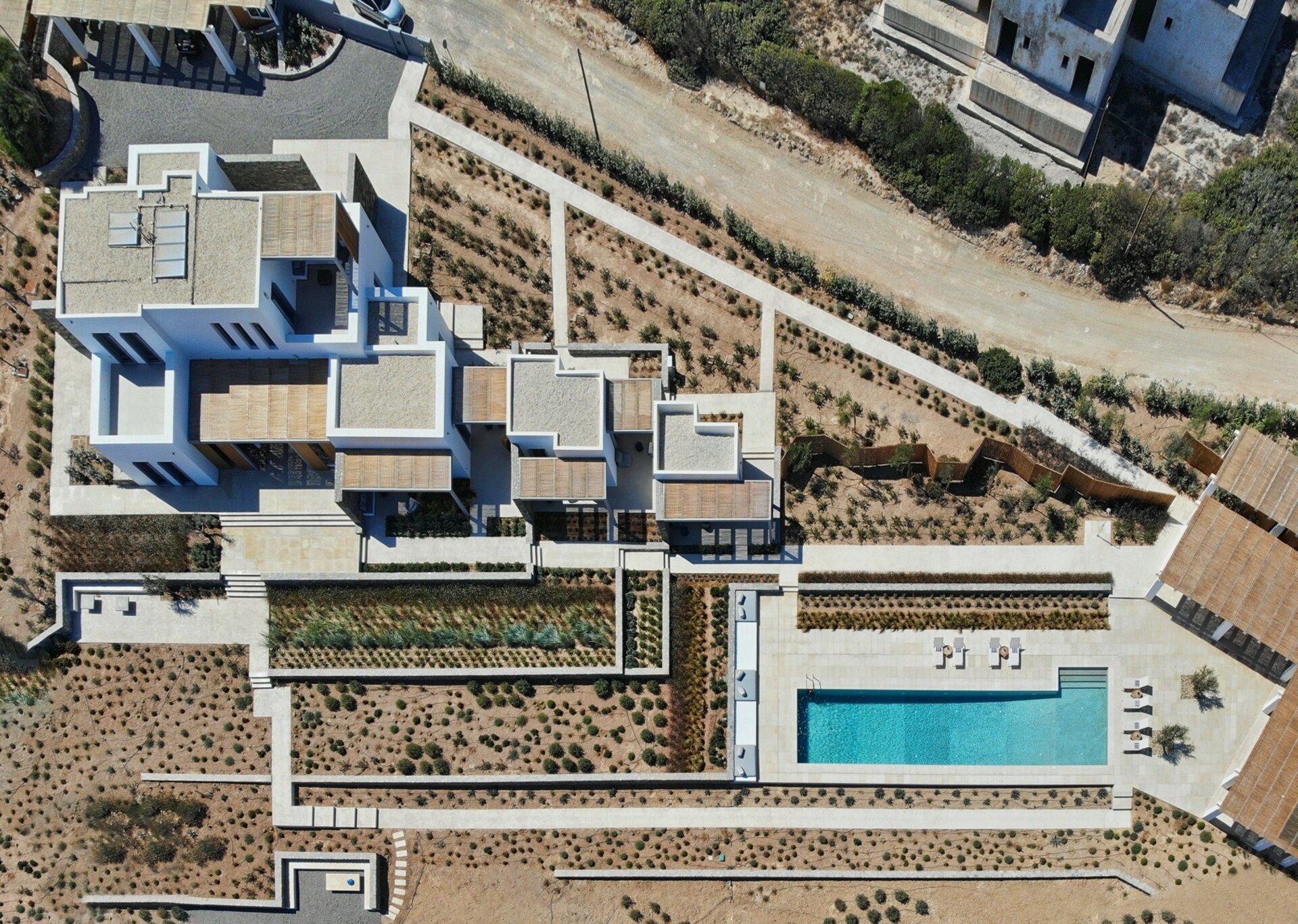 Nestled in the charming village of Ampelas, a picturesque setting unfolds against the backdrop of untouched Cycladic landscape. Villa Regalia, with its minimalist architecture, creates an effortlessly luxurious and tranquil environment. This brand-new summer villa perfectly harmonizes with the natural wilderness of the surroundings. Its privileged location offers a sense of seclusion, while the clean lines and unobstructed sea view of its minimal design provide a serene haven for its visitors.