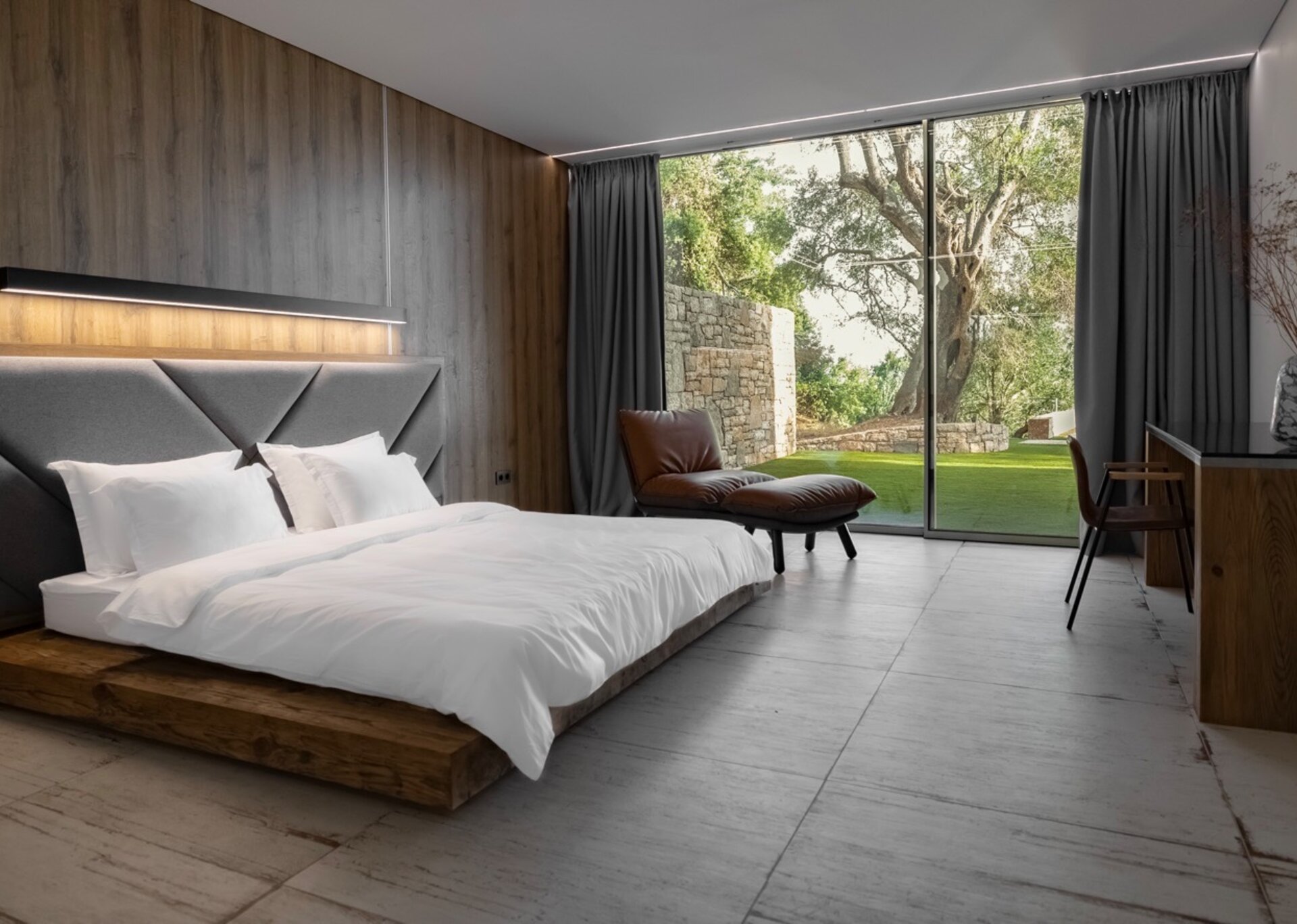 Indulge in your vacation fantasy - awaken each morning surrounded by the vibrance of olive groves. Let the stunning azure waters of the bay captivate you. Nestled within a private 40,000 sq.m. sanctuary lie luxe villas, a mere stroll apart. Embrace the awe-inspiring beauty of nature that envelops this enchanting retreat. Accommodating larger groups, the luxury villas can be reserved together. Experience direct sea views from the cliffside and witness the breathtaking horizon. This idyllic haven is the ultimate destination for an unforgettable getaway.