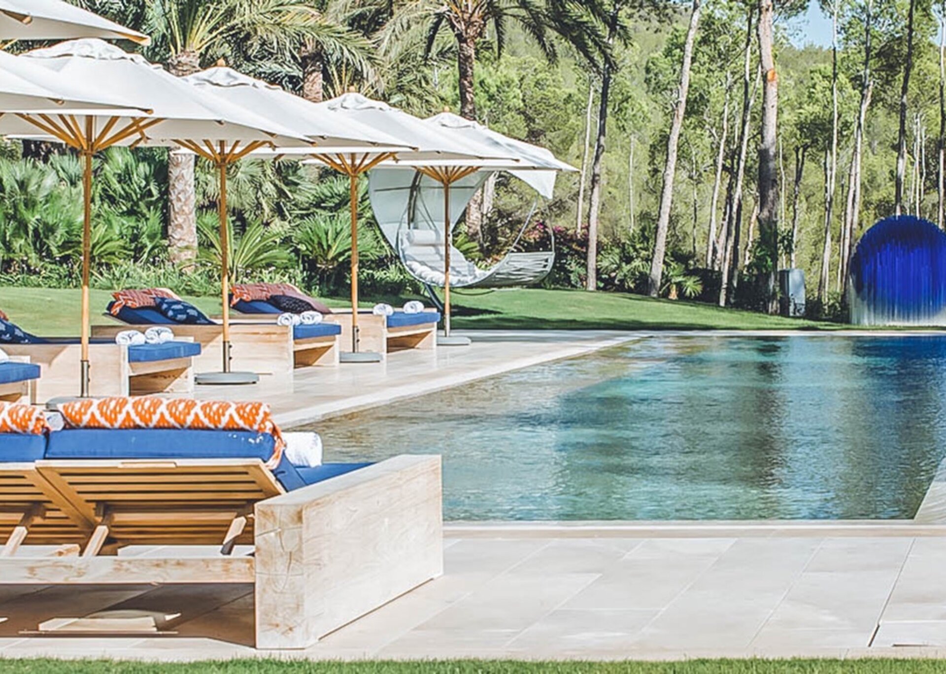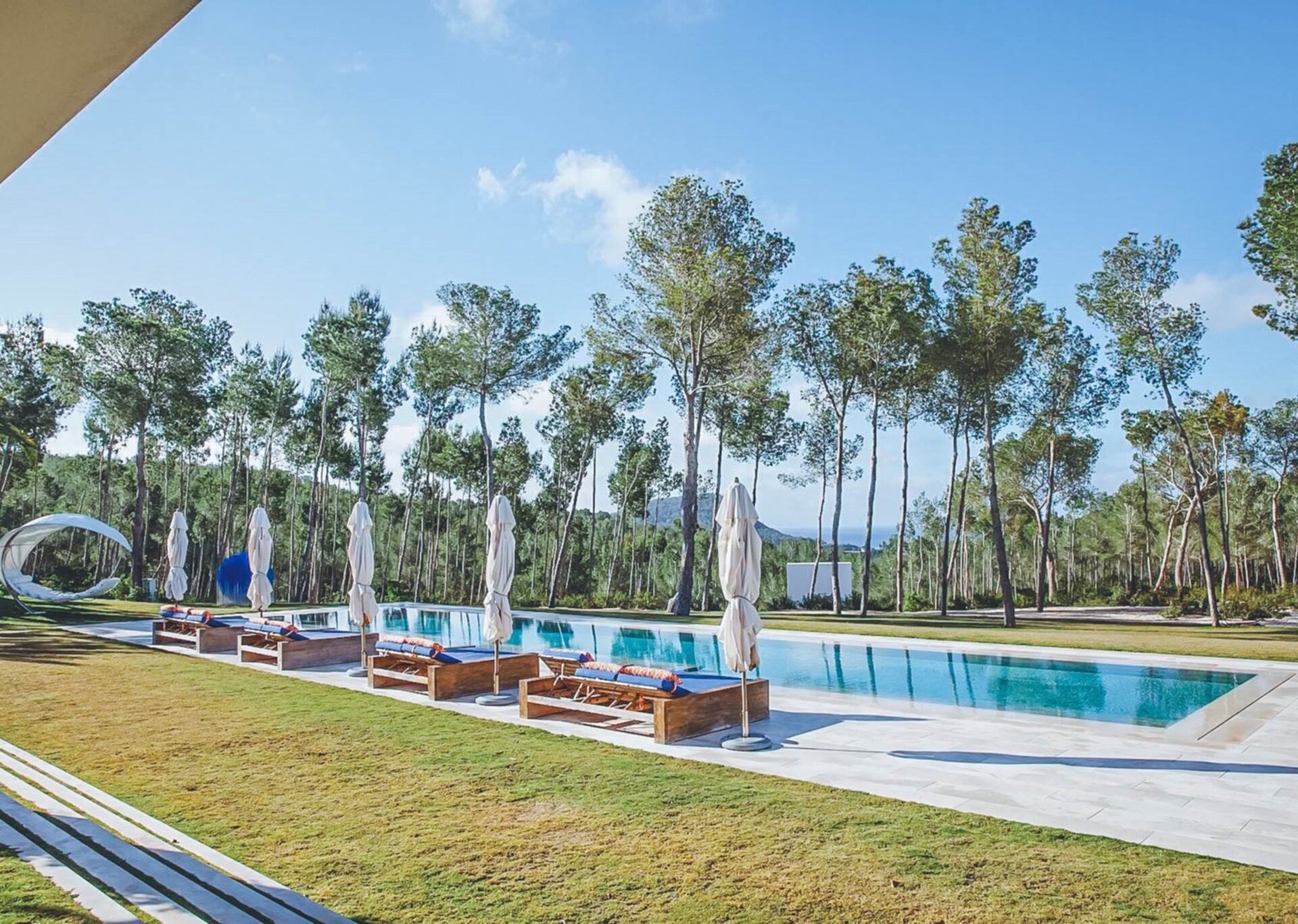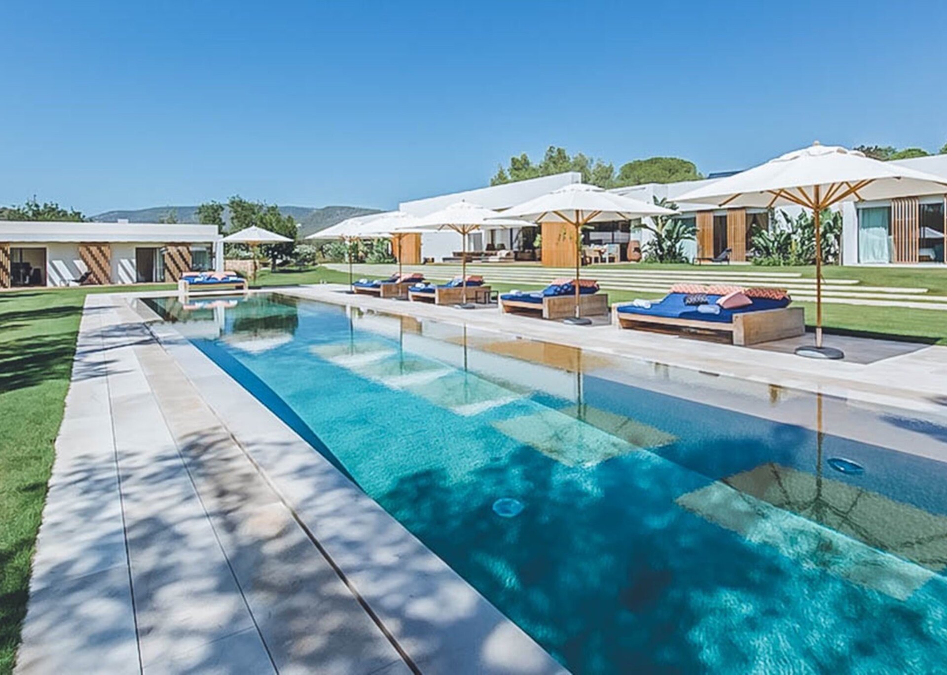 Beyond the pool, the manicured grounds display contemporary artworks, a large Jacuzzi, pétanque pitch and a bespoke outdoor cinema area. The spacious terrace offers a luxurious and wide corner sofa seated area, an extended dining table and a second under covered al-fresco space, across white sand. Under the tall pines you can appreciate the spectacular seaviews at the comfort of your own professional bar and seating for up to 30 people.