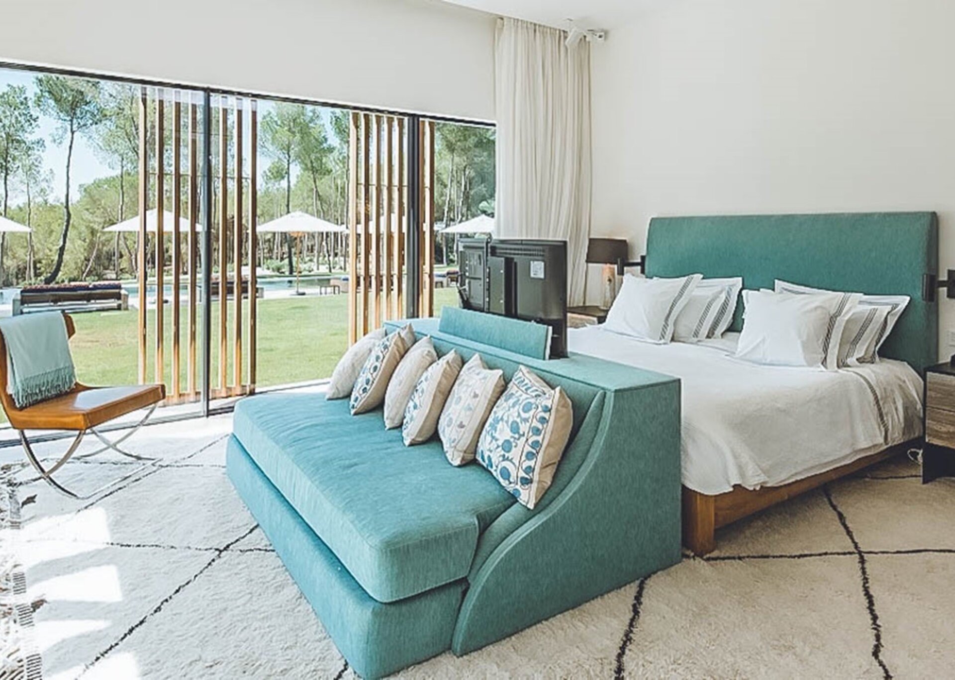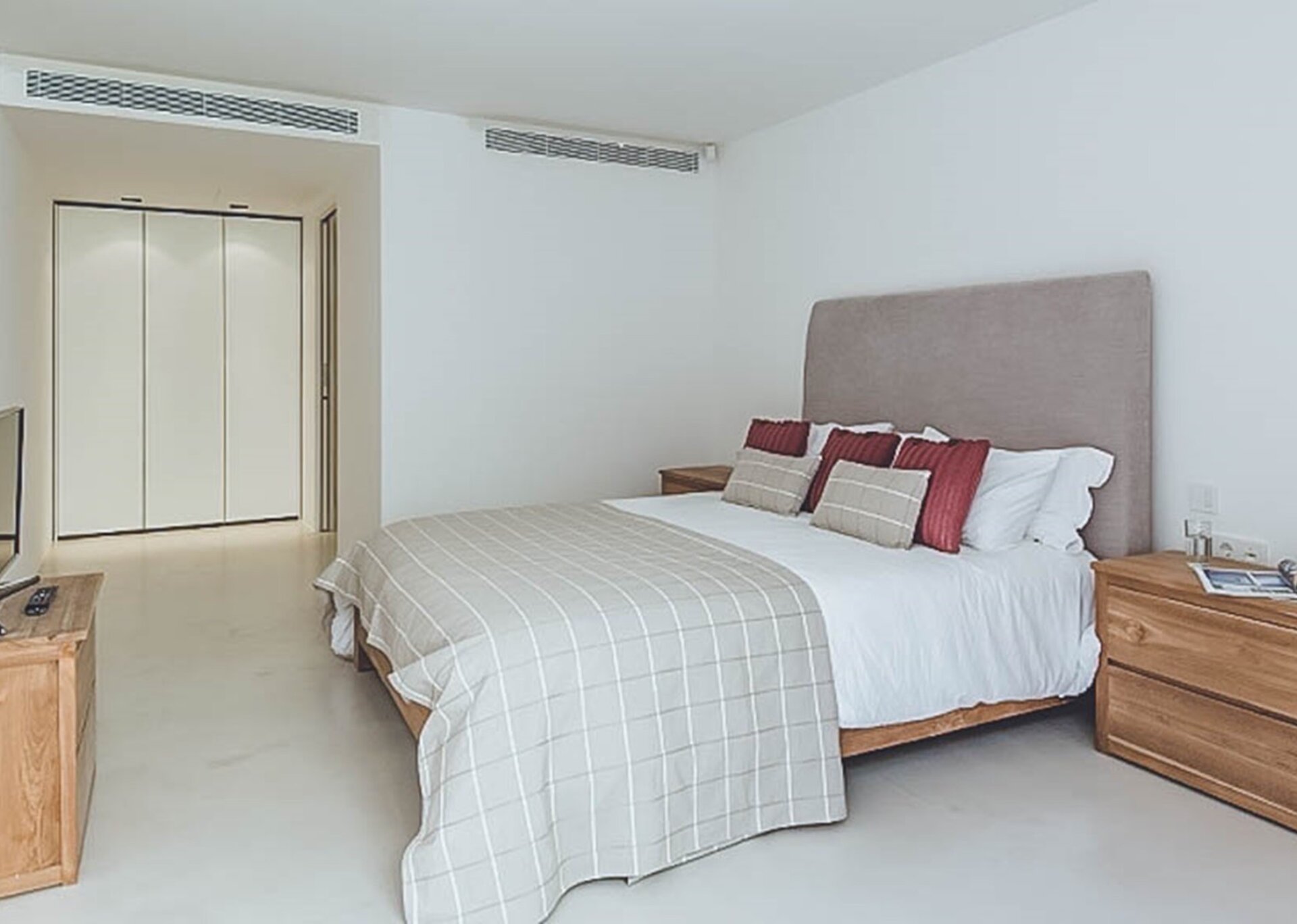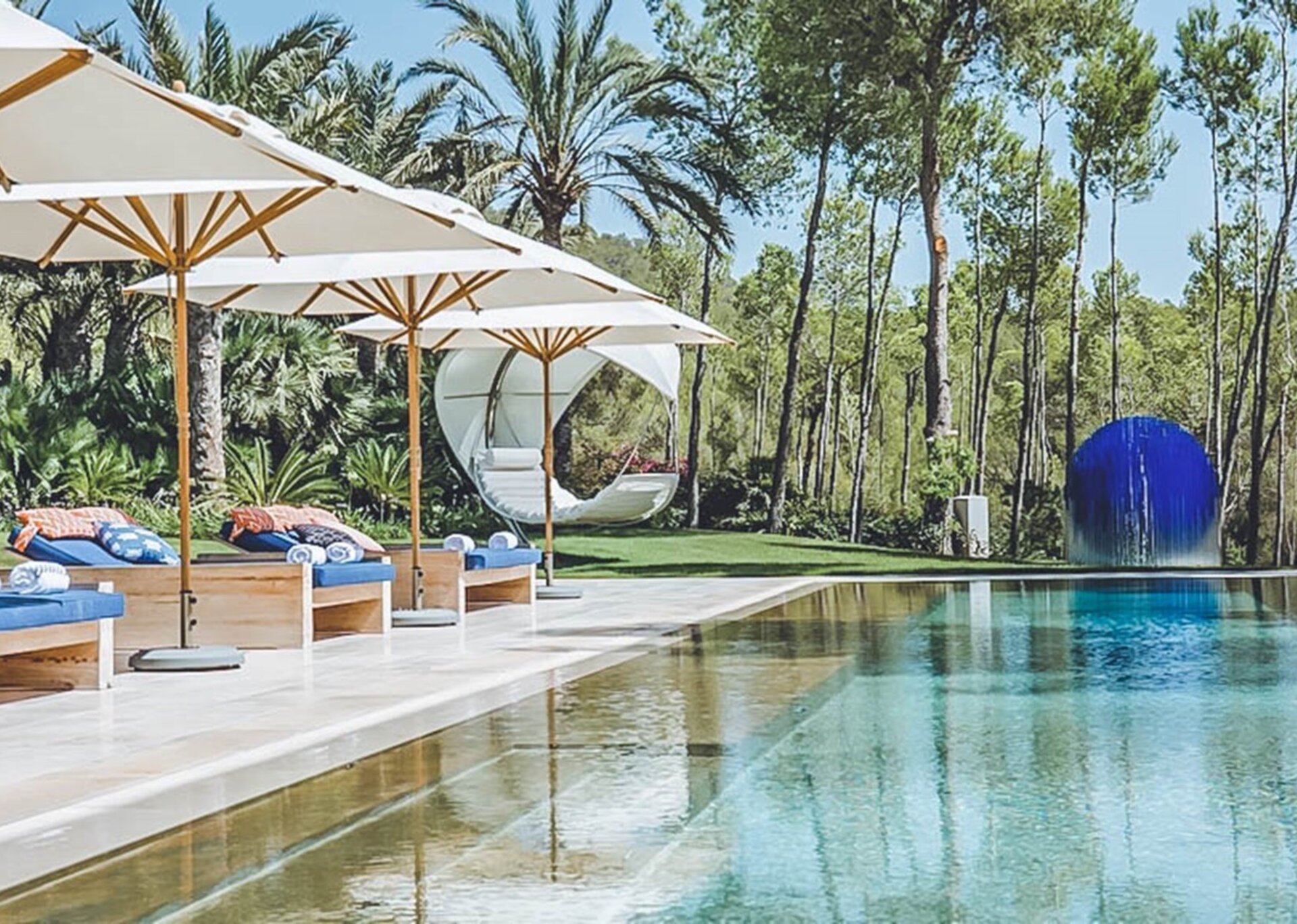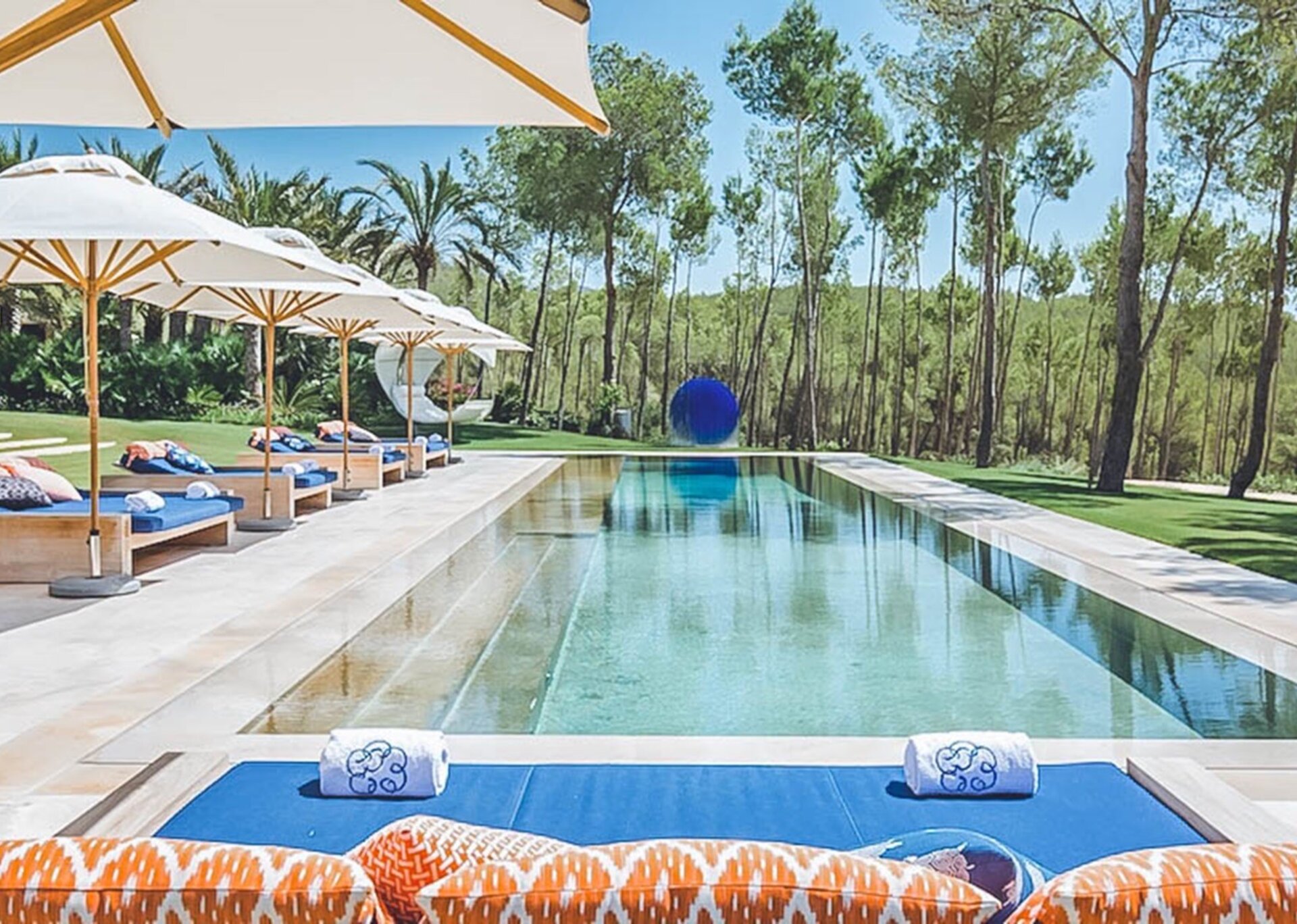 Beyond the pool, the manicured grounds display contemporary artworks, a large Jacuzzi, pétanque pitch and a bespoke outdoor cinema area. The spacious terrace offers a luxurious and wide corner sofa seated area, an extended dining table and a second under covered al-fresco space, across white sand. Under the tall pines you can appreciate the spectacular seaviews at the comfort of your own professional bar and seating for up to 30 people.