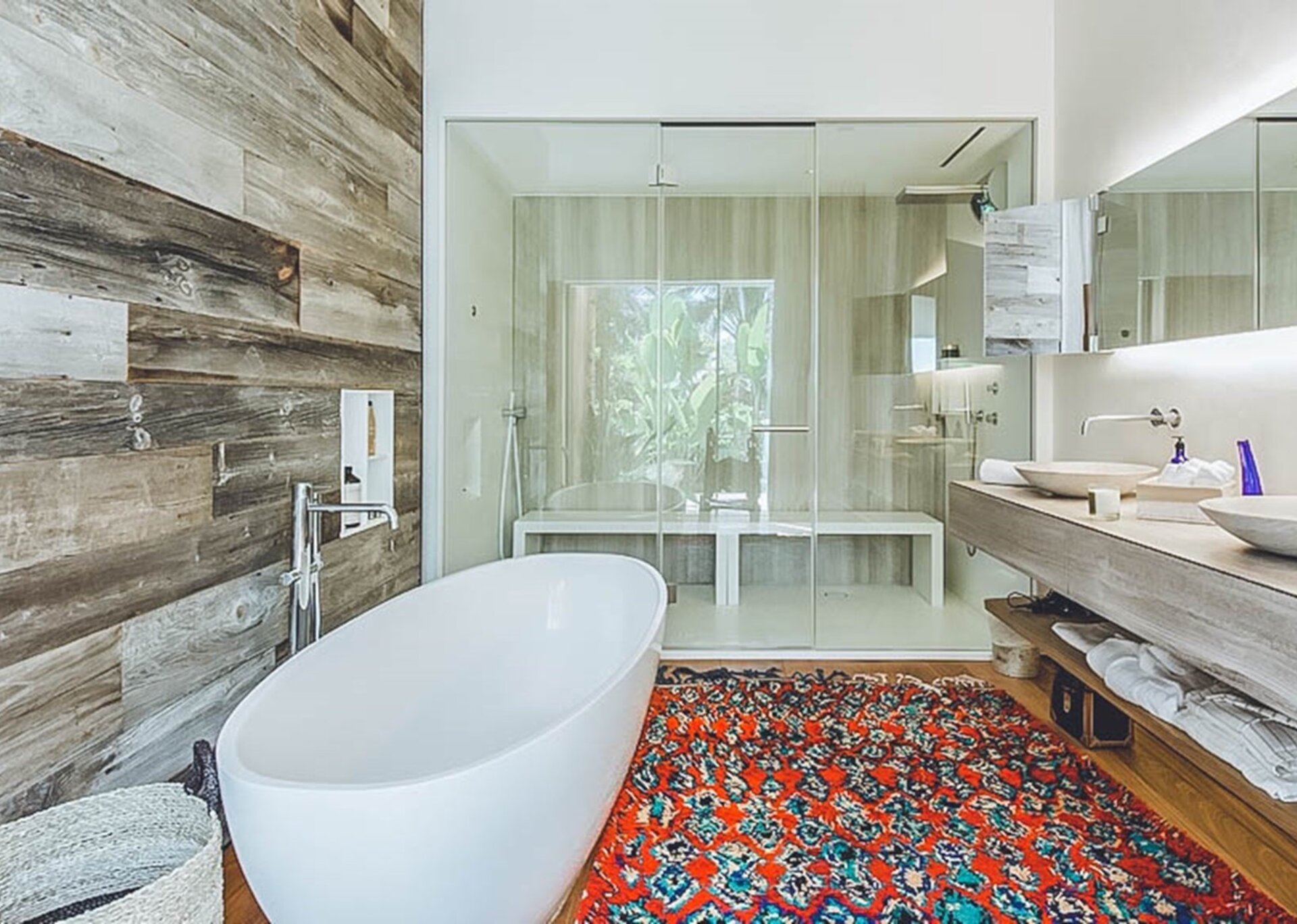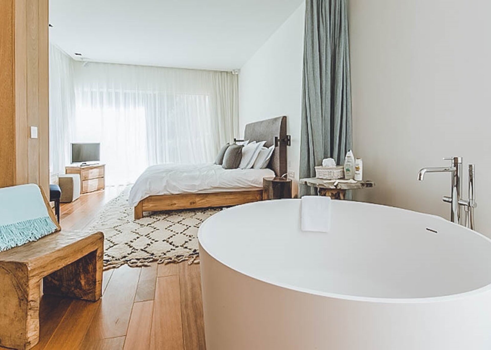 Inside this villa, cool and contemporary styling and polished natural wood floors create a welcoming ambience and warmth amongst the bright modern interiors. The living areas are flooded with natural light and furnished to the very highest of standards. Each bedroom has its own en-suite with a beautiful blend of natural materials and high-end design. The master en-suite includes a shower, bath, hammam and private access to the jacuzzi and a private chill-out area.