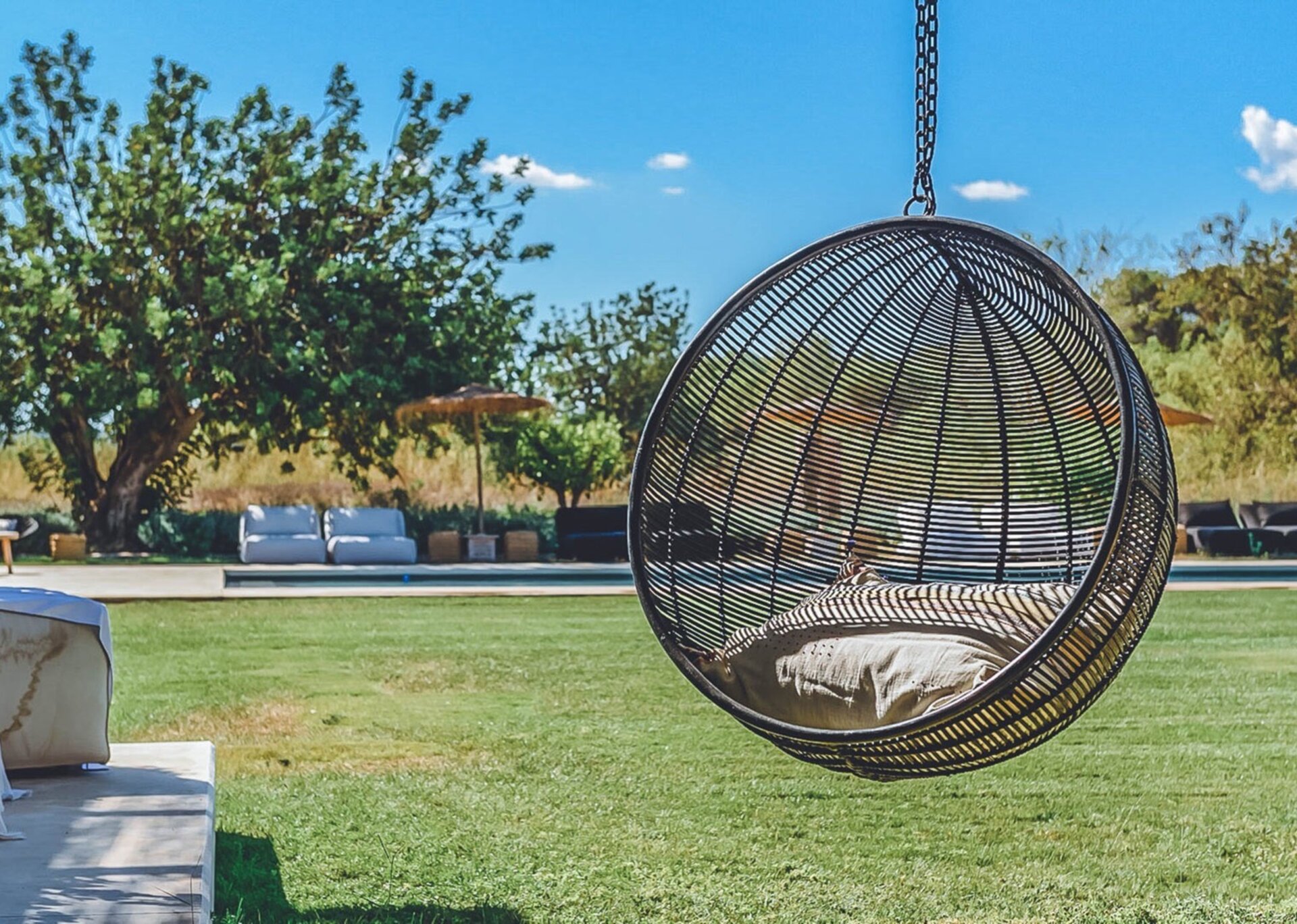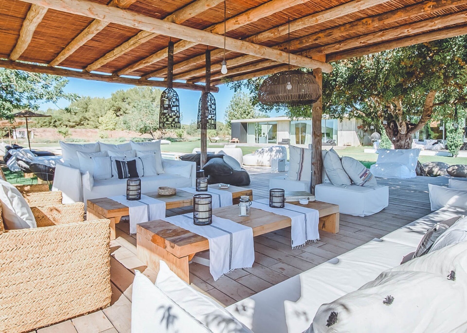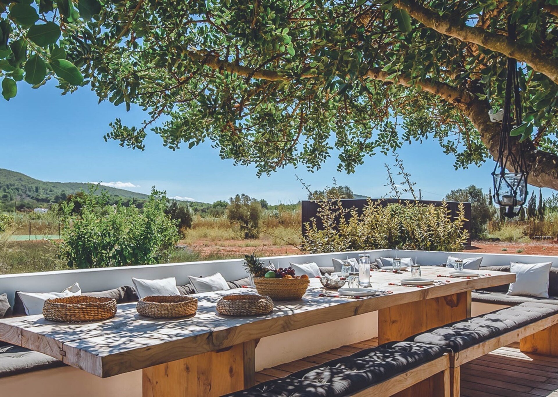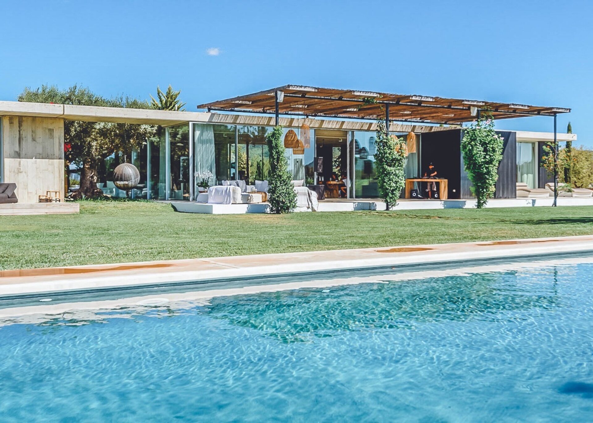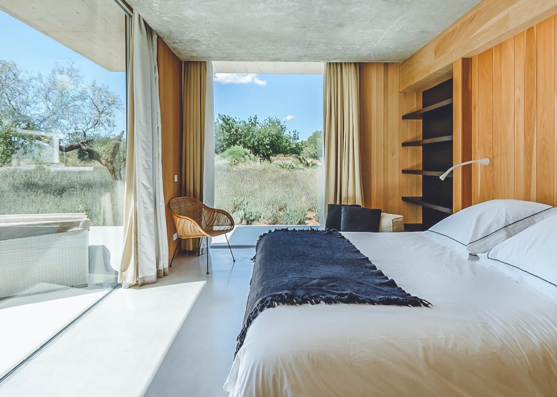 With glass windows throughout, nature becomes an integral part of the setting, perfectly complemented by lush green lawns as the backdrop. Both inside and outside Villa Ronda, you'll find ample low-level seating, allowing you to unwind and connect with your tribe. The French owner's bohemian chic style is beautifully reflected in the interiors, where concrete floors meet warm Scandi wood, and accents of smudgy black charcoal blend with natural linens, wicker, and rattan.But this serene oasis isn't just for relaxation. Keep the young ones entertained on the football pitch while the adults work up a sweat in the fully equipped gym. And when you're in need of a refreshing dip, the large pool awaits, its crystal-clear waters reminiscent of the ocean. As night falls, gather your tribe in the cinema room for a movie night.