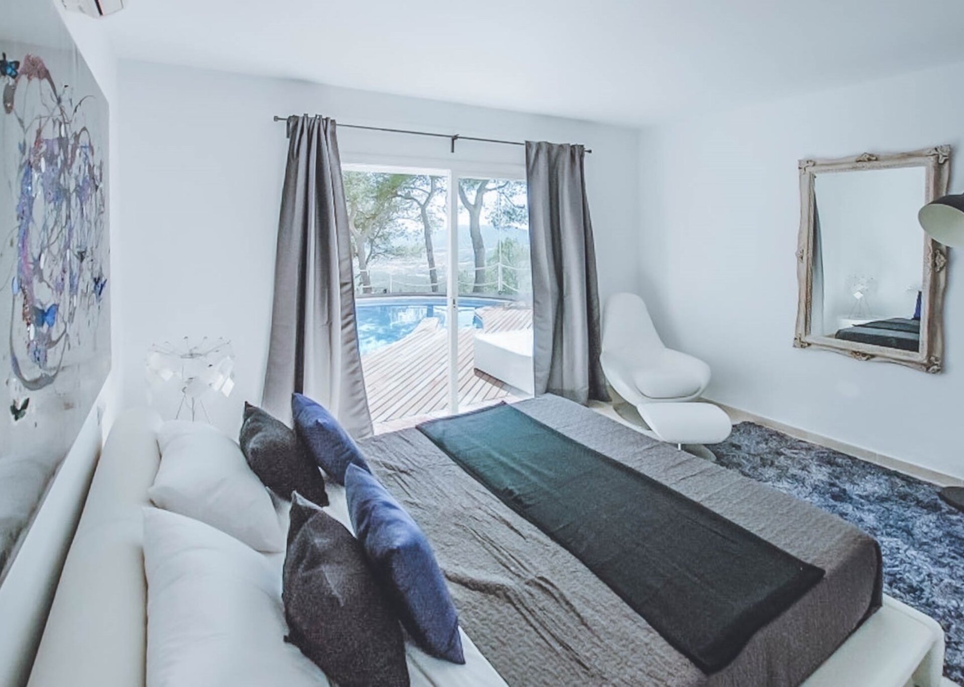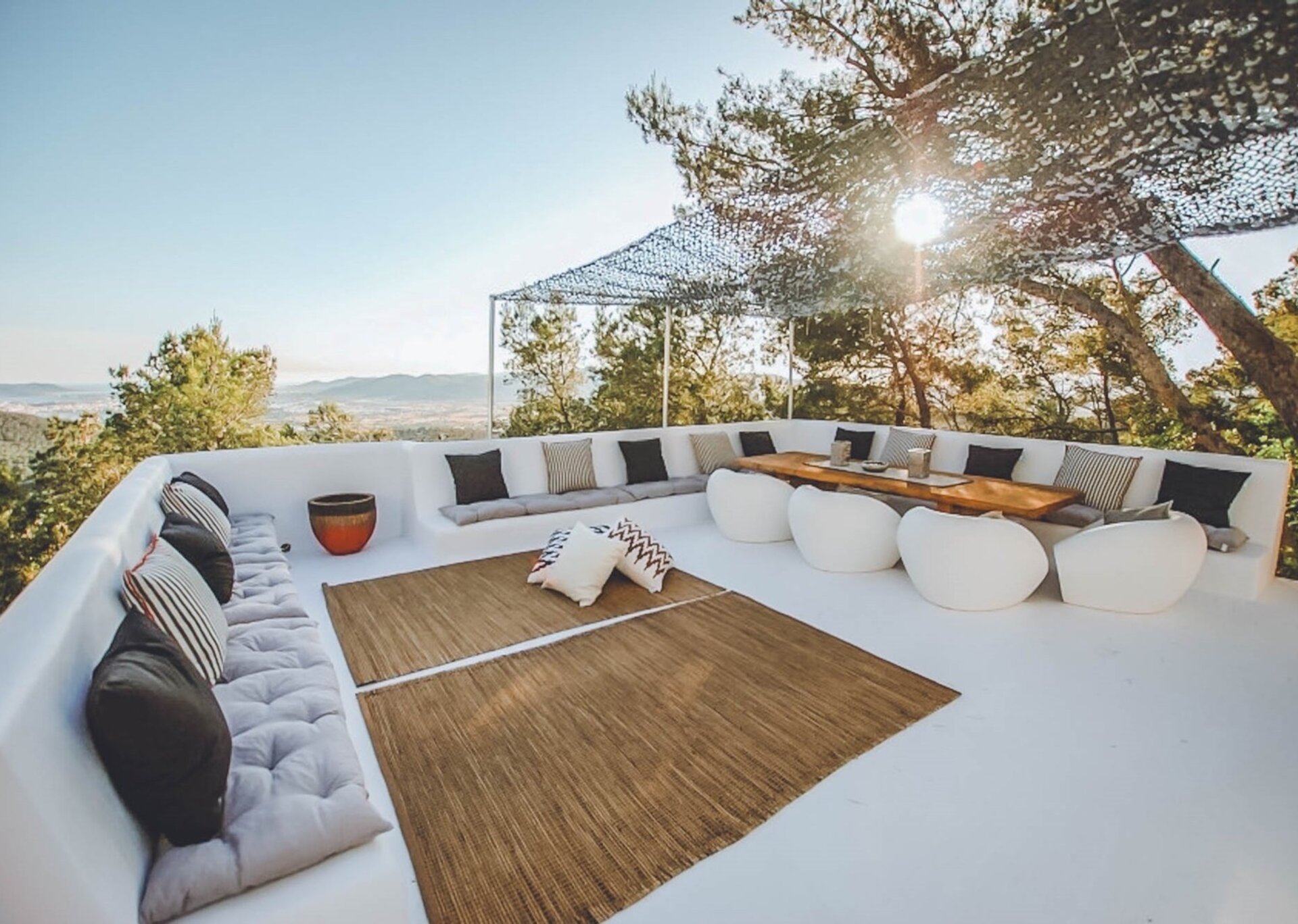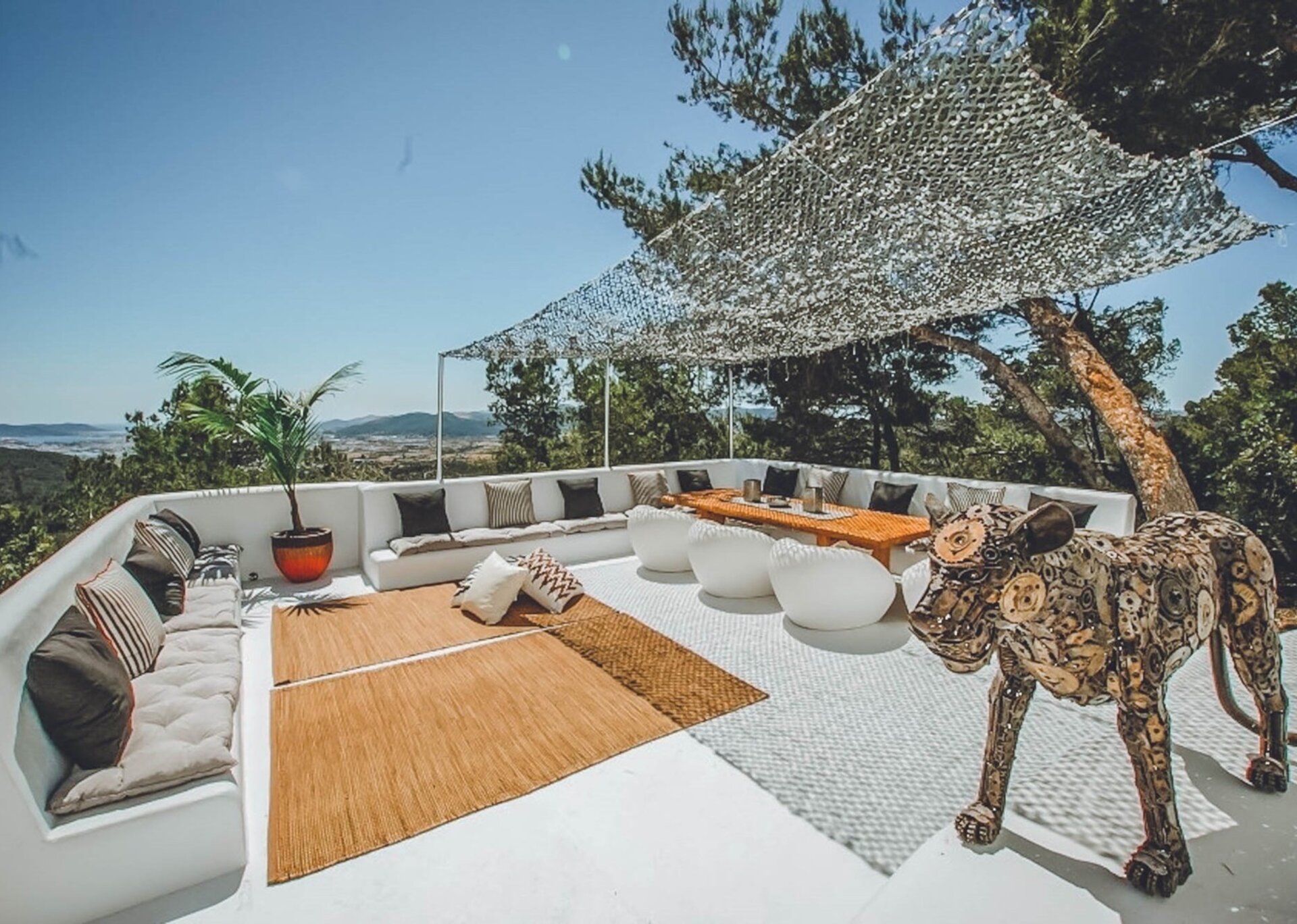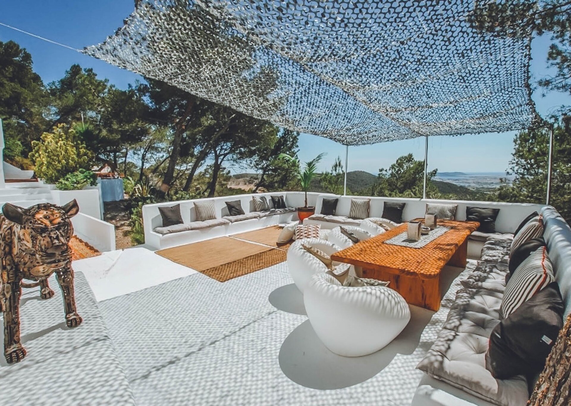 Nled atop one of the highest hills in Ibiza, Villa Rosa is a breathtaking 5-bedroom estate that offers majestic views. Surrounded by a serene pine tree forest, this hidden gem is conveniently located near the desirable Can Furnet Area. The charming village of Jesus and the bustling capital of Ibiza Town, renowned for its vibrant nightlife and delectable dining options, are easily accessible.