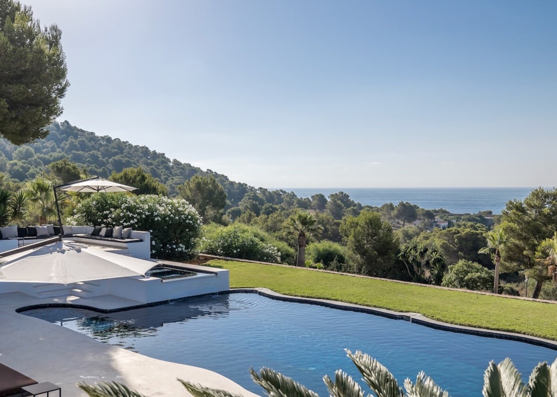 Situated in the exclusive area of Rosalia, the villa offers majestic sweeping sea views that extend all the way to Formentera. Its idyllic location provides easy access to Ibiza Town and other desirable destinations, while being only 450m away from the sea.