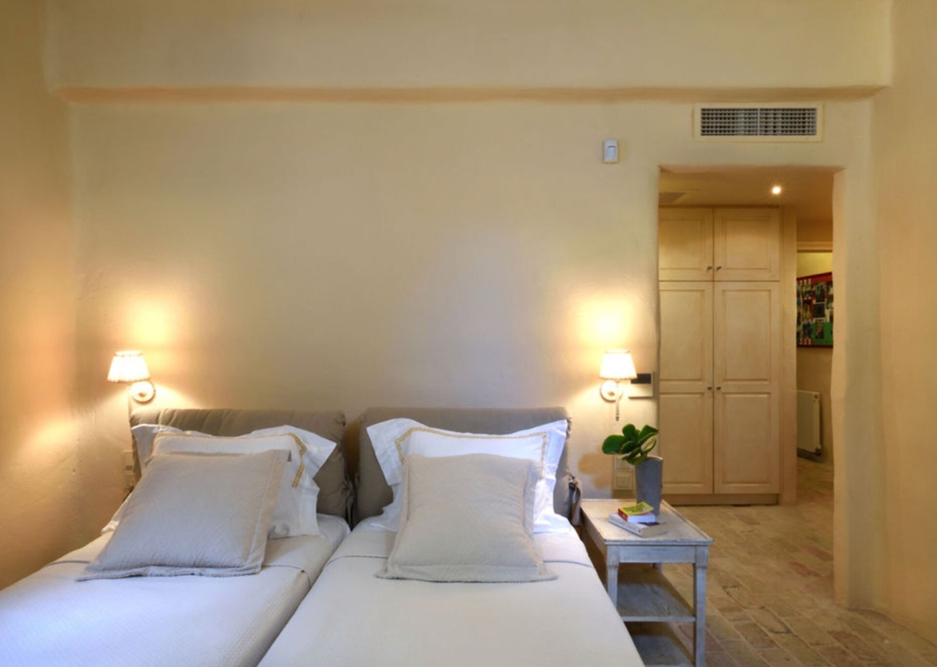 Bedroom 8: 2 Twin size beds, Ensuite bathroom with stand-alone shower, Air conditioning, View of Mediterranean Sea.