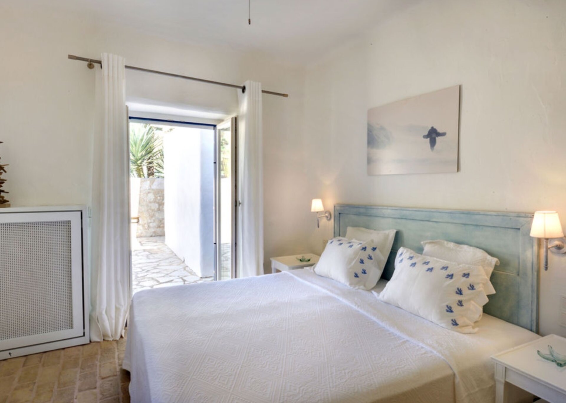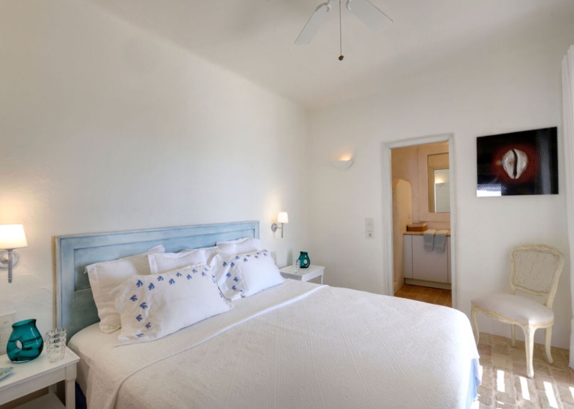 Bedroom 1 – Master: Queen size bed, Ensuite bathroom with stand-alone shower, Air conditioning, Private terrace, View of Mediterranean Sea.