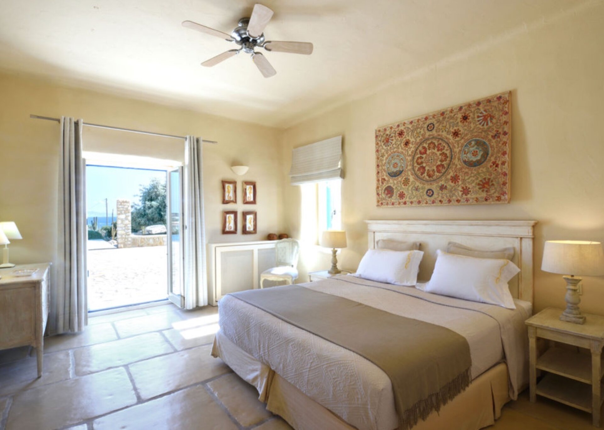 Bedroom 6- Master: Double size bed, Ensuite bathroom with stand-alone shower, Air conditioning, View of Mediterranean Sea.