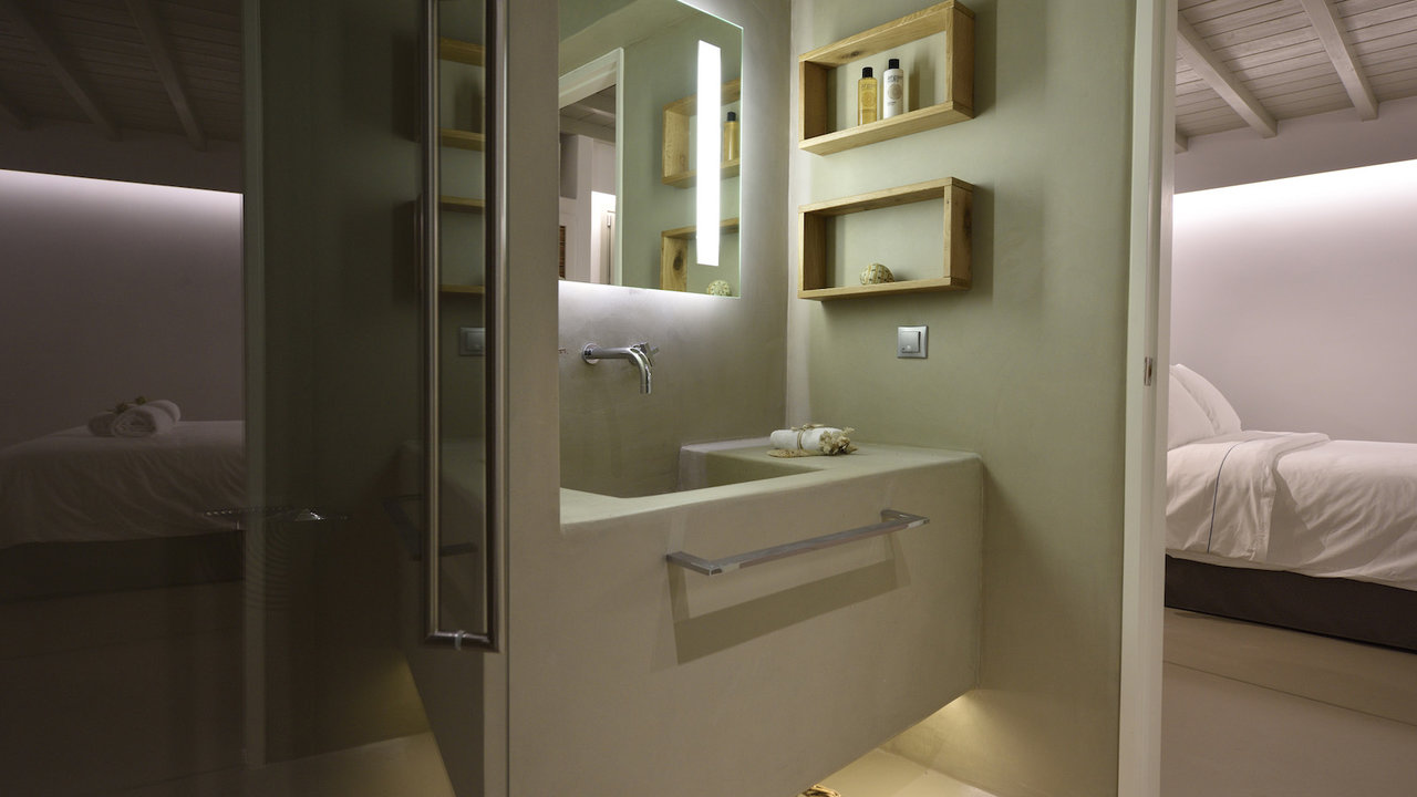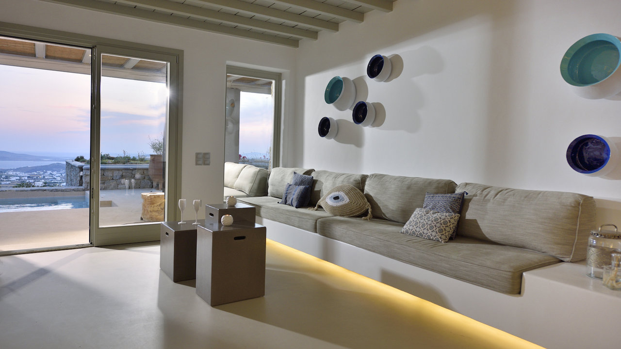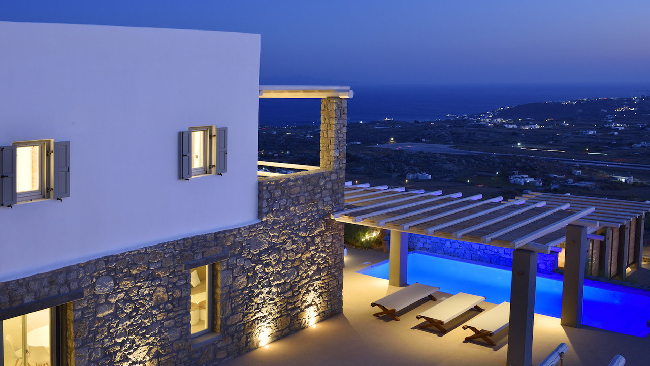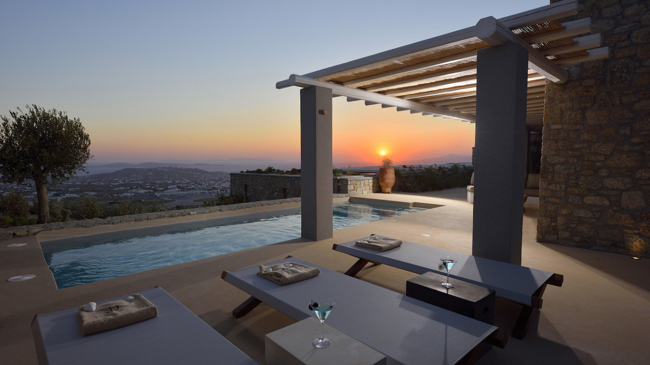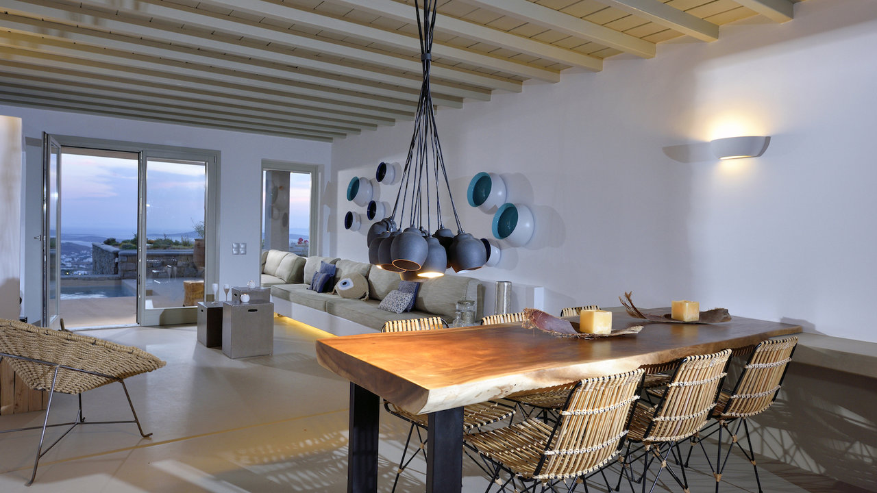 The villa has its own private pool with Jacuzzi (30sqm), magnificent outdoor dining and sitting areas that spread over the 220sqm. The marvelous plantations match perfectly the scenery of Kounoupas hill and provide the isolation needed from other guests in the complex.