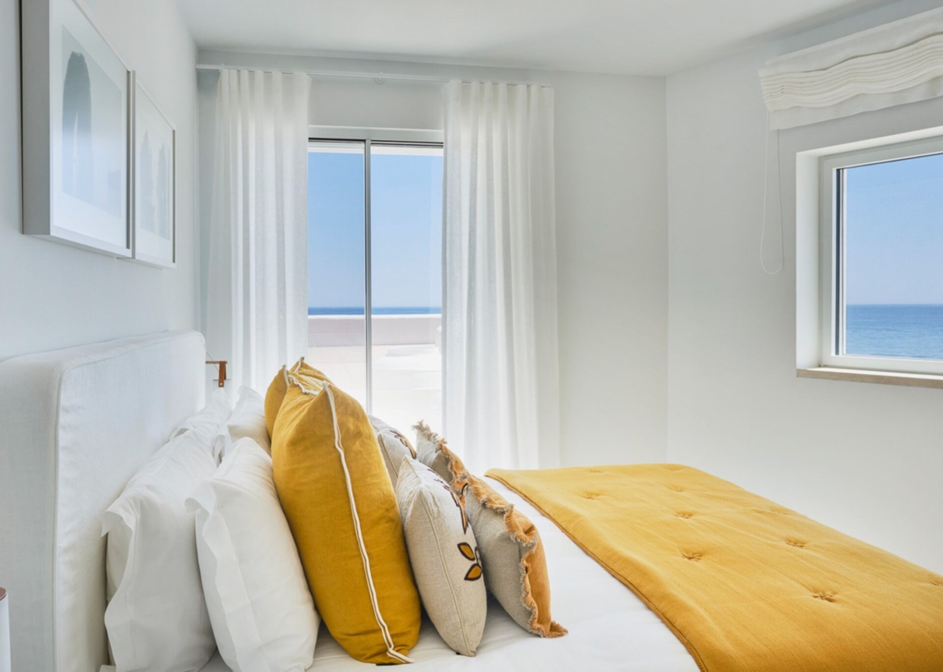 Sleeps 2 – King-size bed. Duplex with living room. En-suite bathroom with double vanities, walk-in rain shower and freestanding bathtub. Private sea-view terrace.