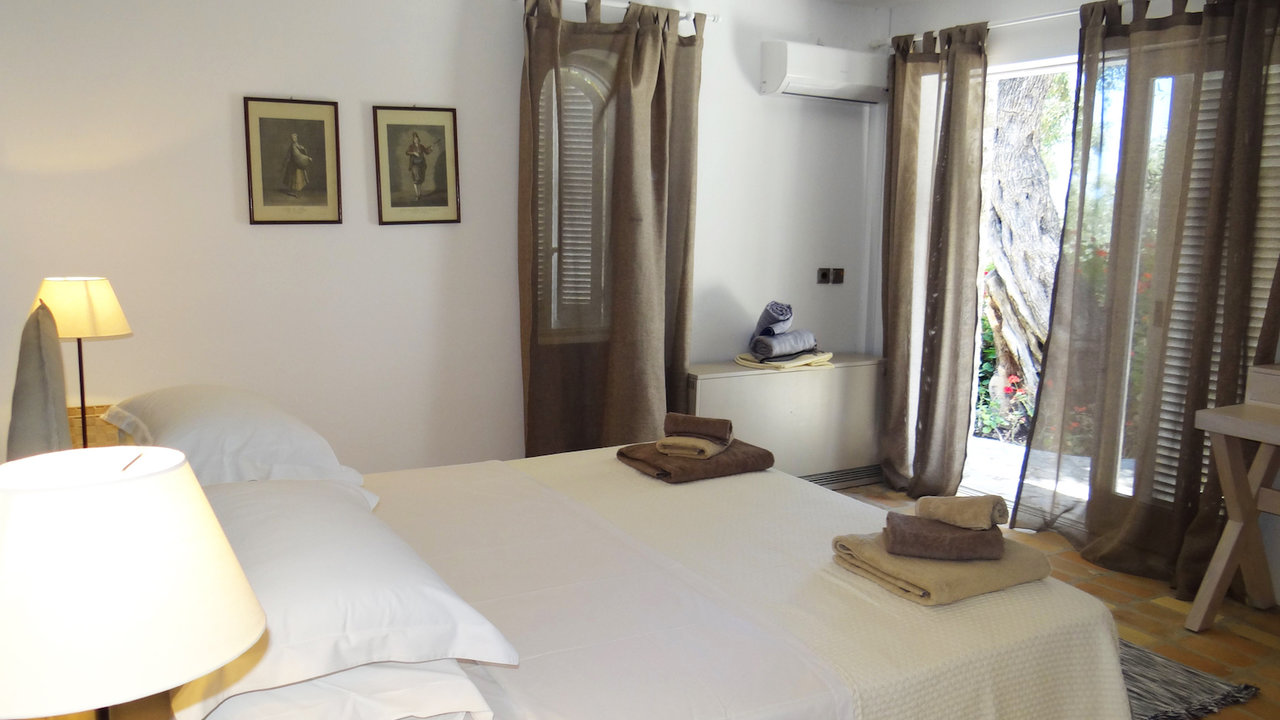 Ideally nestled in the middle of Corfu at the Ionian islands, the house undoubtedly captures the peaceful ambience you need for your vacation. The outer dining area is surrounded by a lush garden, just like the whole retreat is admist a verdant landscape with astonishing cyan vistas of the Ionian waters. The outer terraces are spacious and provide a private swimming pool with sunbeds, shaded by wonderful trees to relax and make you feel the quiet mood of the area.