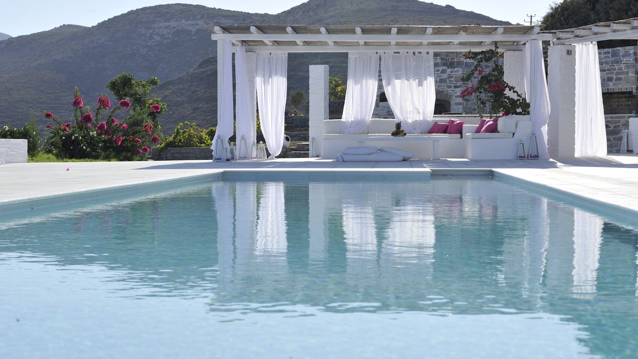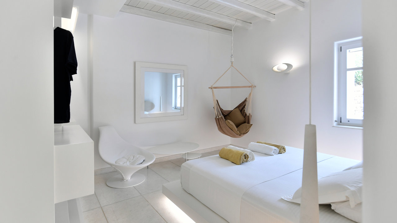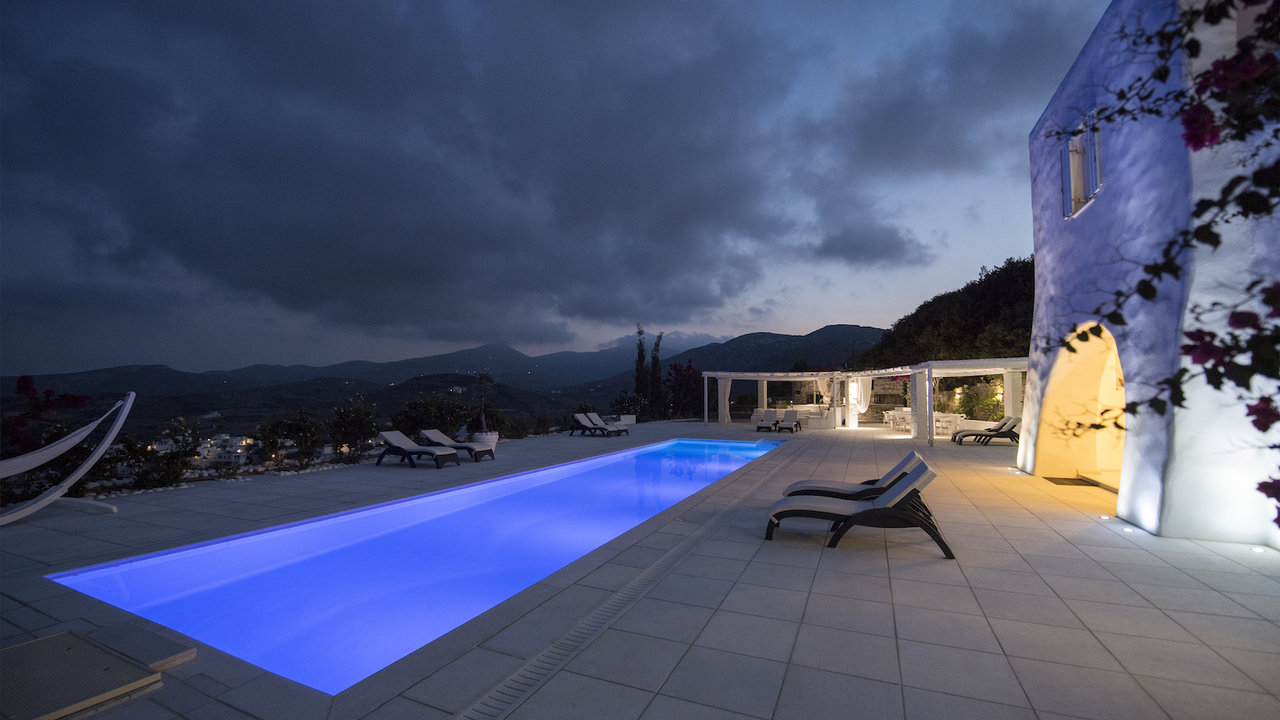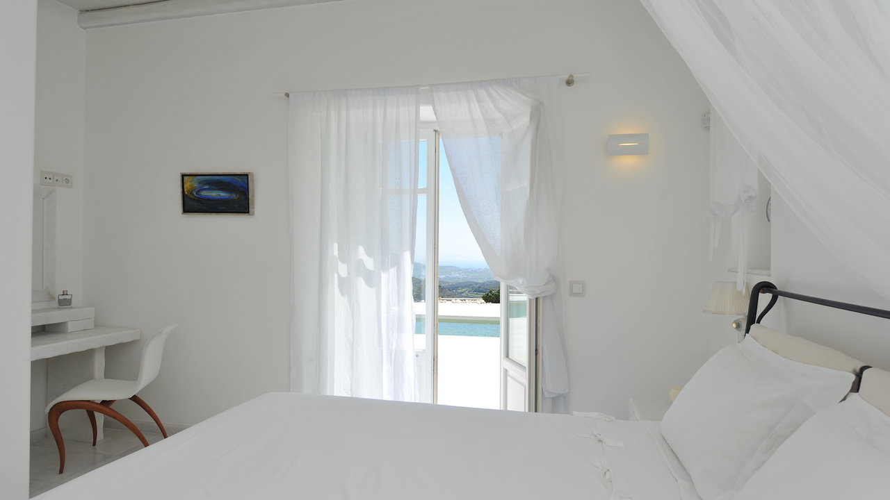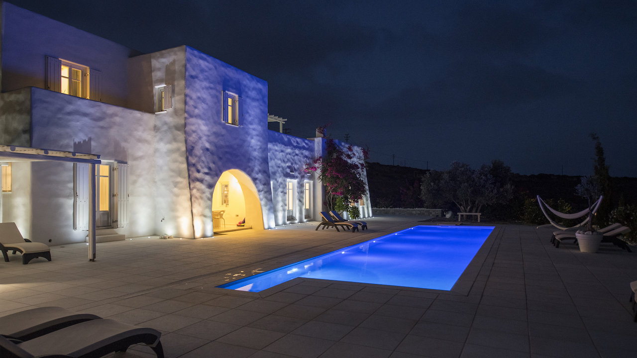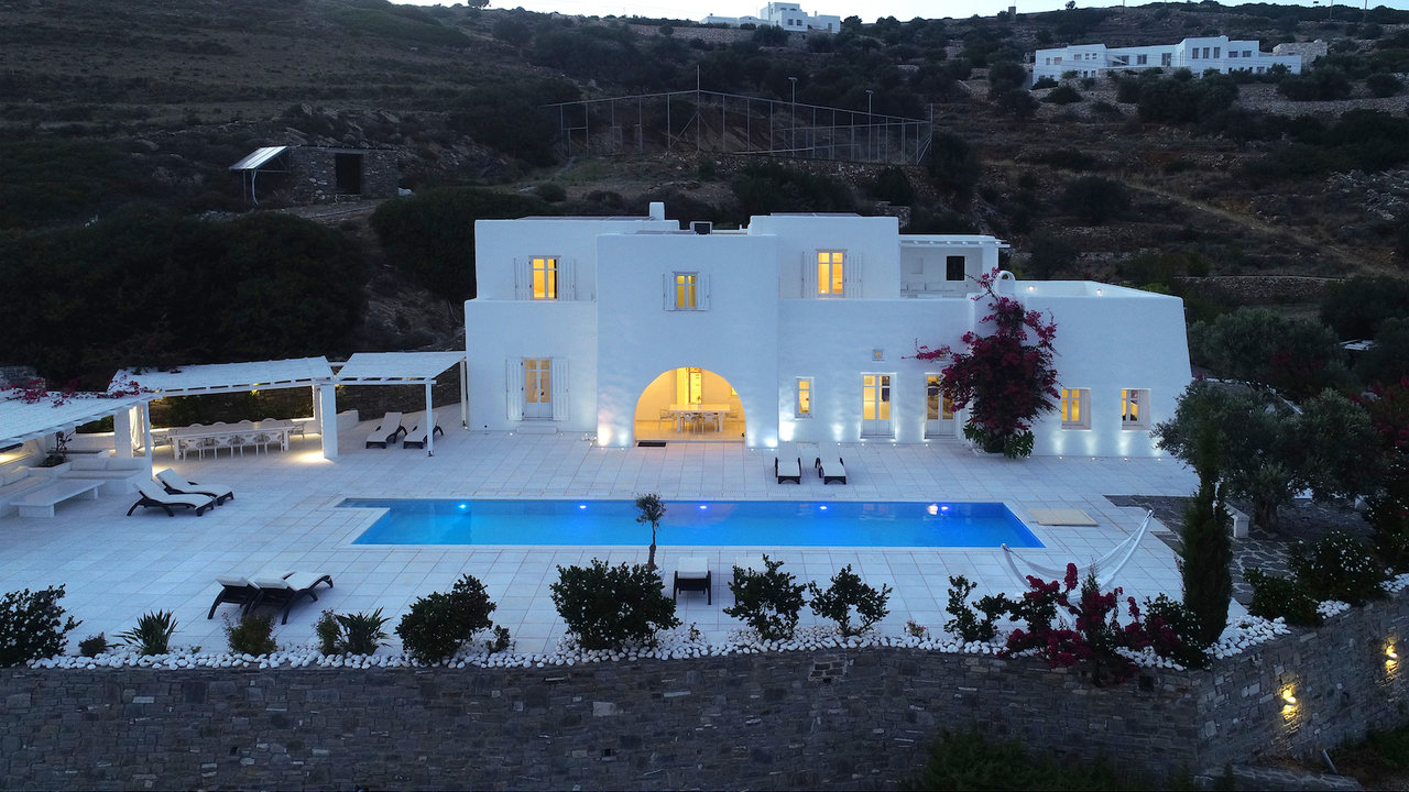 Villa Selene, situated in Kostos of Paros island, Greece, is the epitome of unique architecture with a traditional touch. The tranquility of this white Cycladic house is the perfect haven for a serene vacation, with breathtaking, dazzling vistas of the Agean sea. The outer terraces of Selene boast an ambience of nature, providing guests with an ideal escape from the hustle and bustle of everyday life. The wide-open spaces surrounding the tennis court, mini soccer, and large private swimming pool are available to guests who are interested in keeping fit while on holiday. With an outer dining area that boasts an immaculate sea view, comfortable hammocks, and luxurious decorations, Selene is the perfect combination of elegance, style, taste, and quality.