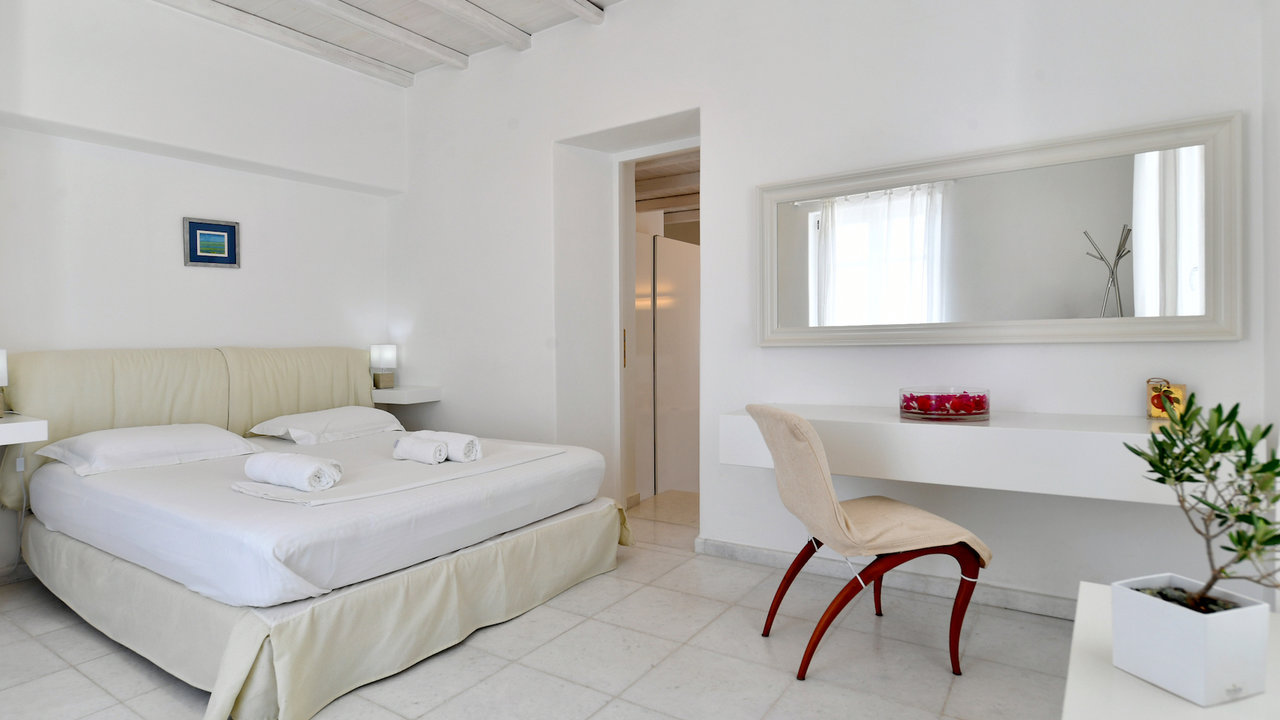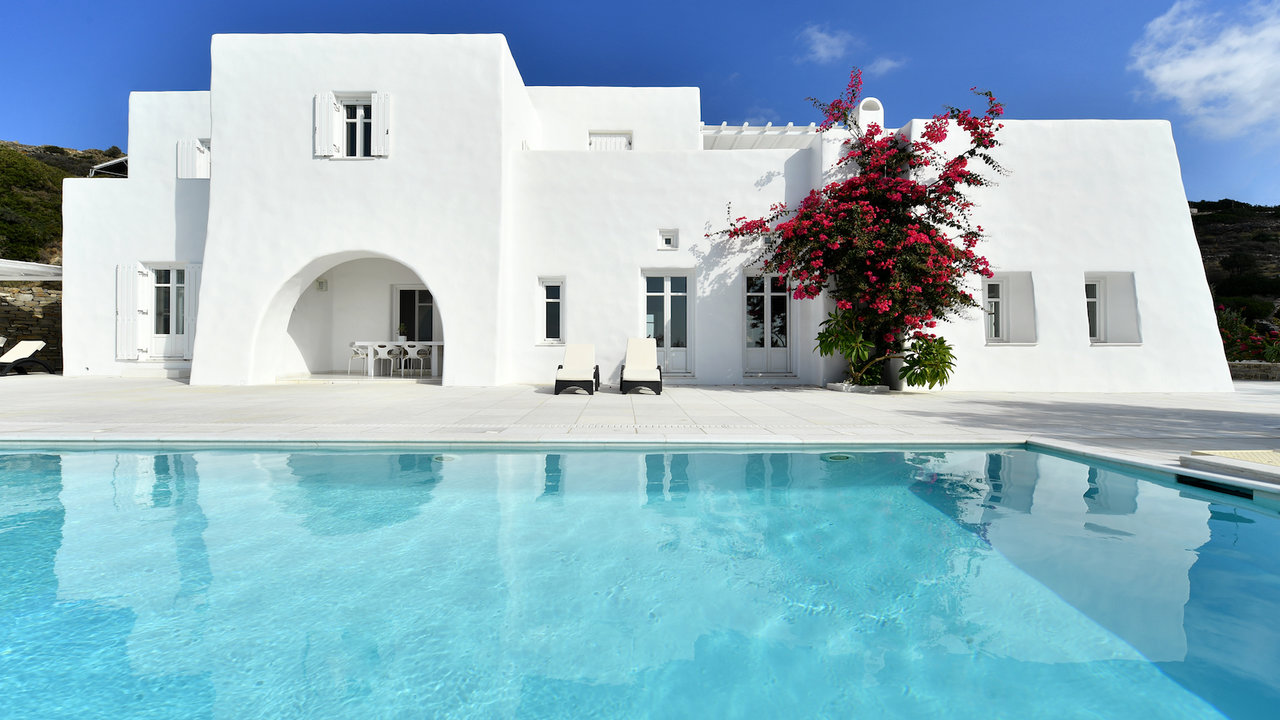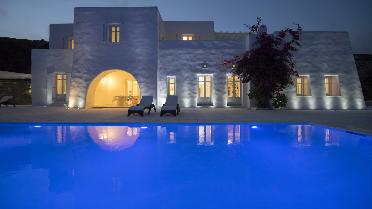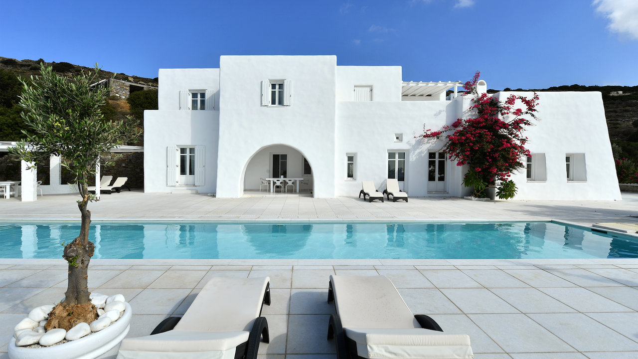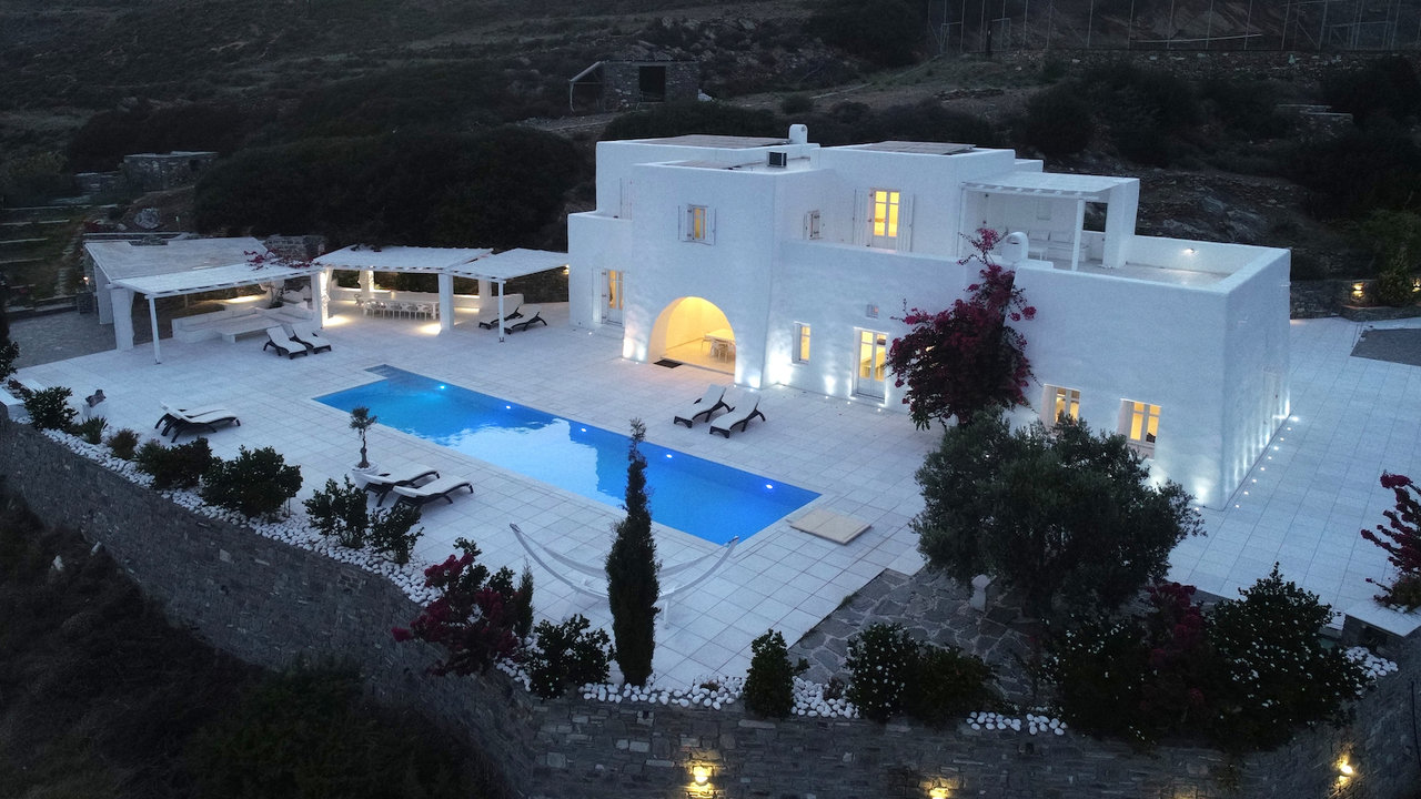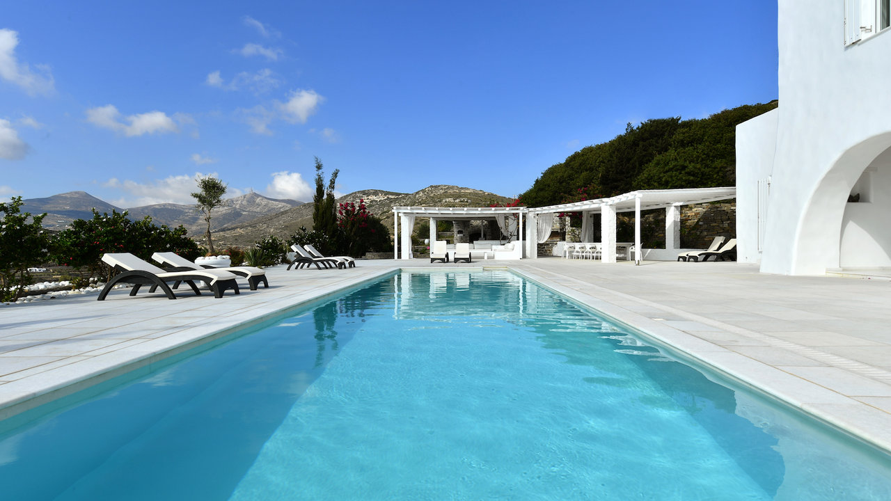 Villa Selene, situated in Kostos of Paros island, Greece, is the epitome of unique architecture with a traditional touch. The tranquility of this white Cycladic house is the perfect haven for a serene vacation, with breathtaking, dazzling vistas of the Agean sea. The outer terraces of Selene boast an ambience of nature, providing guests with an ideal escape from the hustle and bustle of everyday life. The wide-open spaces surrounding the tennis court, mini soccer, and large private swimming pool are available to guests who are interested in keeping fit while on holiday. With an outer dining area that boasts an immaculate sea view, comfortable hammocks, and luxurious decorations, Selene is the perfect combination of elegance, style, taste, and quality.
