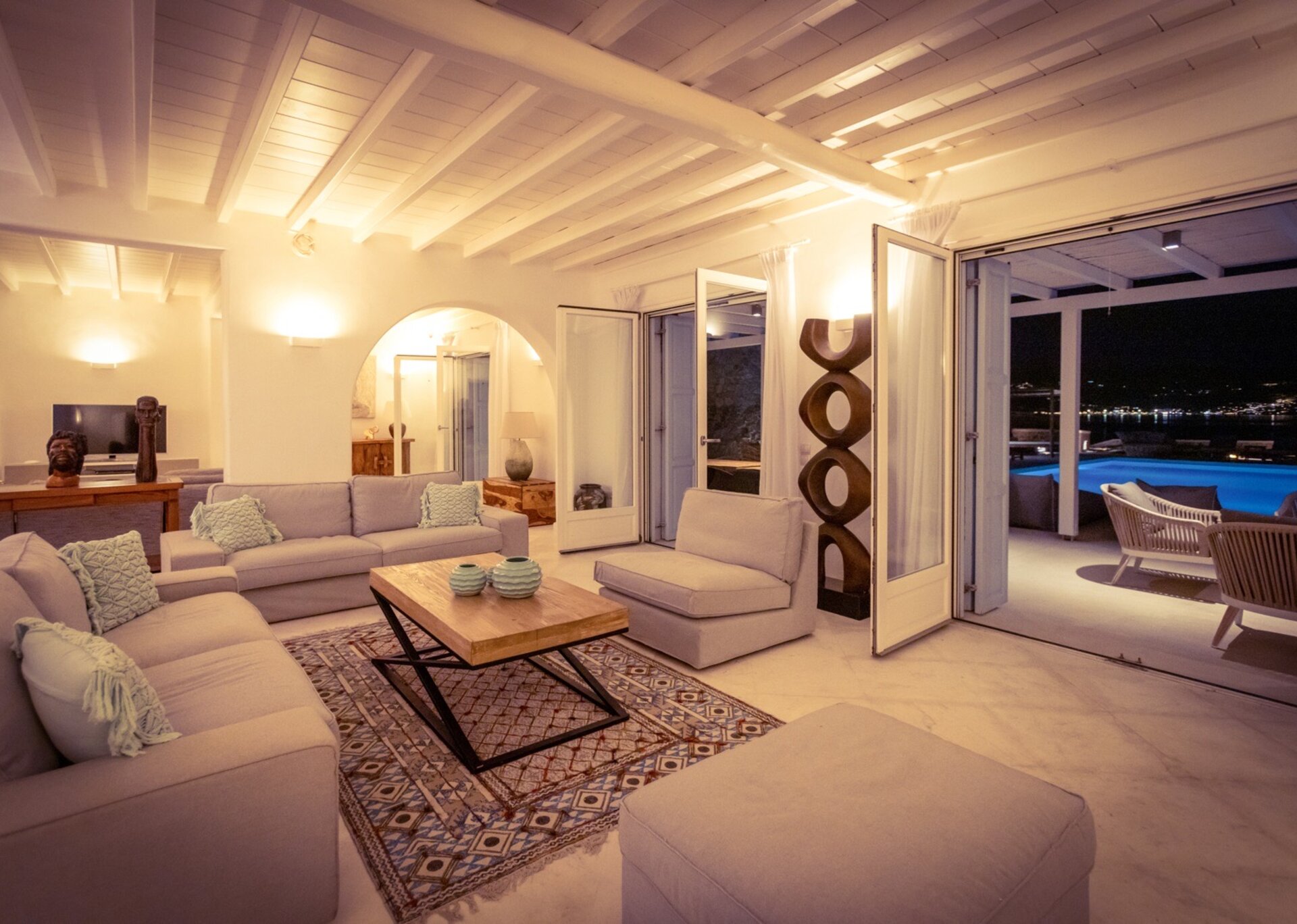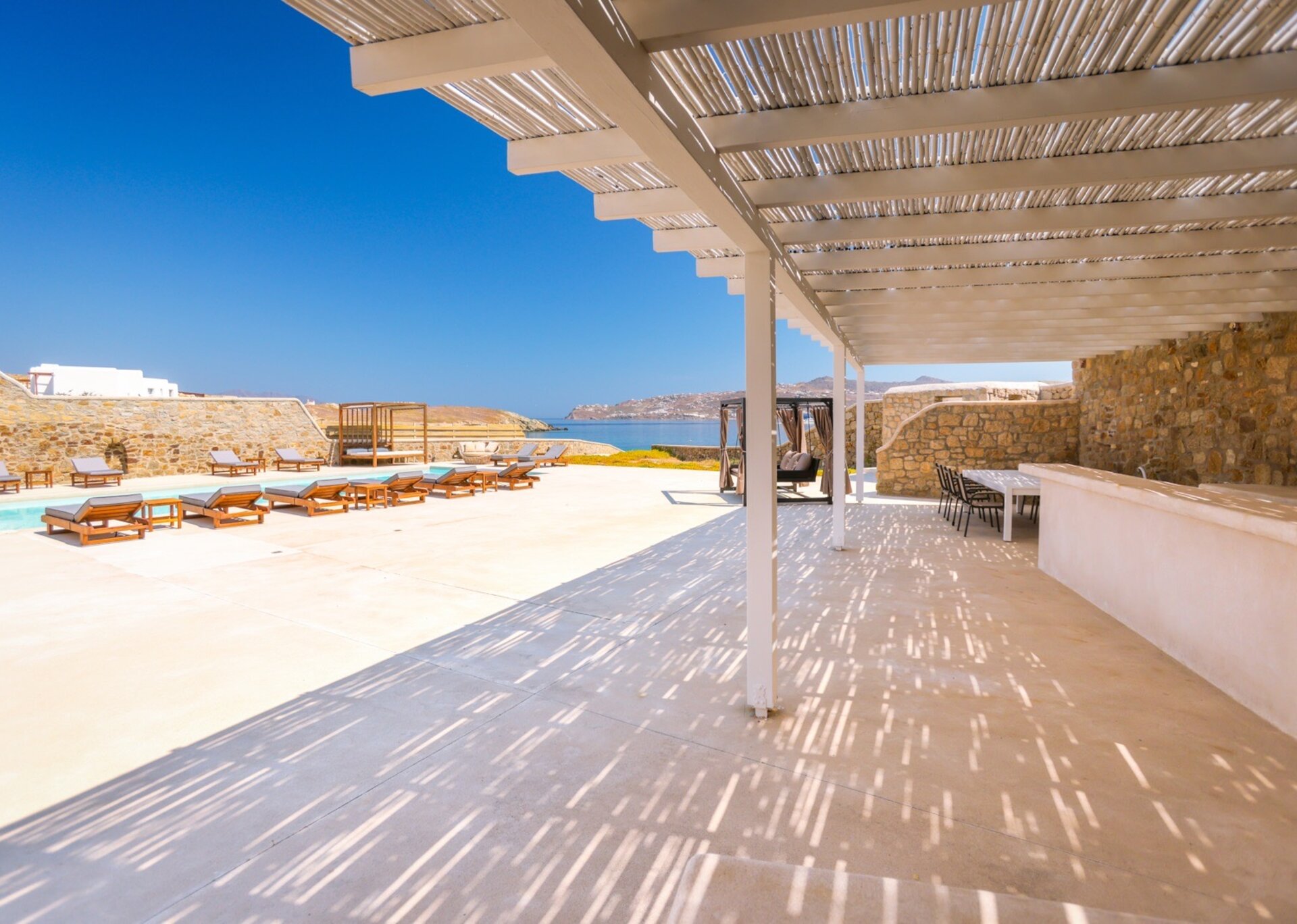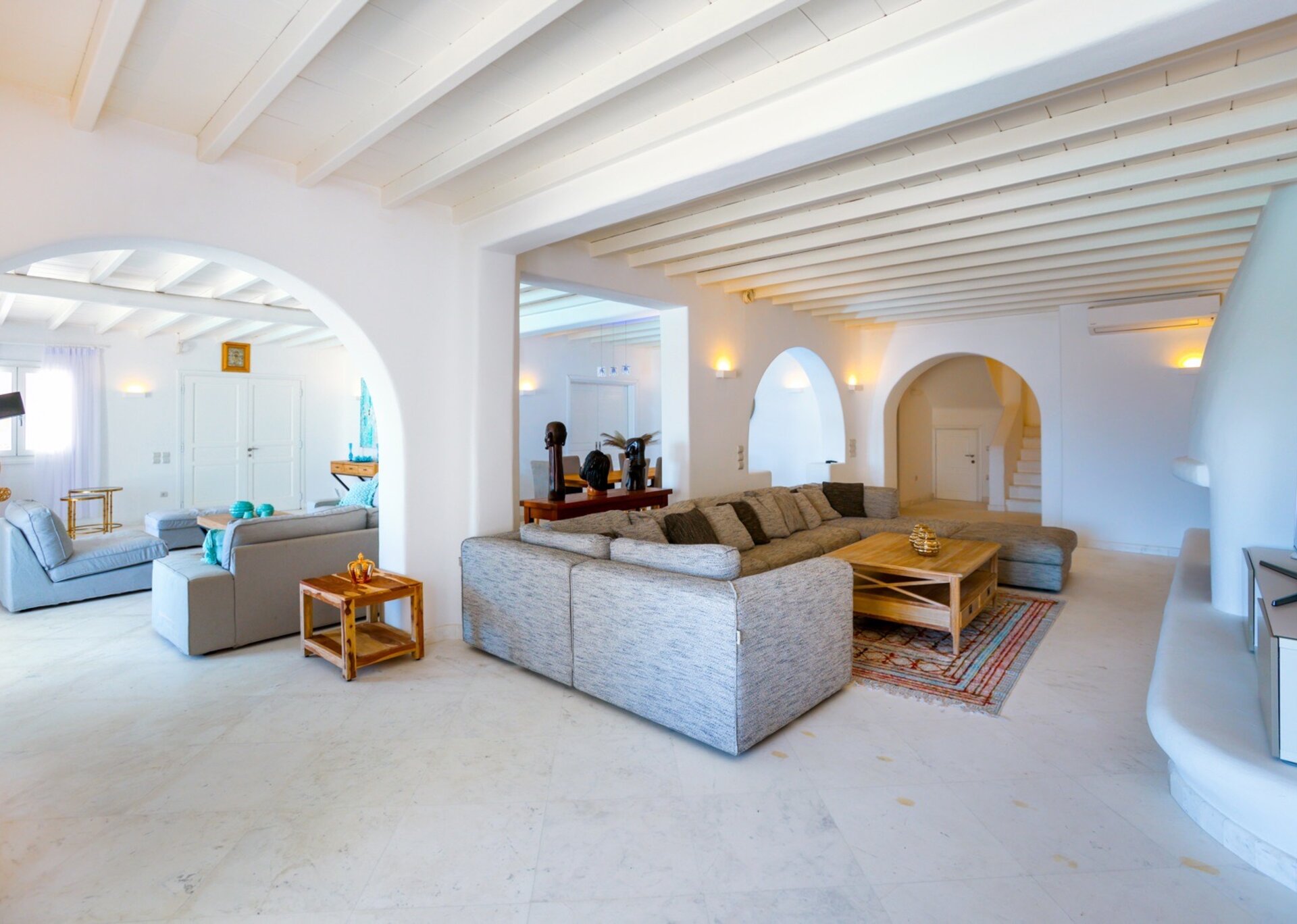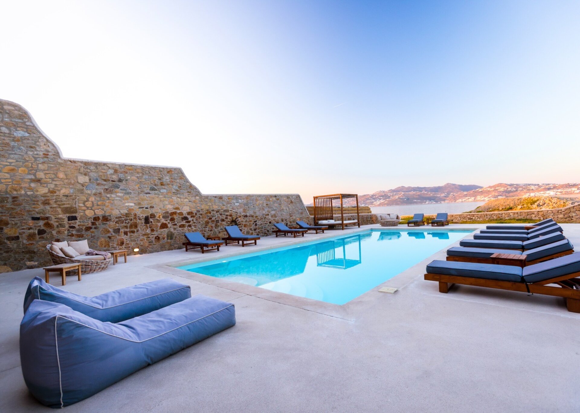 A stylish reflection of the cosmopolitan Mykonos lifestyle but with a traditional touch, Villa Serenity, sits gracefully on the imposing spot of Kanalia, affording a divine view of the breathtaking Aegean Sea all the way to the islands of Syros and Tinos. Tranquility, serenity, space and calm are waiting to welcome you at an impeccable villa and yet you are only 15 minutes away from the famous Mykonos Town as well as 15minute drive from Nammos, one of the four biggest clubs all over the world. Everything you have ever dreamed of for perfect vacations is just here to be found.