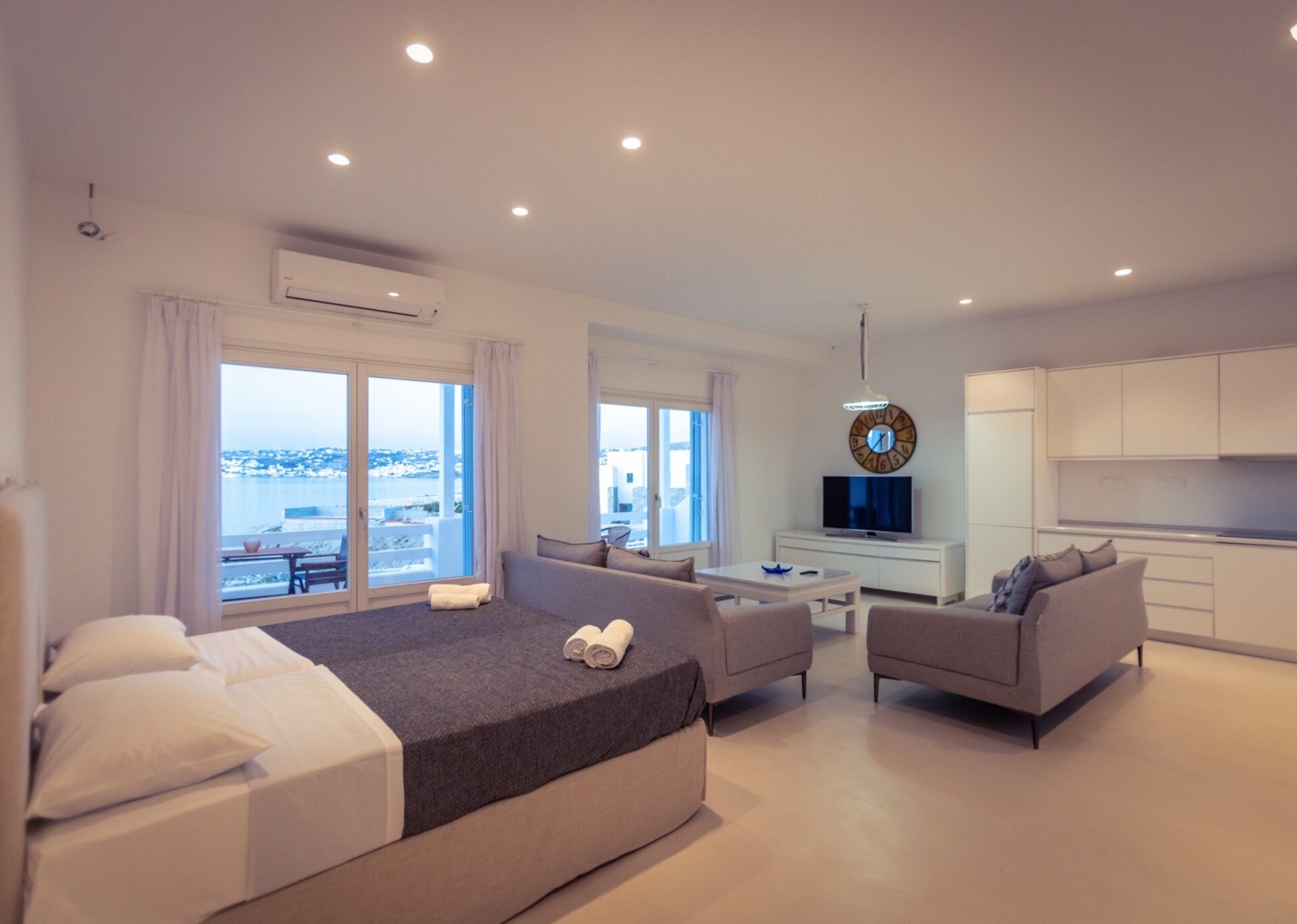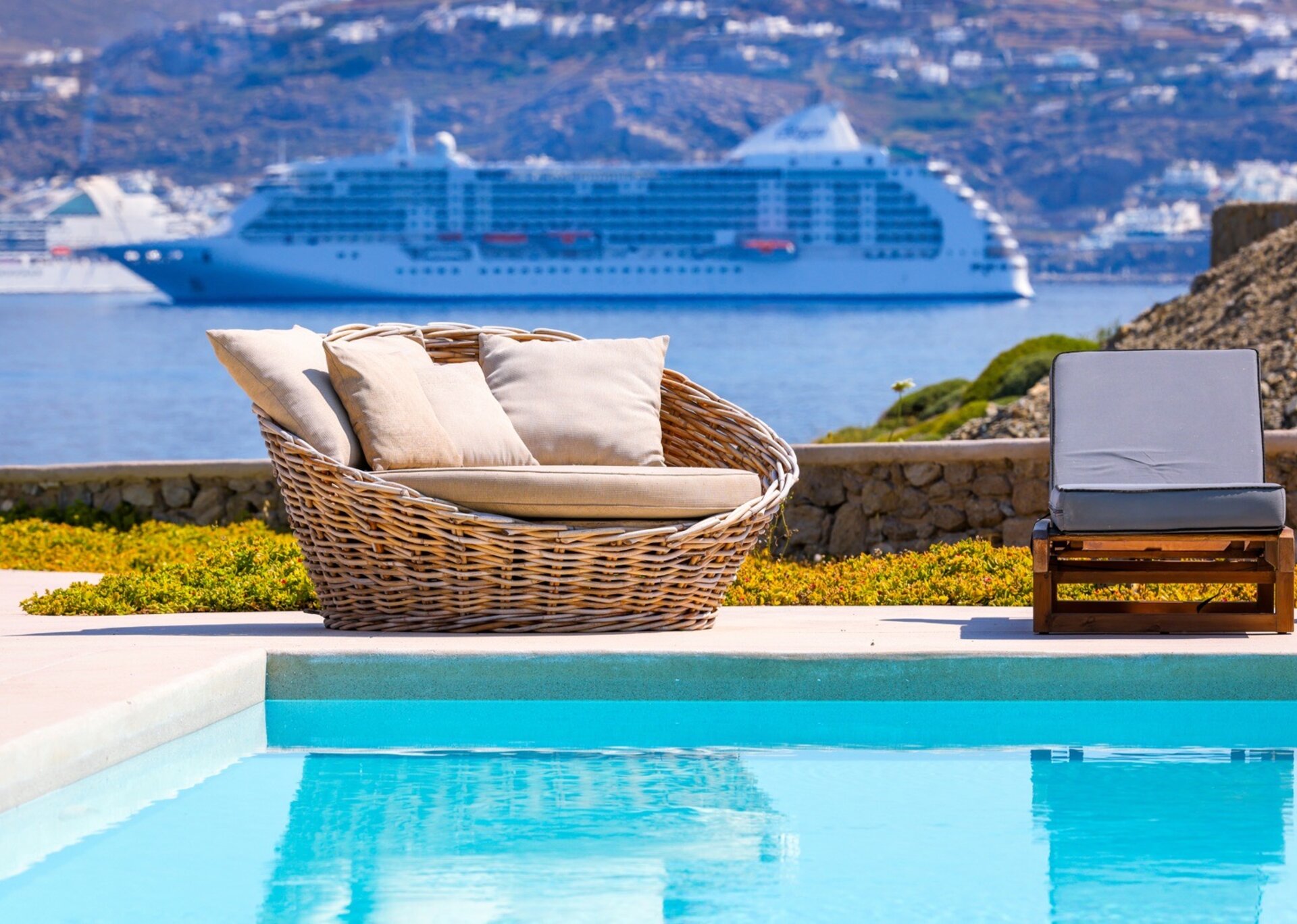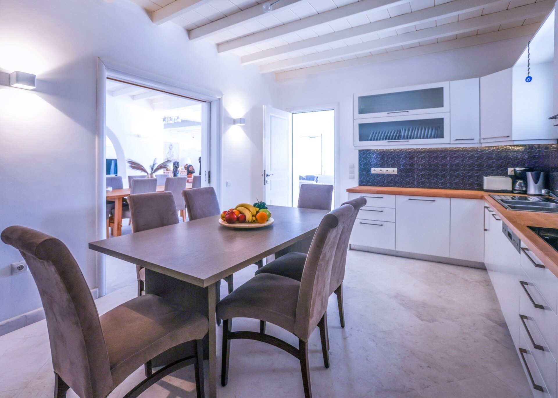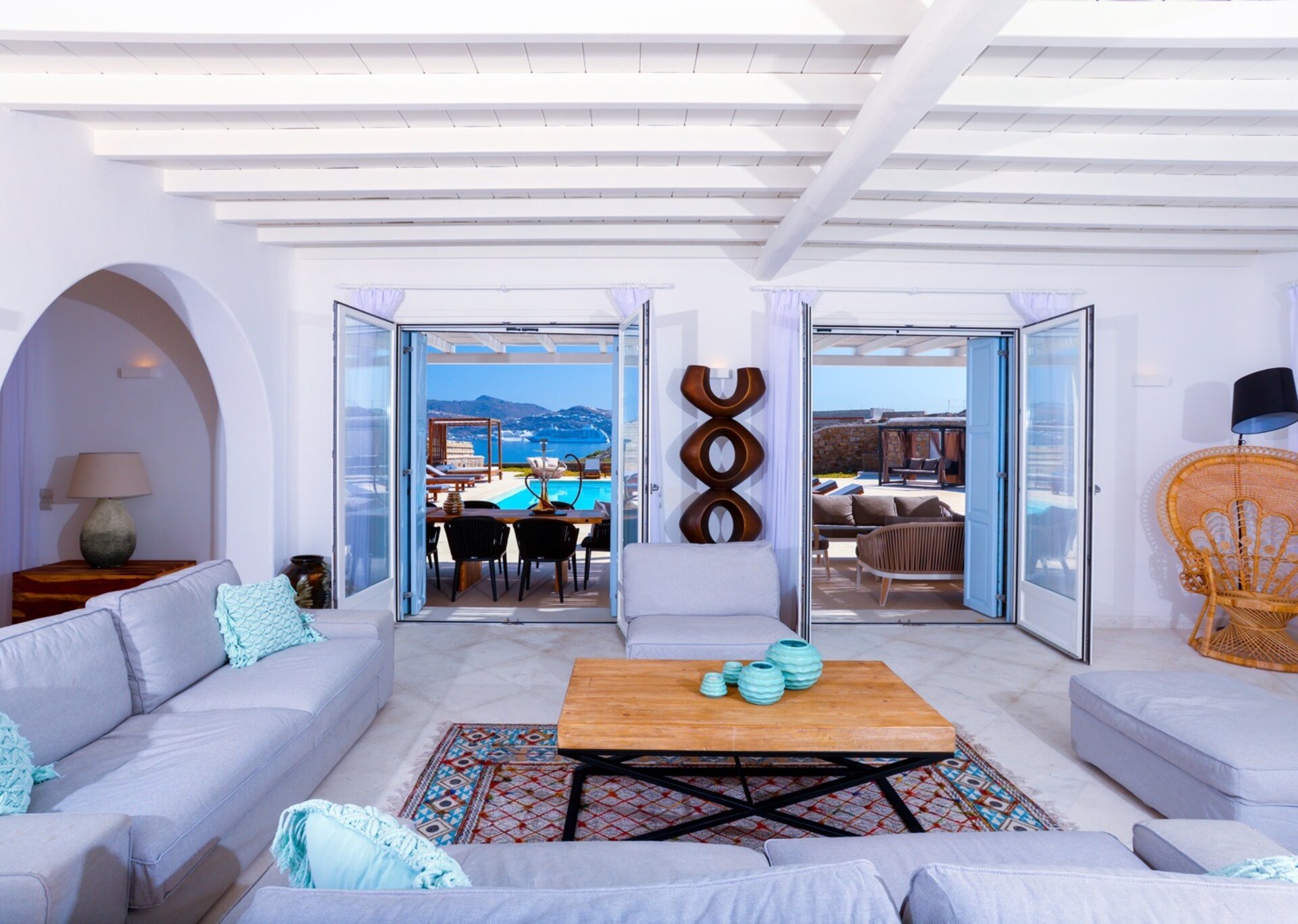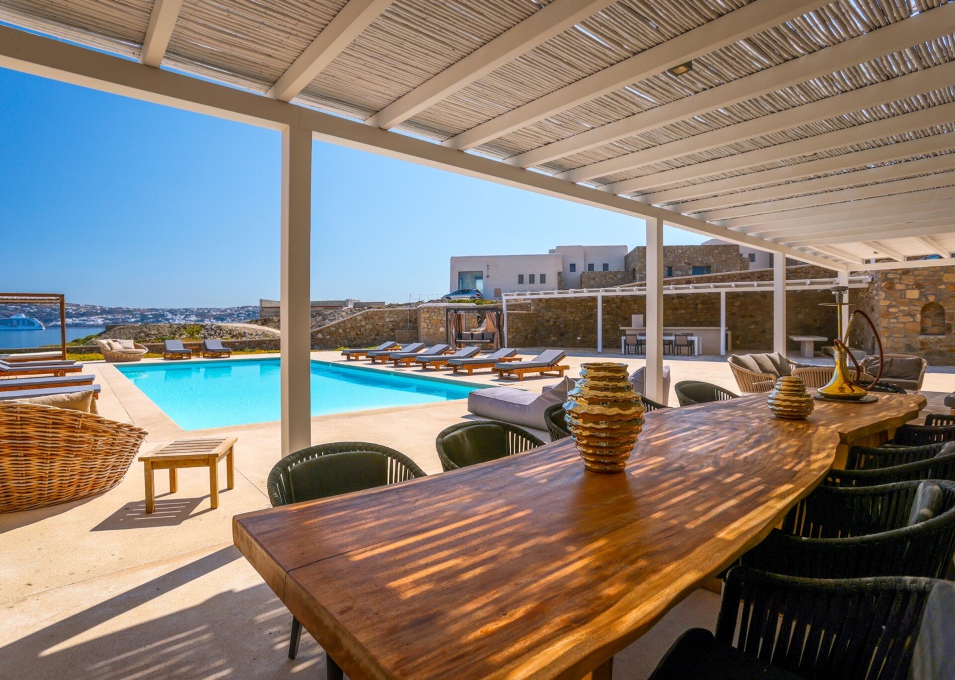 A stylish reflection of the cosmopolitan Mykonos lifestyle but with a traditional touch, Villa Serenity, sits gracefully on the imposing spot of Kanalia, affording a divine view of the breathtaking Aegean Sea all the way to the islands of Syros and Tinos. Tranquility, serenity, space and calm are waiting to welcome you at an impeccable villa and yet you are only 15 minutes away from the famous Mykonos Town as well as 15minute drive from Nammos, one of the four biggest clubs all over the world. Everything you have ever dreamed of for perfect vacations is just here to be found.