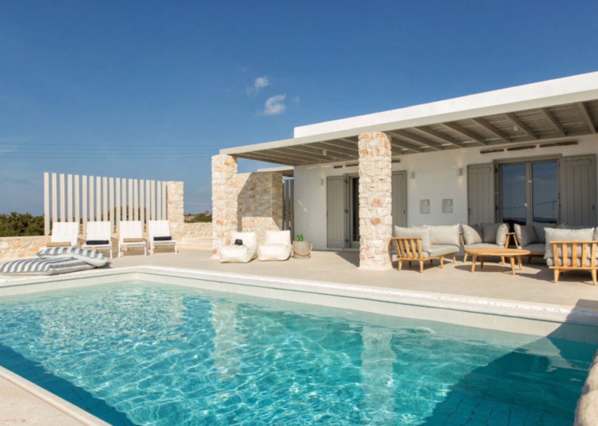 Nestled on the southern coastline of Paros island, Sirena Villa awaits with open doors to welcome up to 10 guests to its enchanting minimalist design and dreamy vacation scenery.