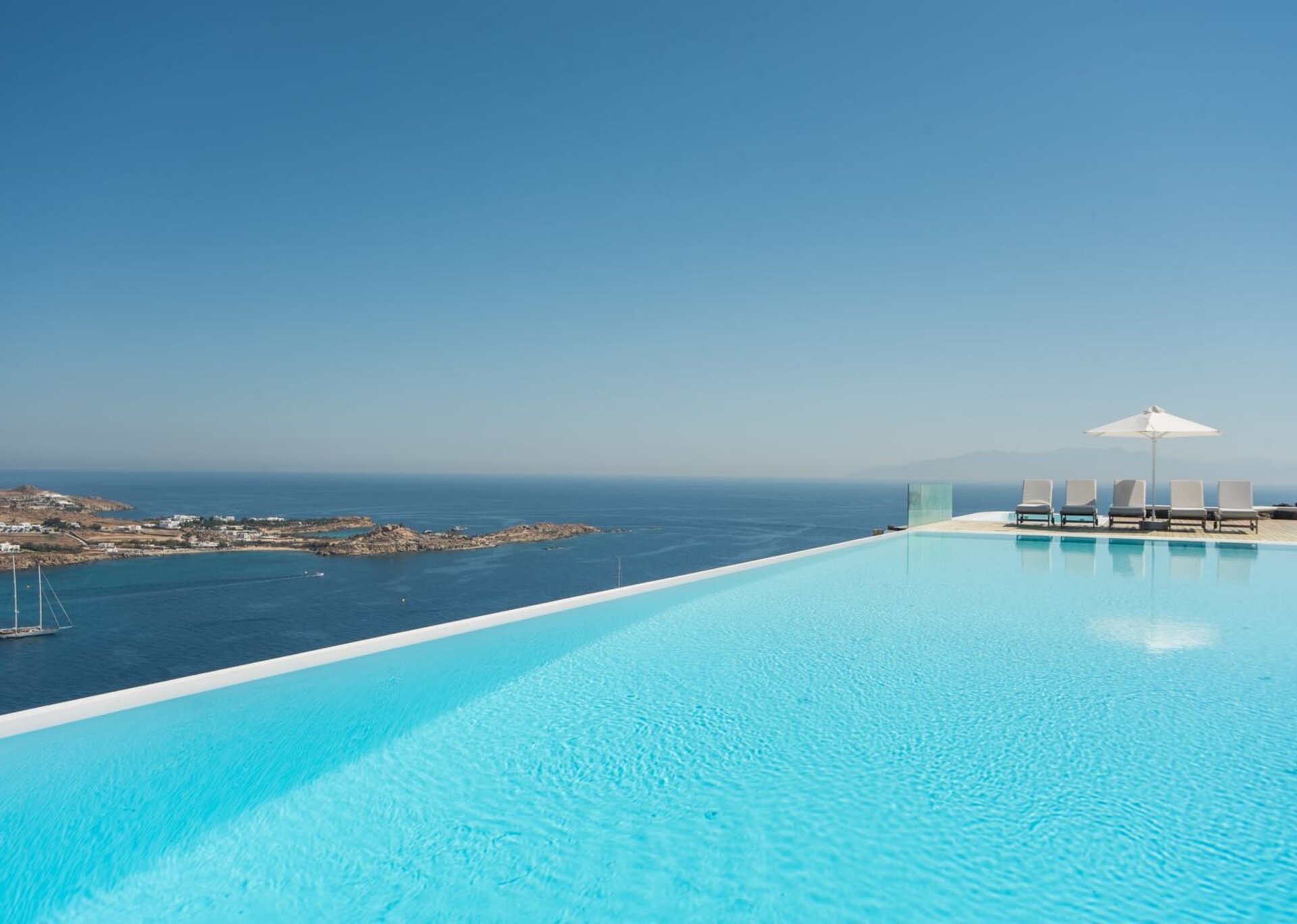 Offering ample space for large groups, jet-setters and style enthusiasts, you can unwind in the 1,550 sqm of vast outdoor terraces with plush cushions and sun loungers. A sublime infinity pool with breathtaking views invites you to take a dip or lap swim while enjoying the unparalleled scenery.
