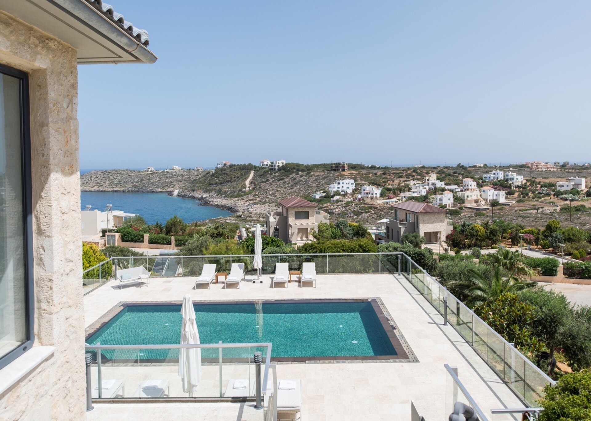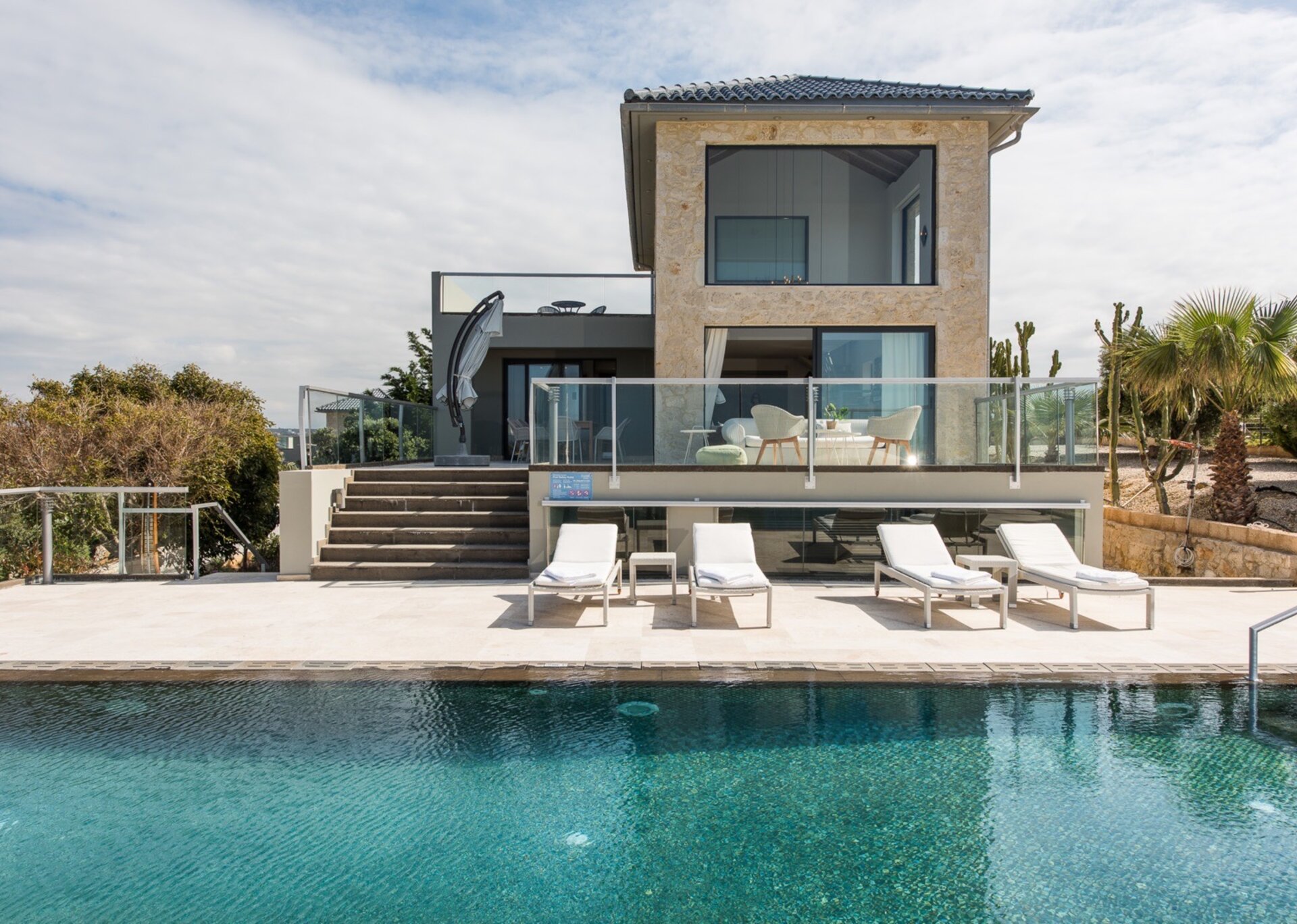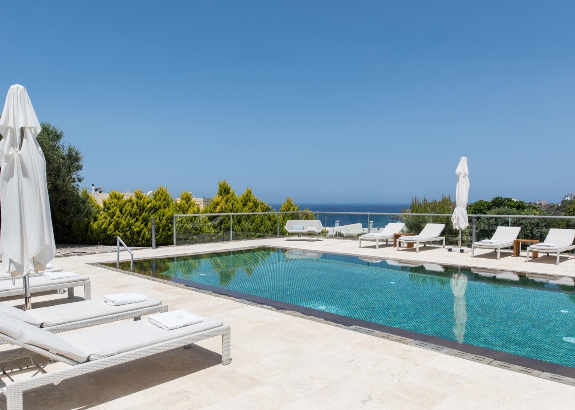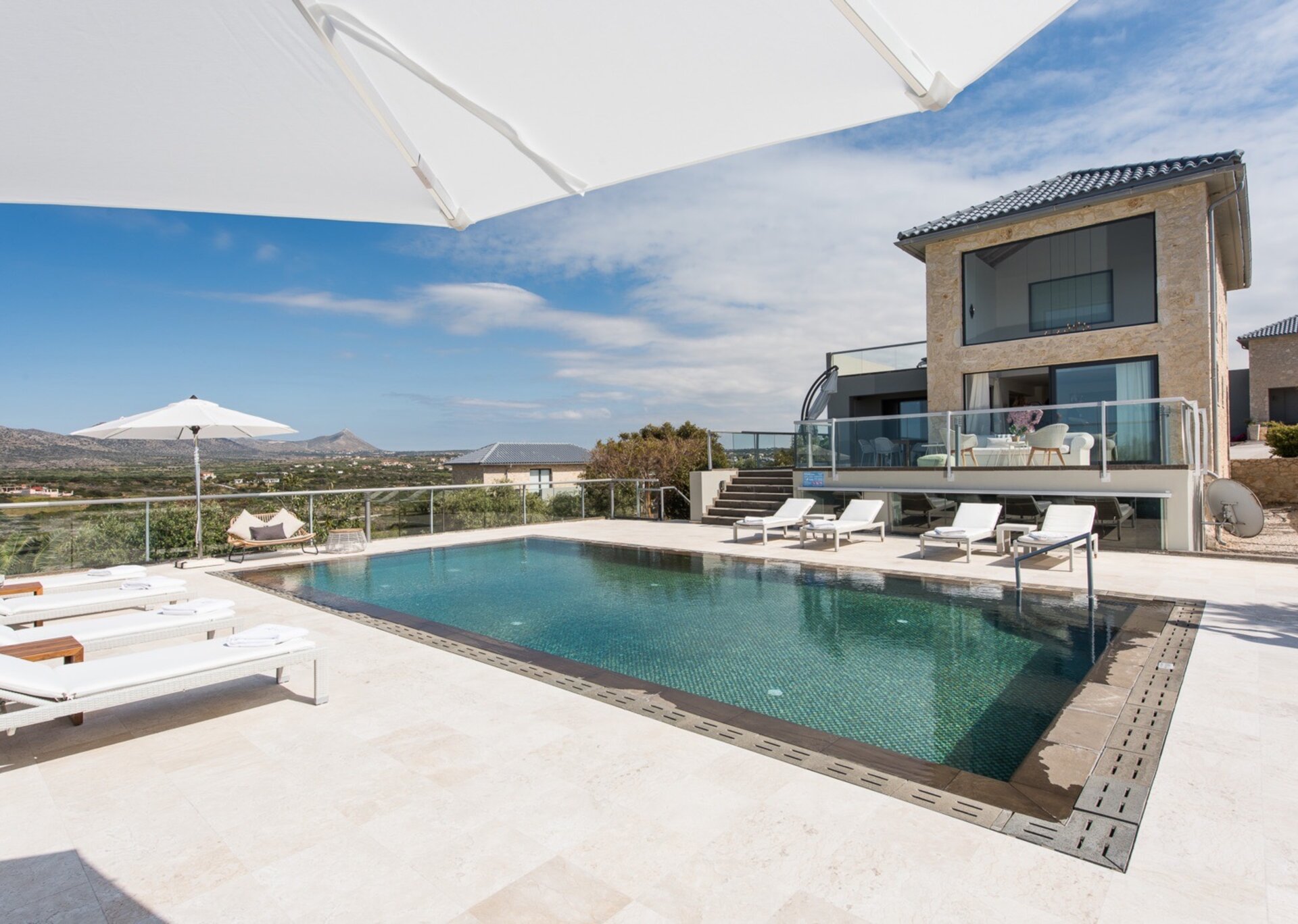 Escape to the Mediterranean paradise of Chania, Crete, to experience the exquisite Villa Sylvia. This picturesque estate emanates tranquility and privacy, perfect for any modern luxury seeker. Spread across three levels, the villa's refined aesthetics fuse seamlessly with its serene surroundings, providing mesmerizing vistas from every room.