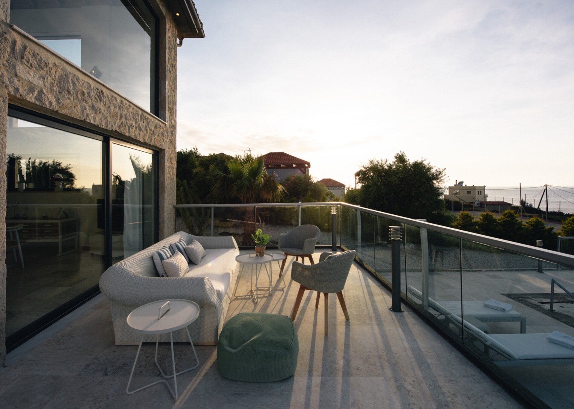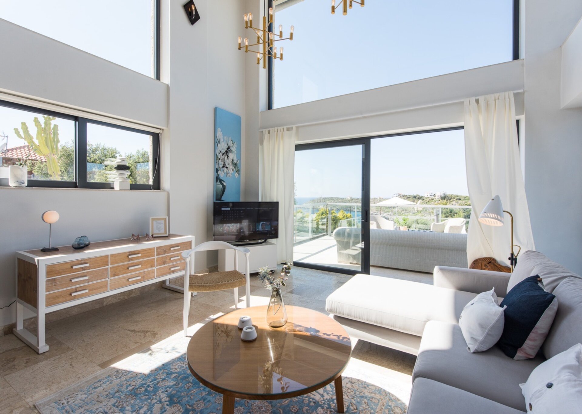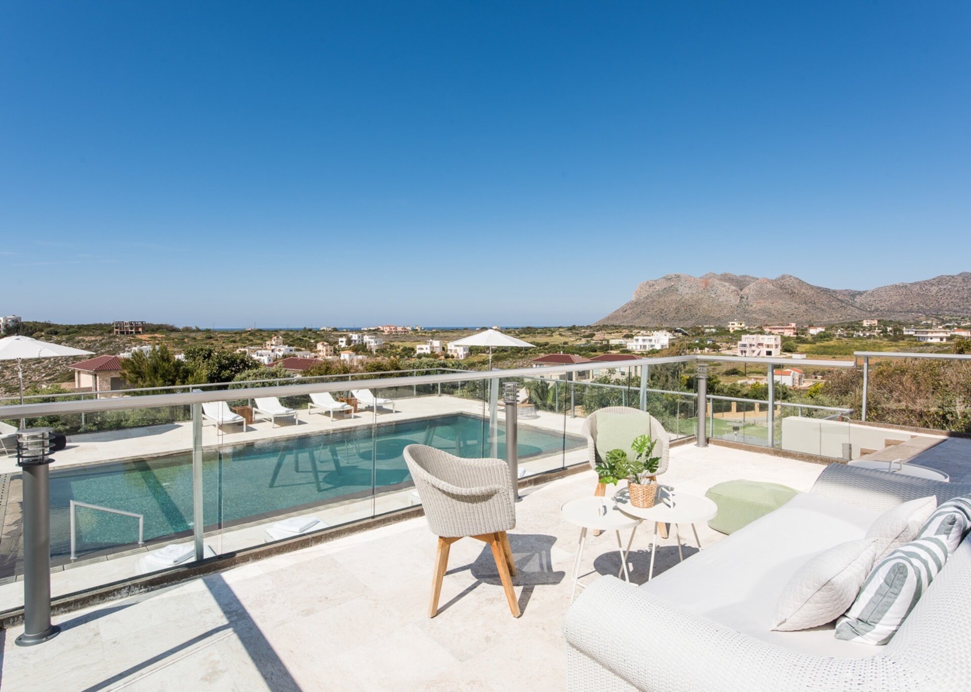 Escape to the Mediterranean paradise of Chania, Crete, to experience the exquisite Villa Sylvia. This picturesque estate emanates tranquility and privacy, perfect for any modern luxury seeker. Spread across three levels, the villa's refined aesthetics fuse seamlessly with its serene surroundings, providing mesmerizing vistas from every room.