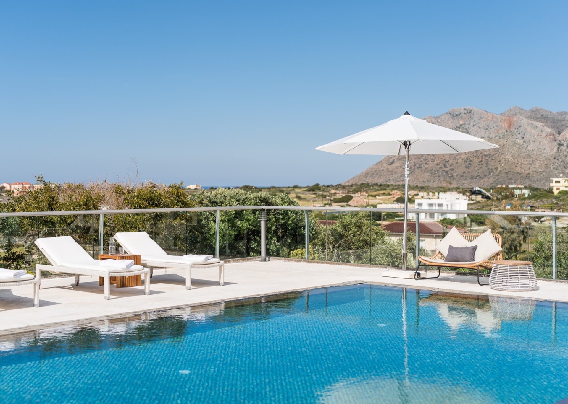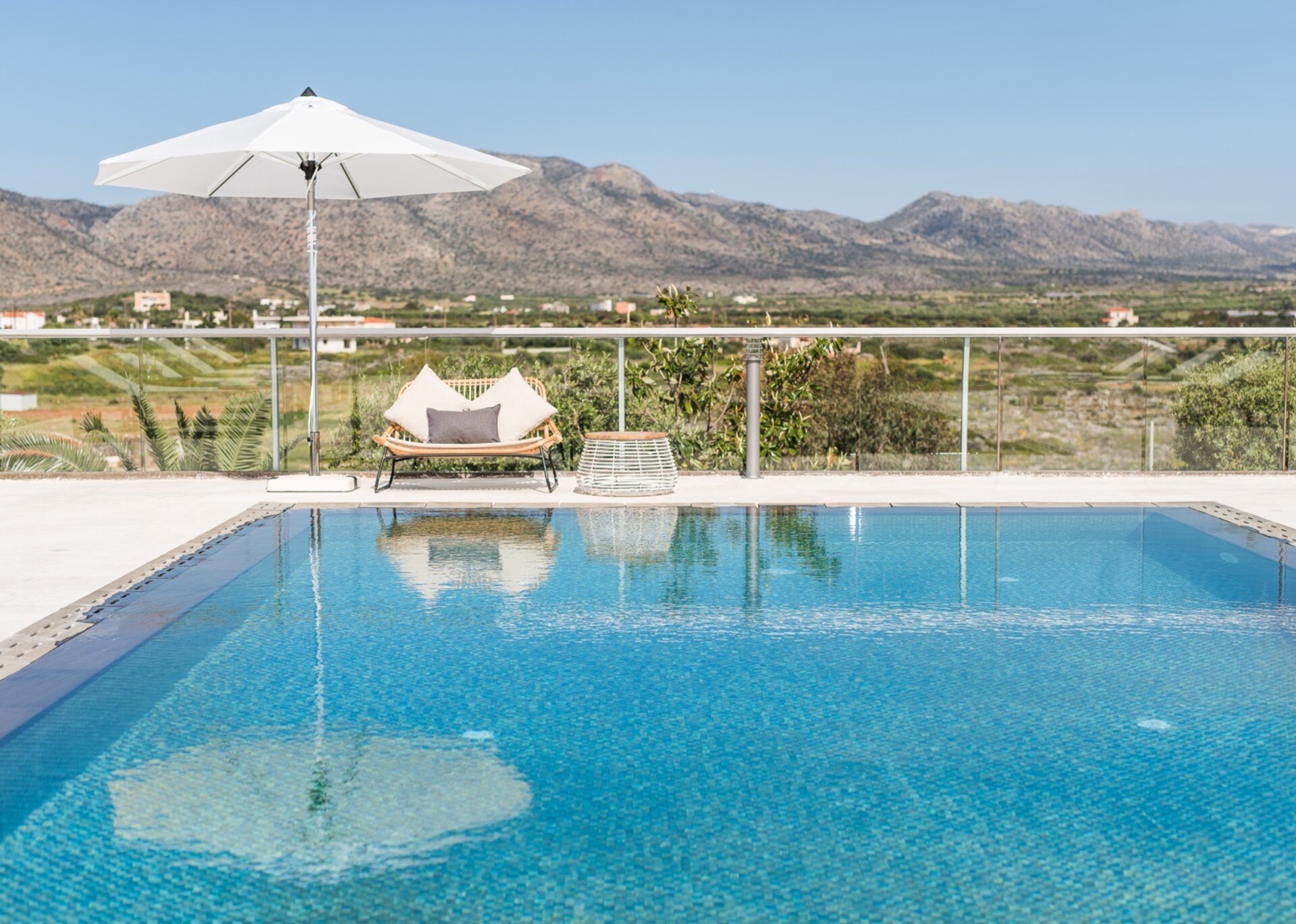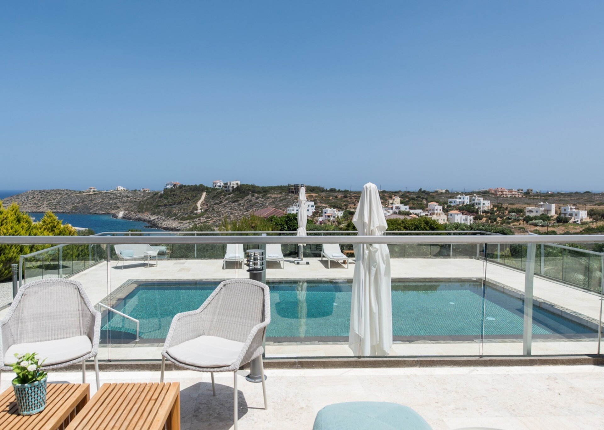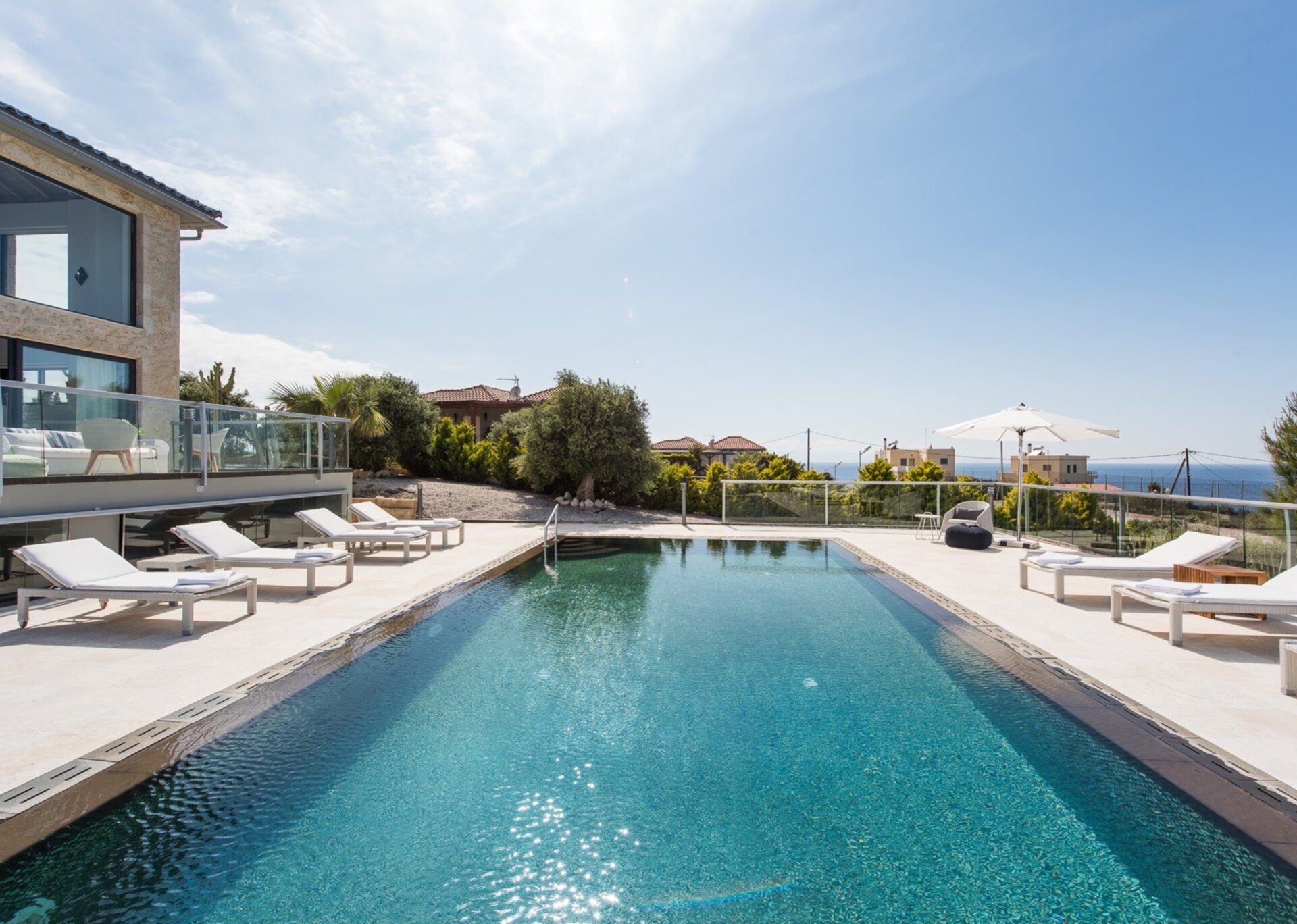 Escape to the Mediterranean paradise of Chania, Crete, to experience the exquisite Villa Sylvia. This picturesque estate emanates tranquility and privacy, perfect for any modern luxury seeker. Spread across three levels, the villa's refined aesthetics fuse seamlessly with its serene surroundings, providing mesmerizing vistas from every room.