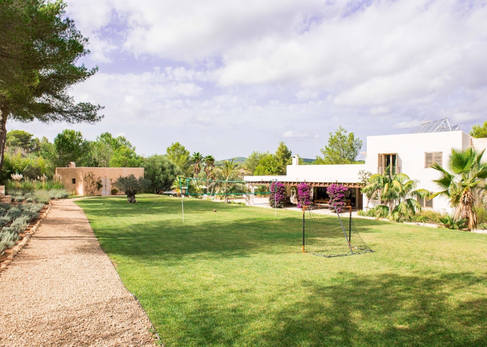 Sink into the embrace of the large L-shaped sofa, its super cozy seats inviting you and your loved ones to cuddle or stretch out. Plan the day's island adventures or, if you prefer, revel in the newfound freedom of having no schedule at all. Taliss provides an array of activities for your young ones, from skateboarding and football to enjoying the treehouse, while you unwind in one of the chill-out areas or dine al fresco. Surrounded by nature, Can Mirna offers liberation and ample space to roam freely. Towering pine trees fill the air with a resinous woody scent, and palms of all shapes and sizes create a tropical ambiance that envelops you. Amidst all fifty shades of verdant green, bursts of vibrant fuchsia bougainvillea add a pop of neon color. Immaculately manicured lawns invite you to walk barefoot, or you can venture deeper into the grounds and explore the winding paths.