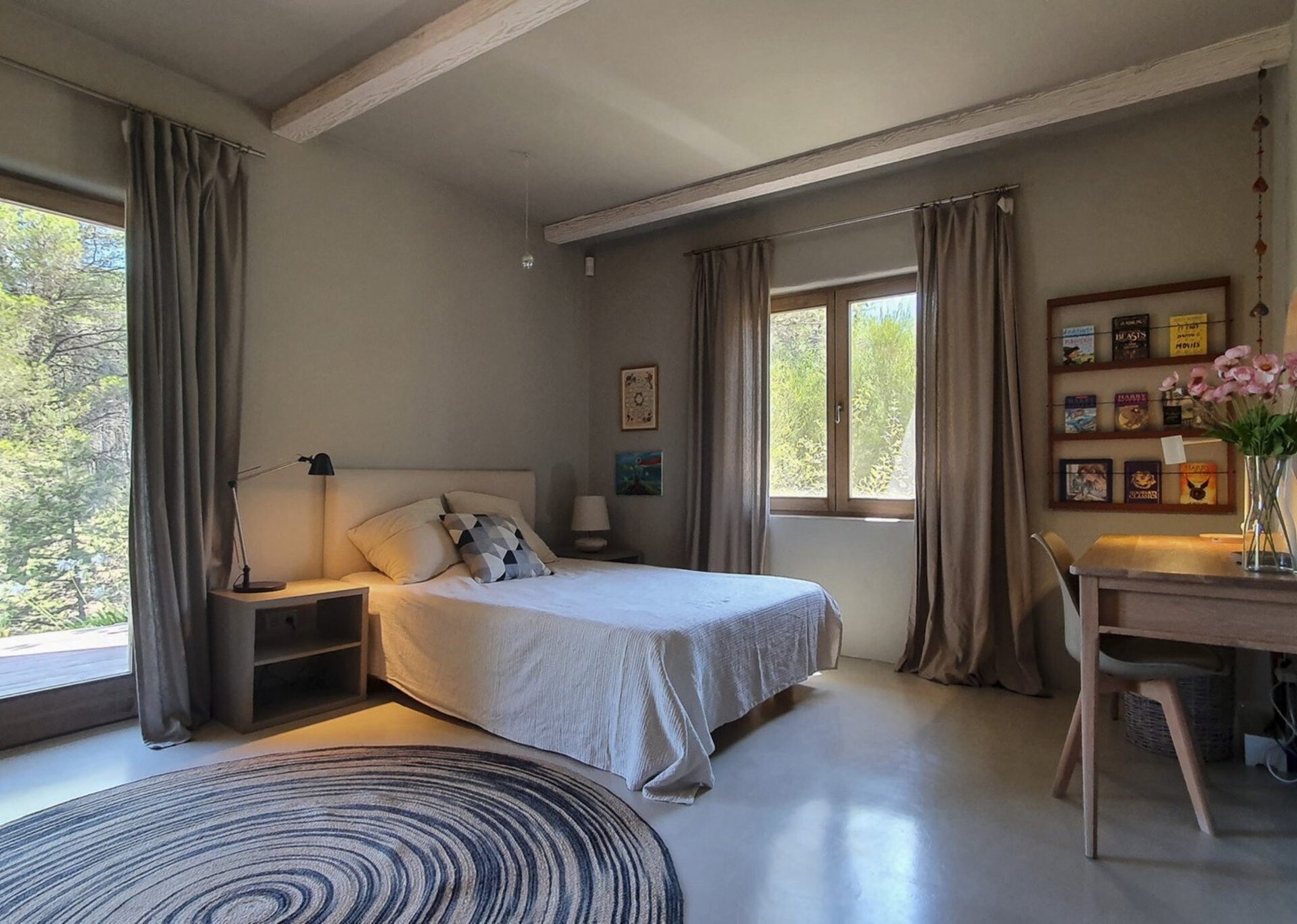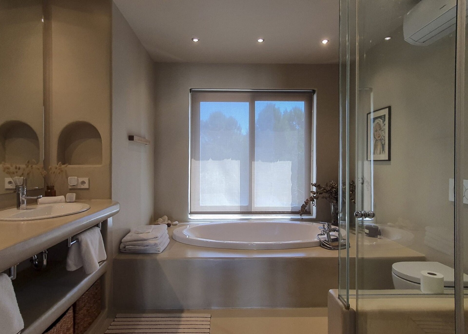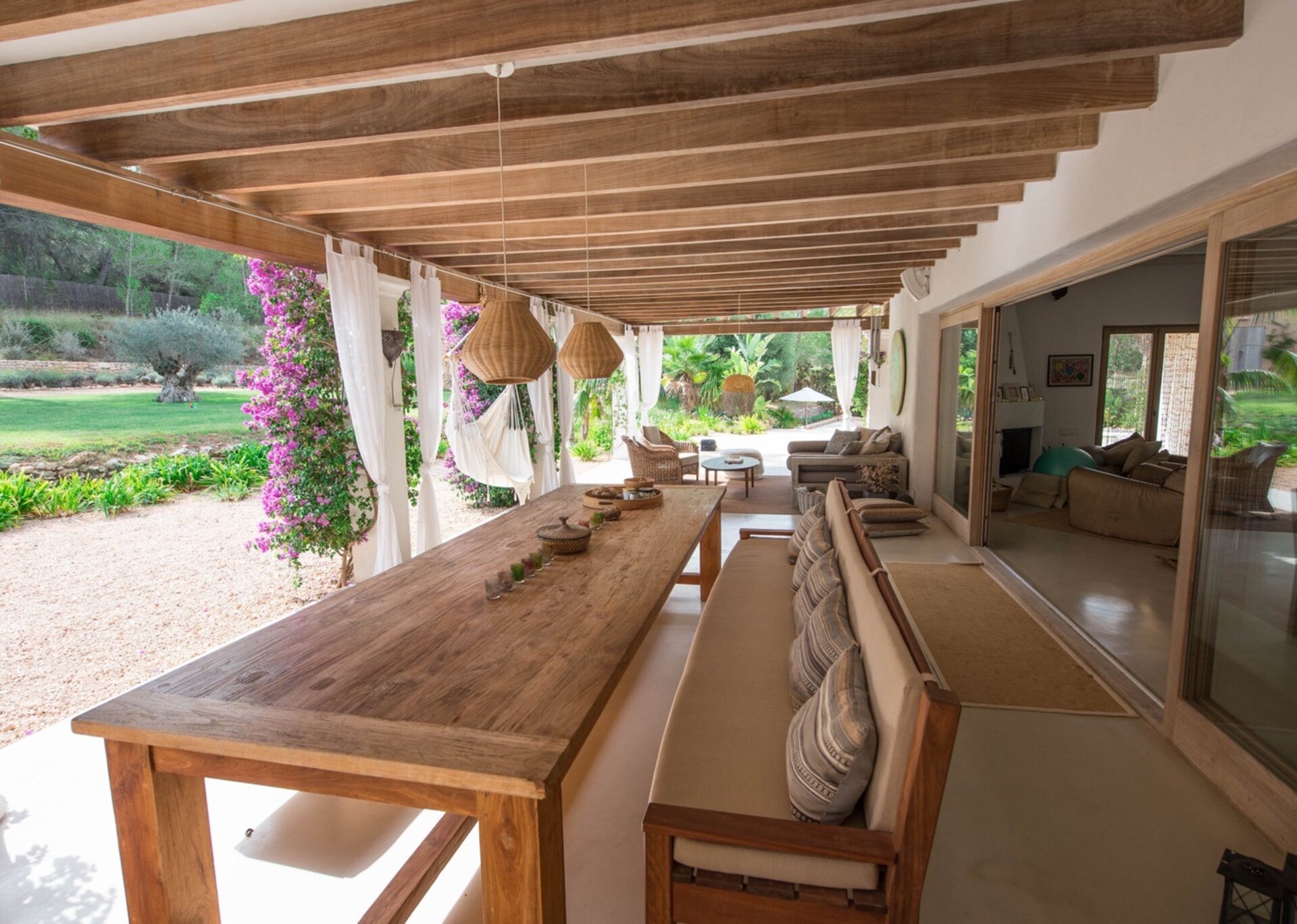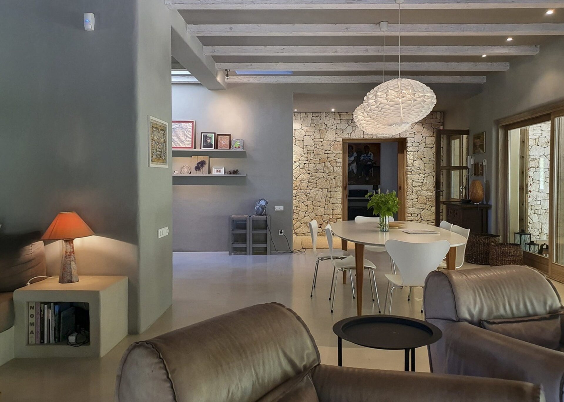 Nestled within the enchanting embrace of ancient pine trees and a mysterious forest, Taliss is a newly built five-bedroom villa. Tucked away in the campo, it offers the best of both worlds - seclusion and convenient proximity to restaurants, beaches, shops, and Ibiza town. Just follow the winding country roads, and within minutes, you'll find yourself in the cool and charming village of Santa Gertrudis, where you can easily stock up on organic essentials, browse artisan home wares in Es Cucones, or simply indulge in people-watching while sipping a café con leche in the village square.