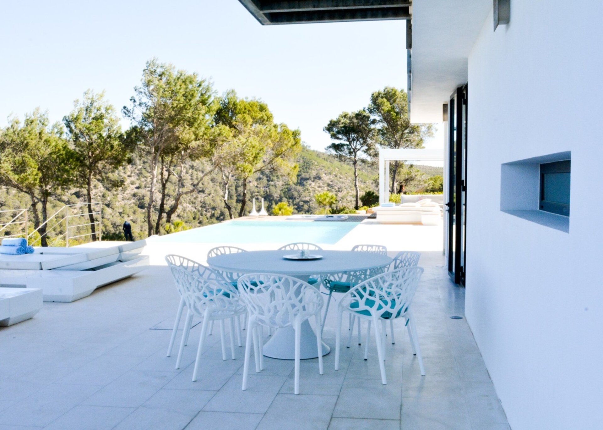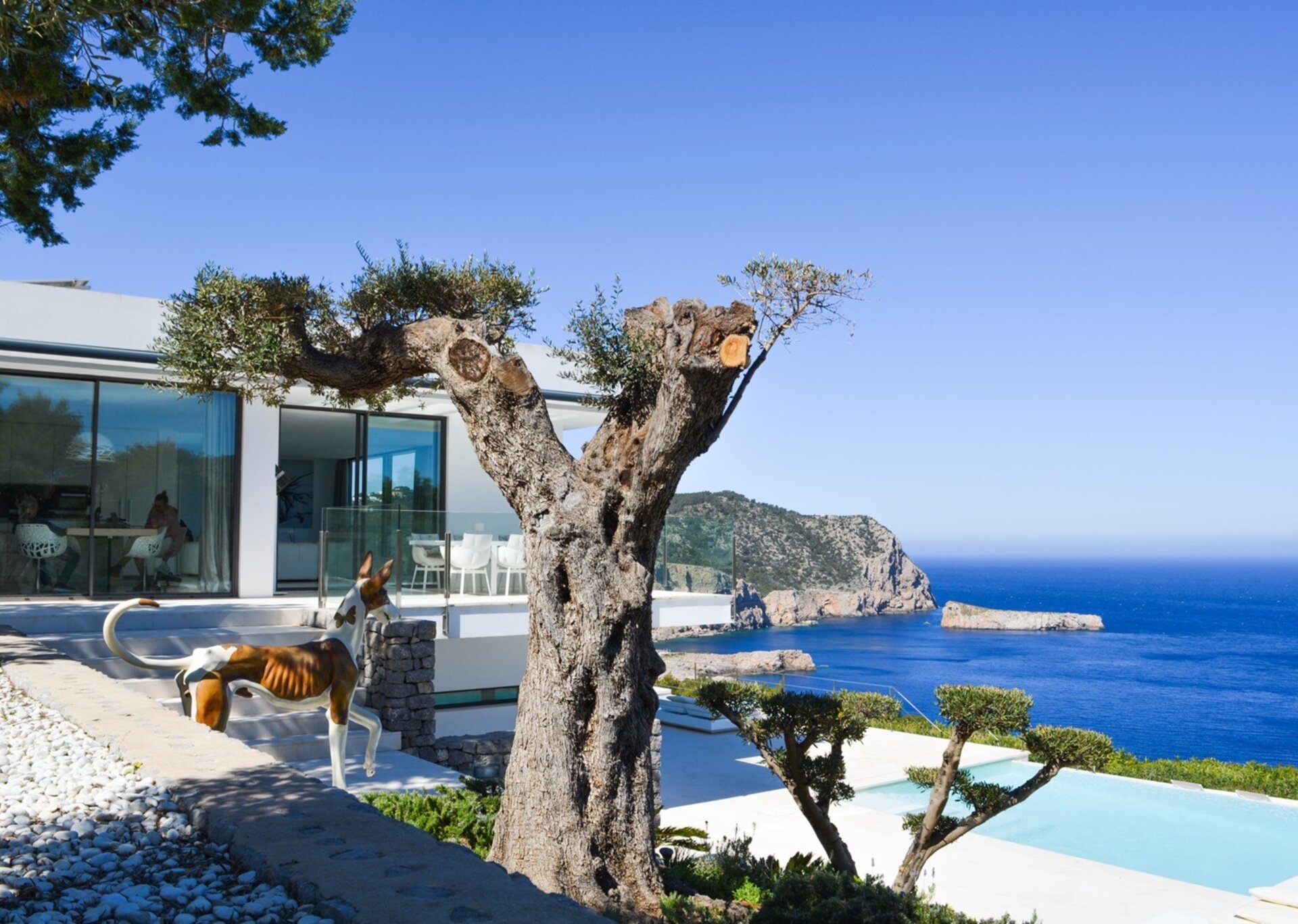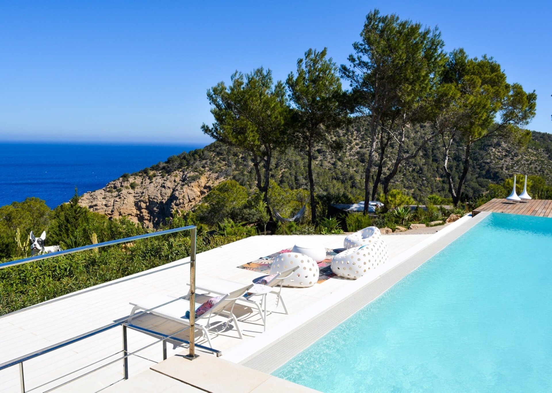 Tash, a stunning modern villa situated in the scenic North of Ibiza, offers breathtaking panoramic views of dramatic clifftops and the glistening Mediterranean waters. With its sleek and sophisticated style, characterized by clean lines and elegant simplicity, Tash perfectly harmonizes with the mesmerizing sea views and natural surroundings.