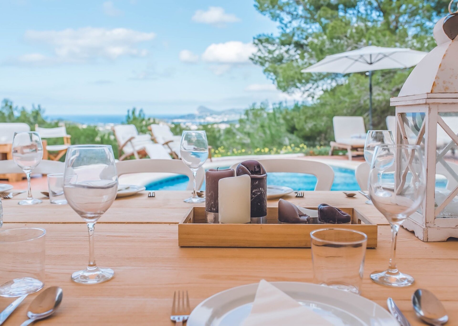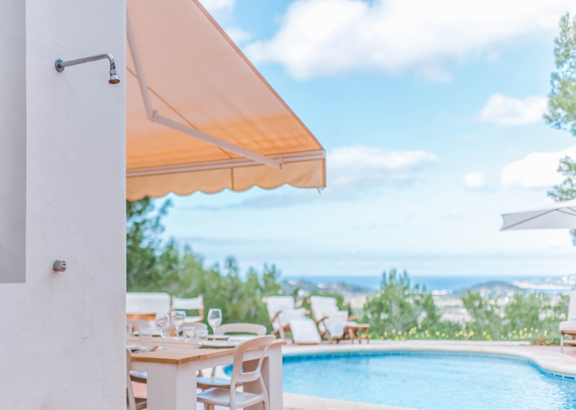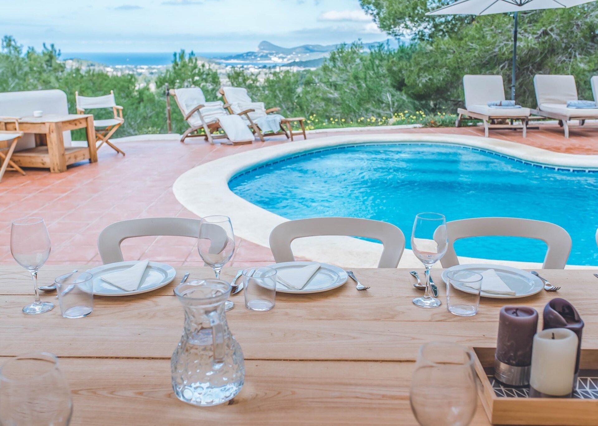 Tranquility, a 6-bedroom villa, rests just a short drive from the delightful village of San Jose. Nestled among serene pine forests, it offers an exquisite island lifestyle, boasting breathtaking panoramic views of the Mediterranean Sea and expansive countryside.