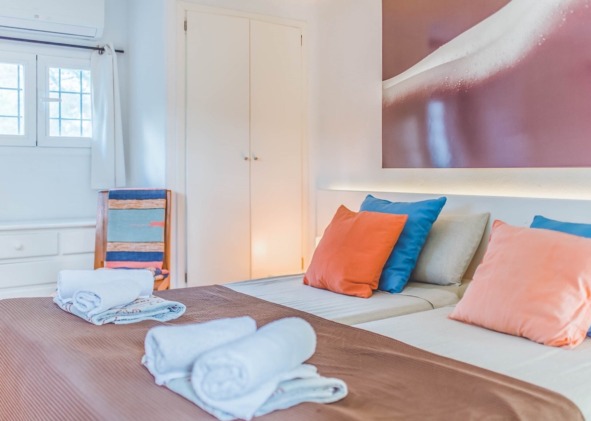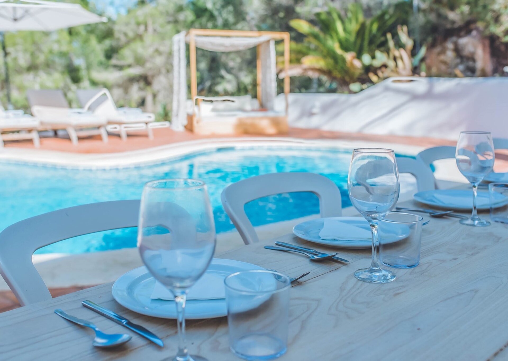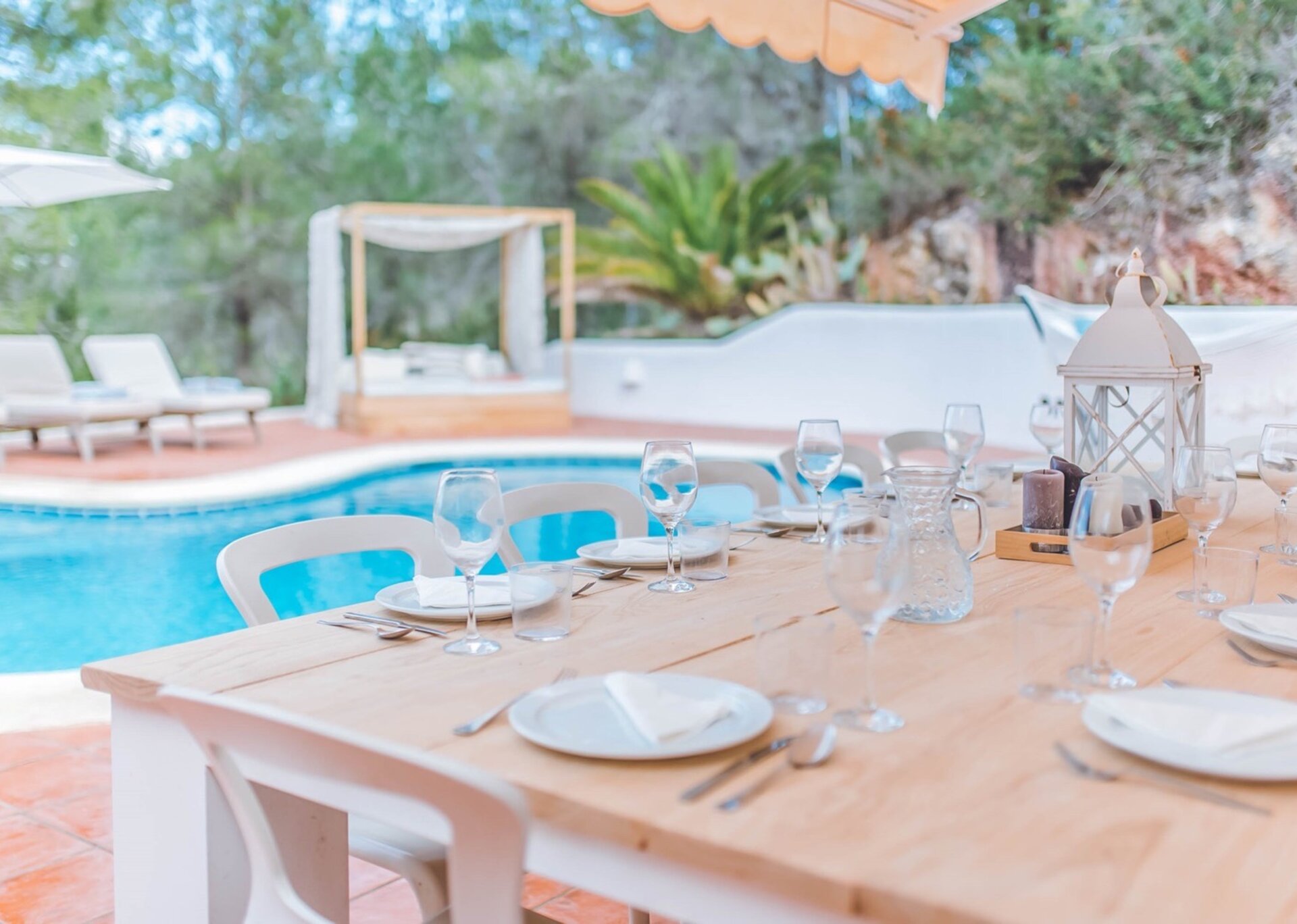 Tranquility, a 6-bedroom villa, rests just a short drive from the delightful village of San Jose. Nestled among serene pine forests, it offers an exquisite island lifestyle, boasting breathtaking panoramic views of the Mediterranean Sea and expansive countryside.