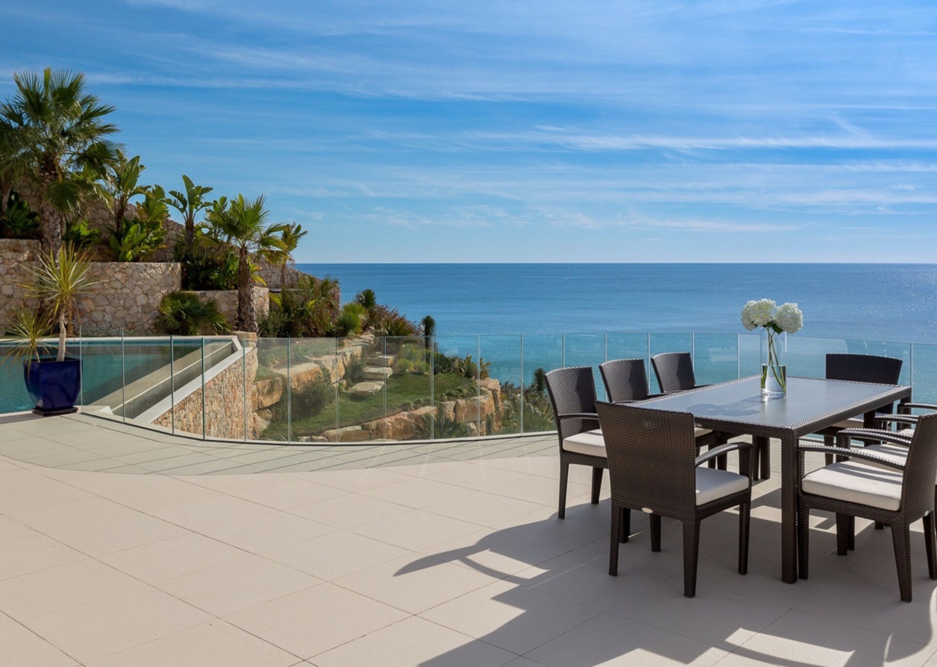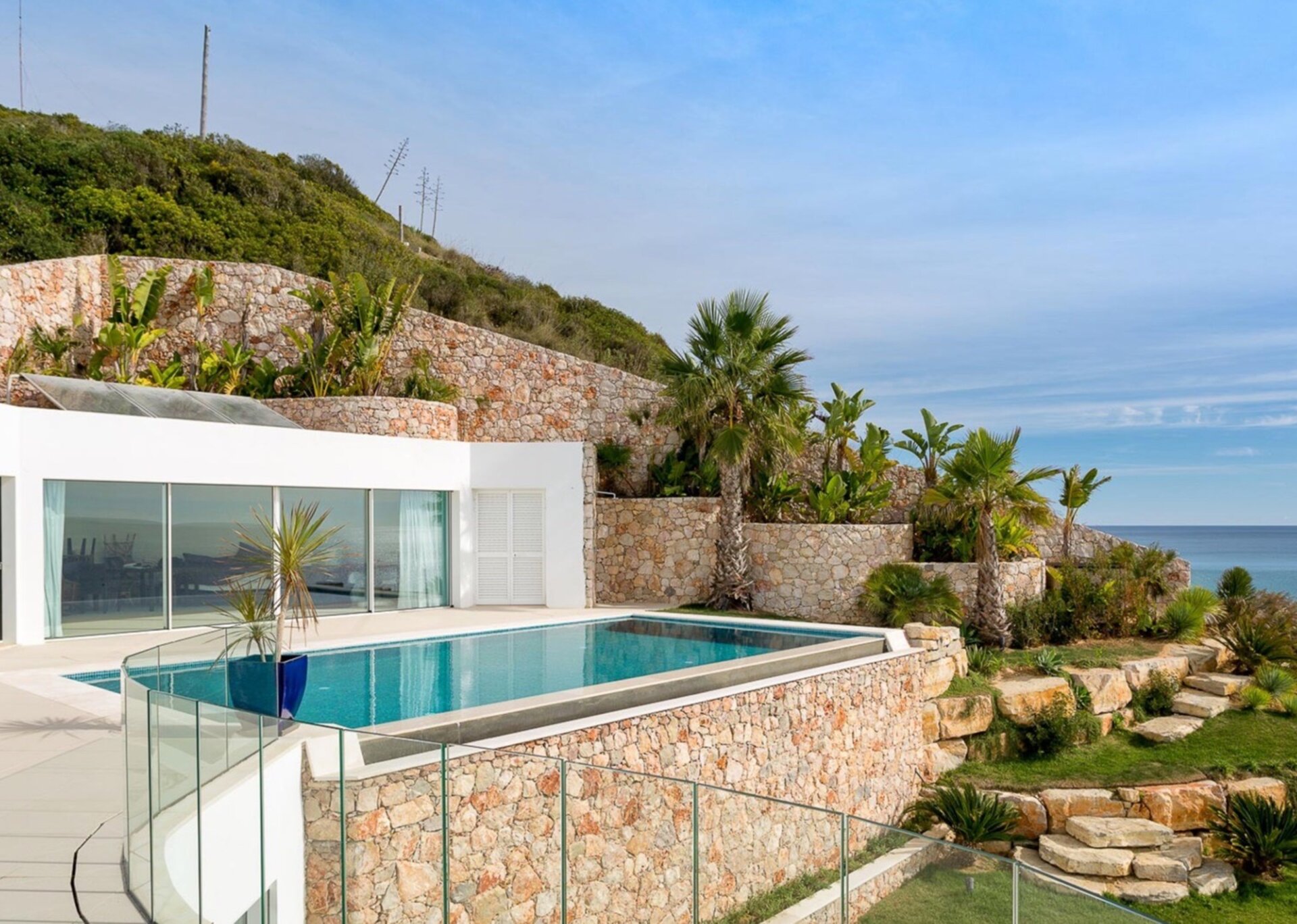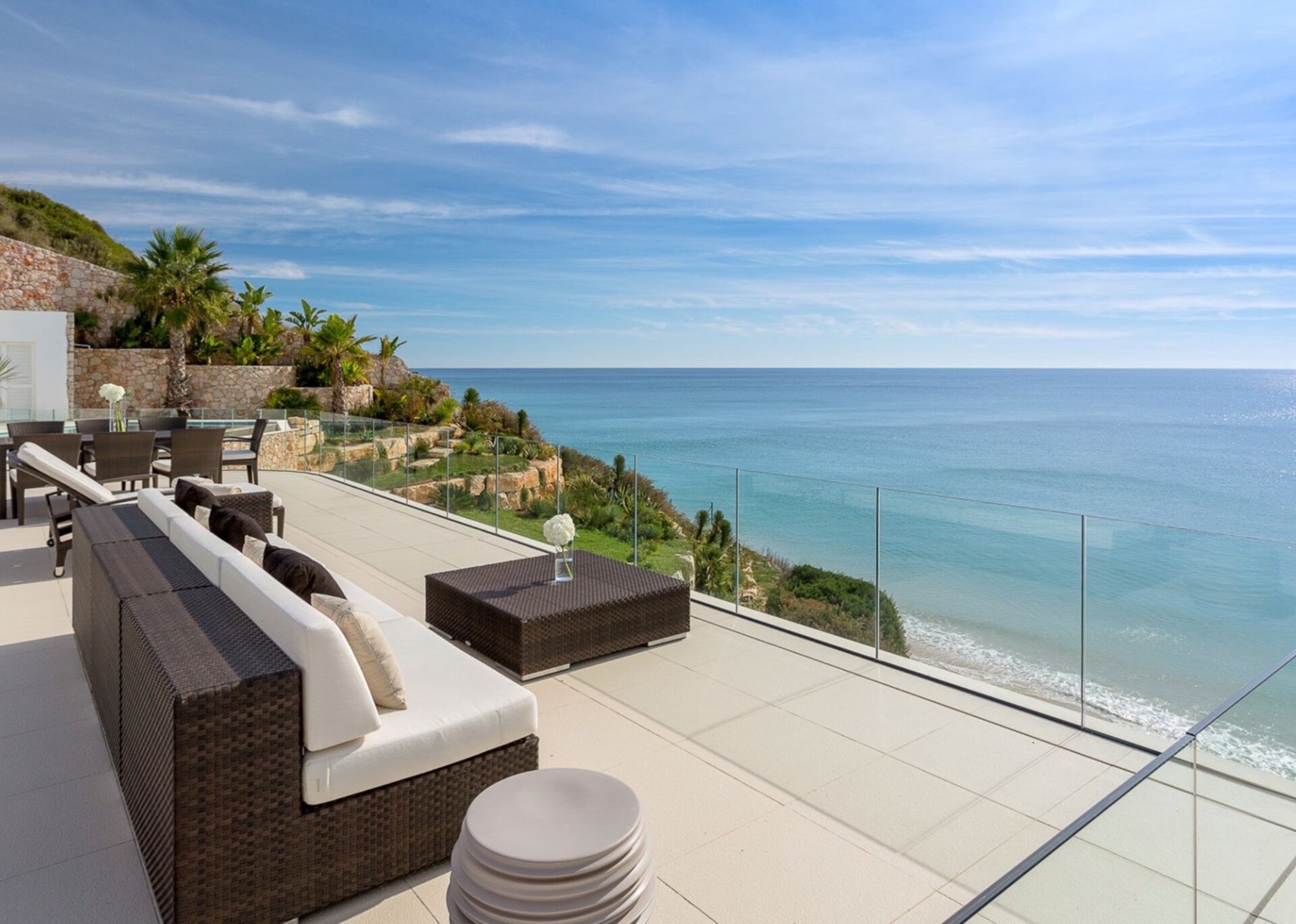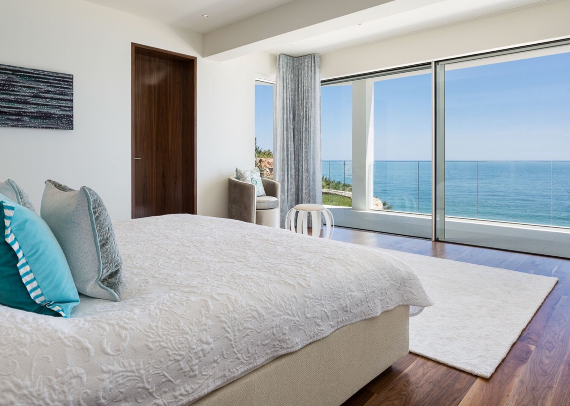 This Algarve villa provides 4 floors of remarkable, soft, contemporary architecture. Lines and curves are blurred with glass, polished chrome, and abstract sculptures coupled with the local grey and red rock. No design detail nor amenity – inside or out – has been forgotten. Gardens, pool and terraces all blend perfectly with exceptionally crafted interior woodwork, furnishings and technology.