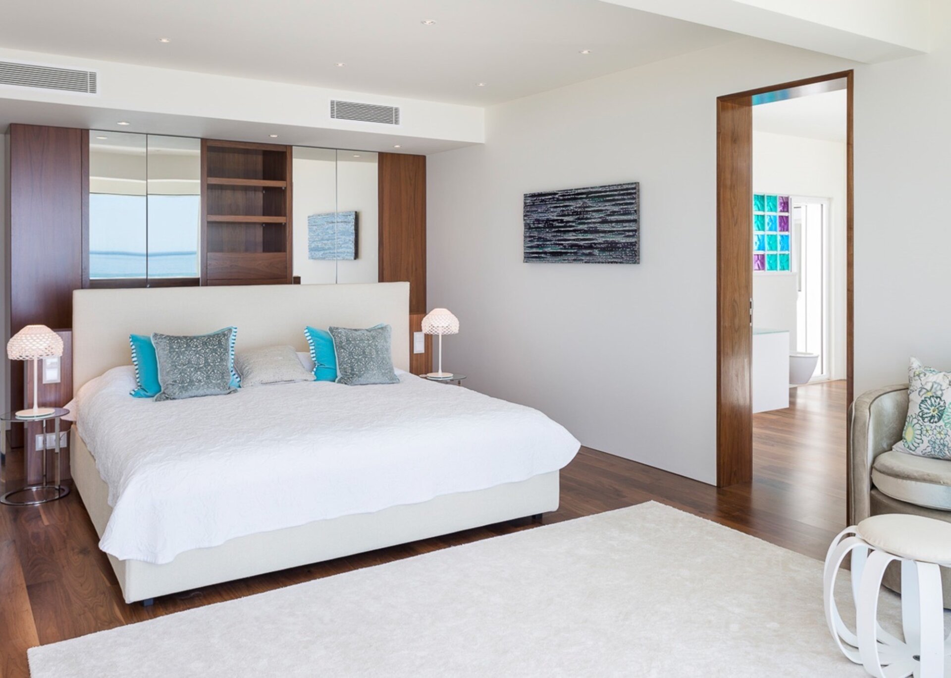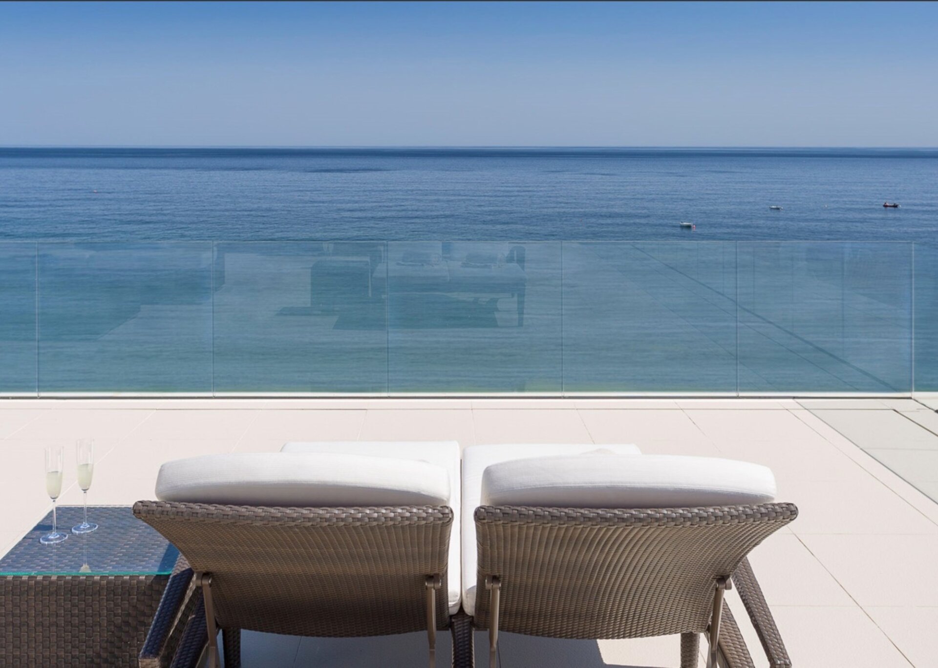 Sleeps 2 – King-size bed. Large suite with views over the ocean. Big bathroom with shower with floor-to-ceiling sliding glass doors, exterior shutters.