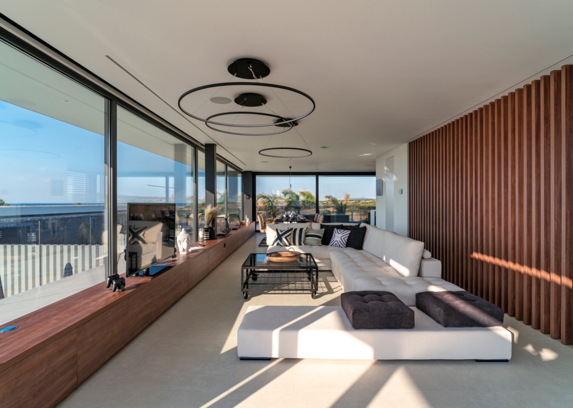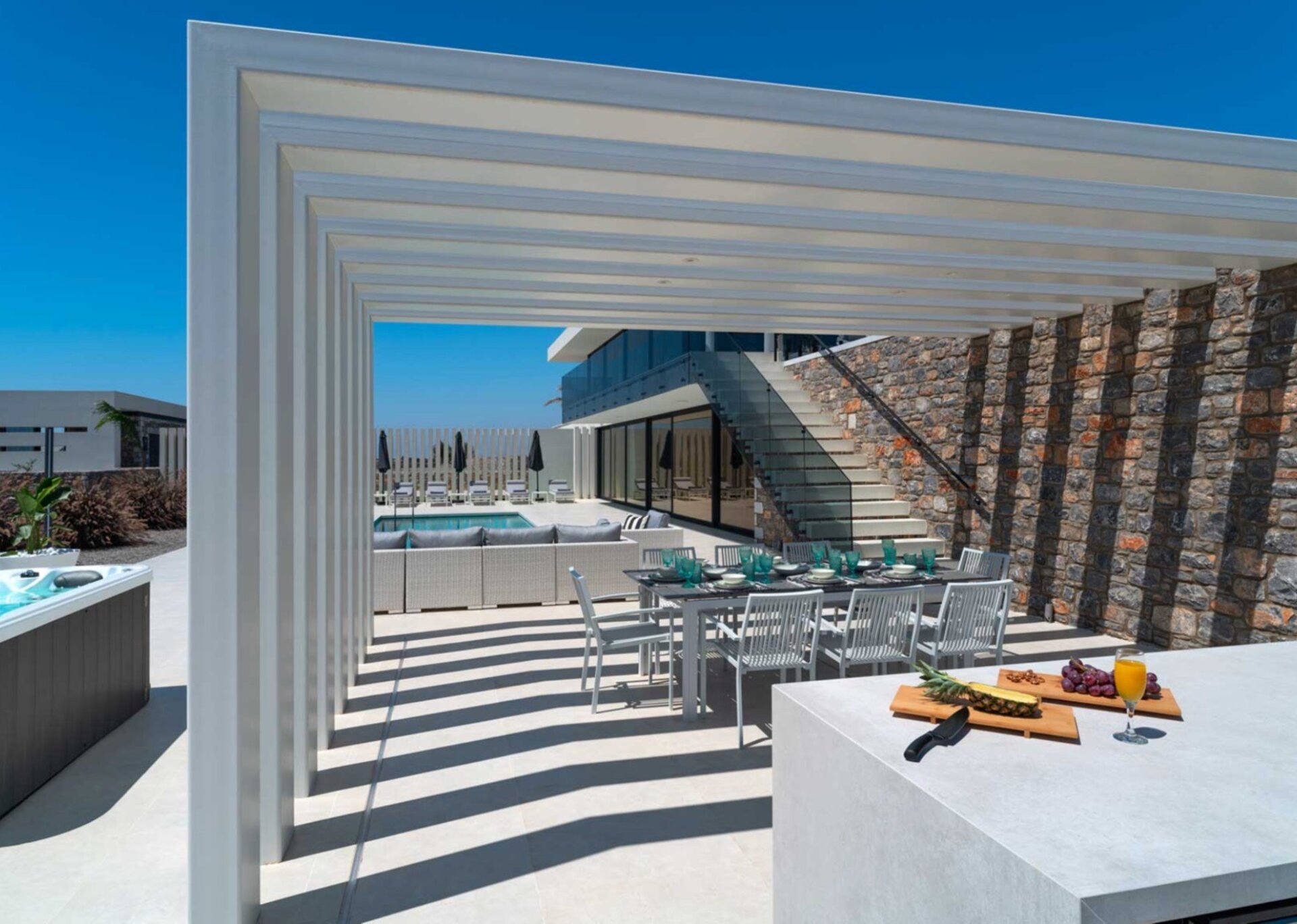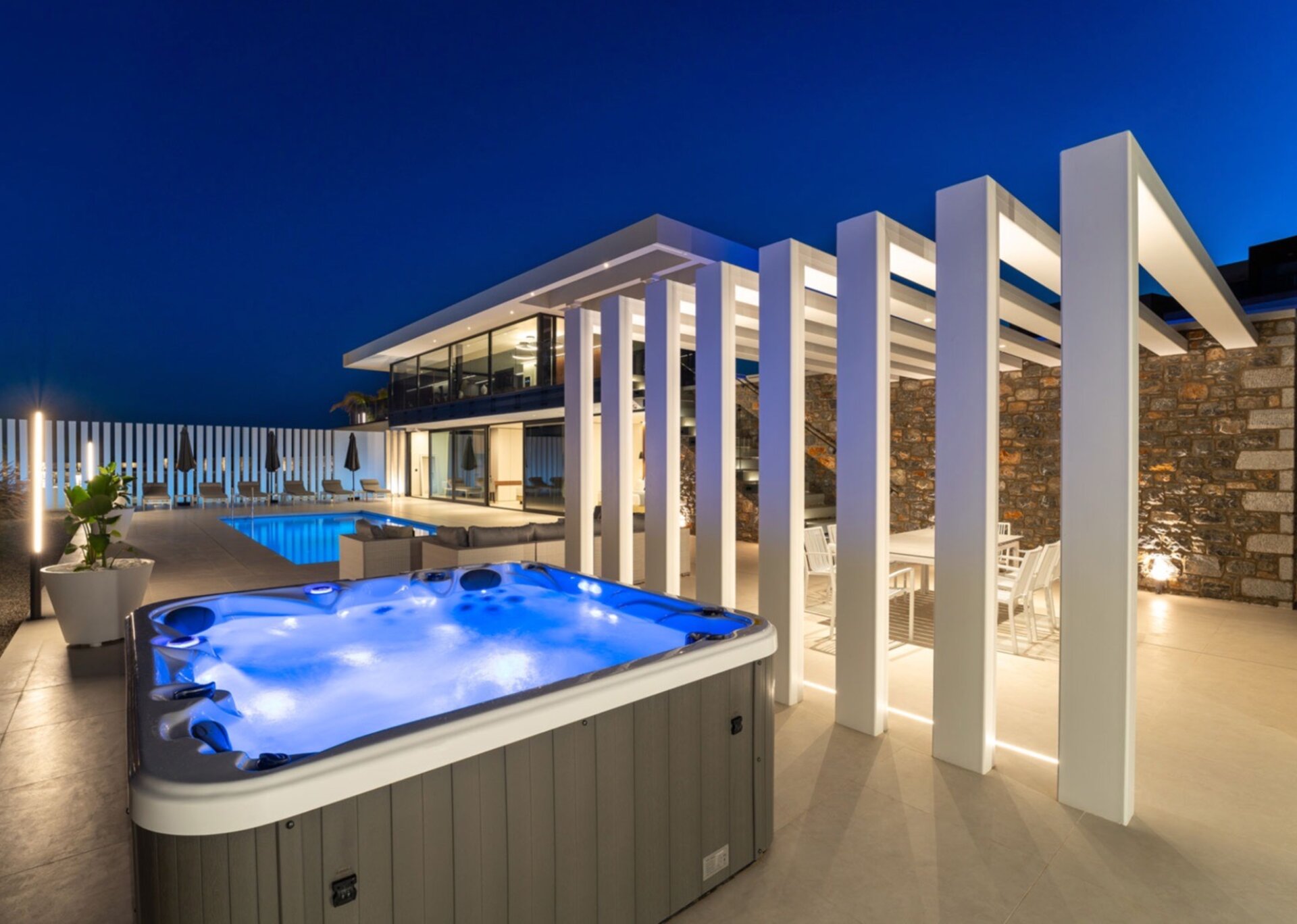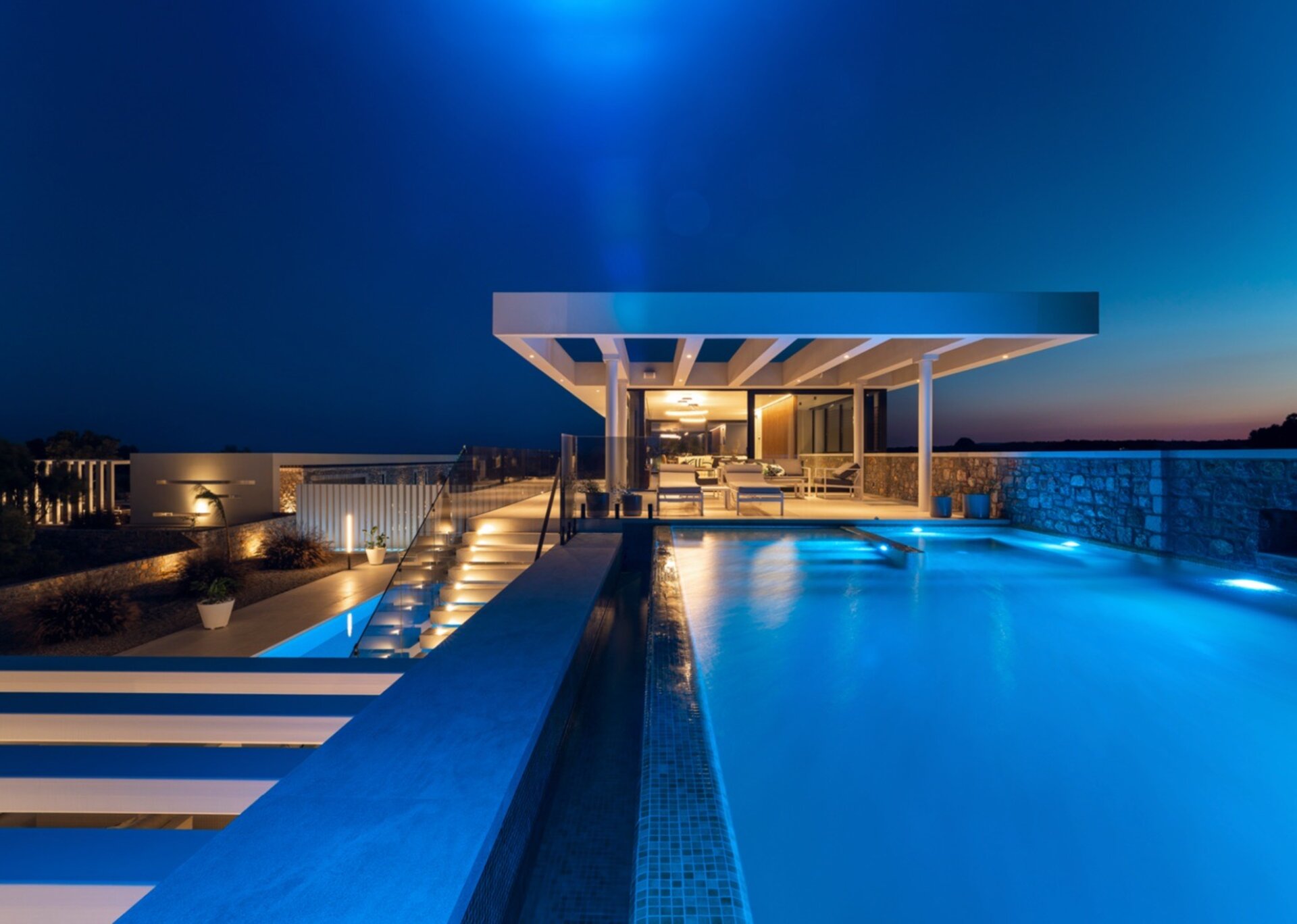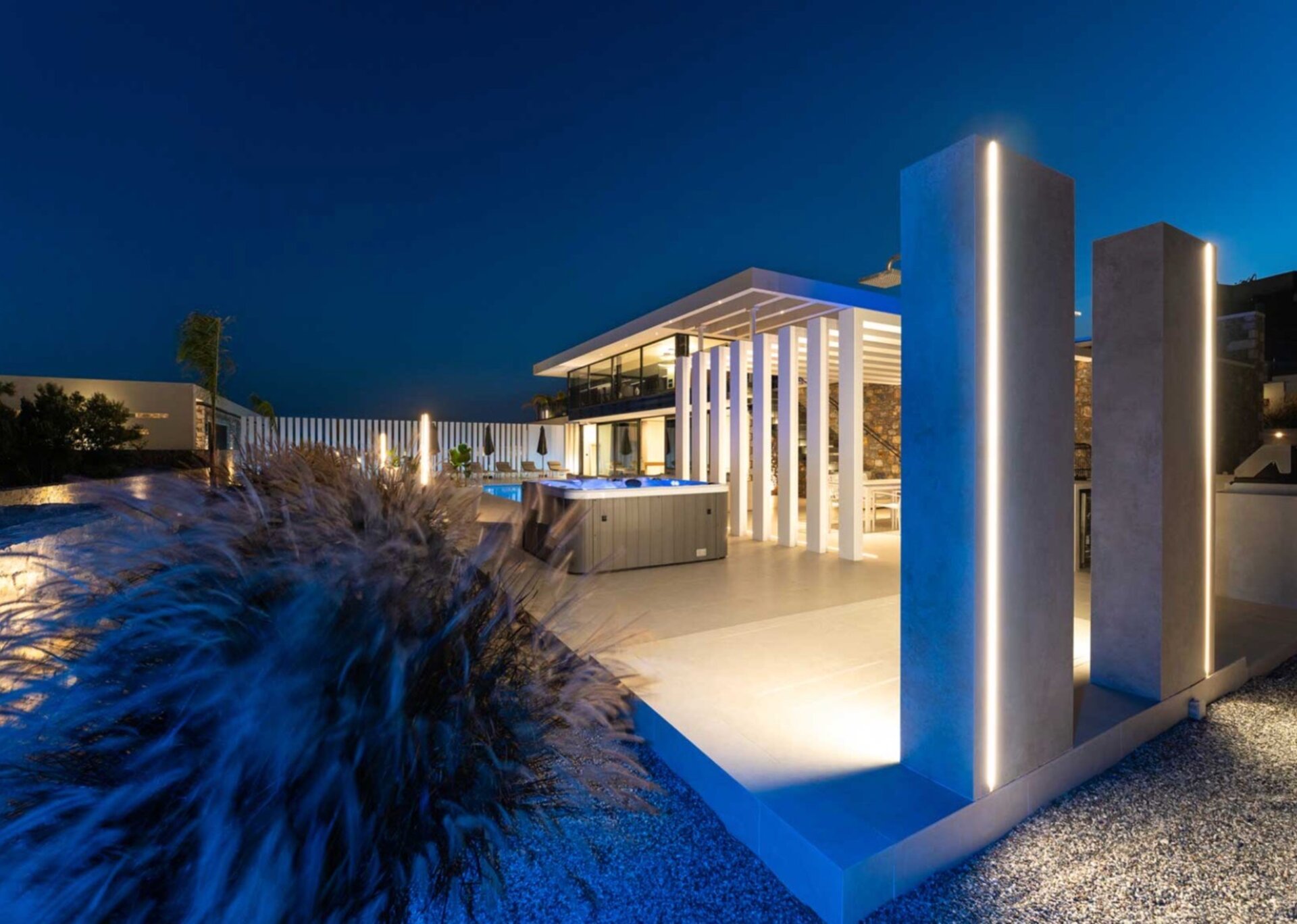 Similar to our other villas, this one is fully automated through Crestron, offering absolute control over blinds, curtains, lighting scenarios, televisions, music, and individually multi-zoned air conditioning. It even sets the perfect mood by adjusting the pool lights accordingly. Rest assured, the villa is equipped with its own comprehensive security system and surveillance cameras, ensuring your peace of mind.