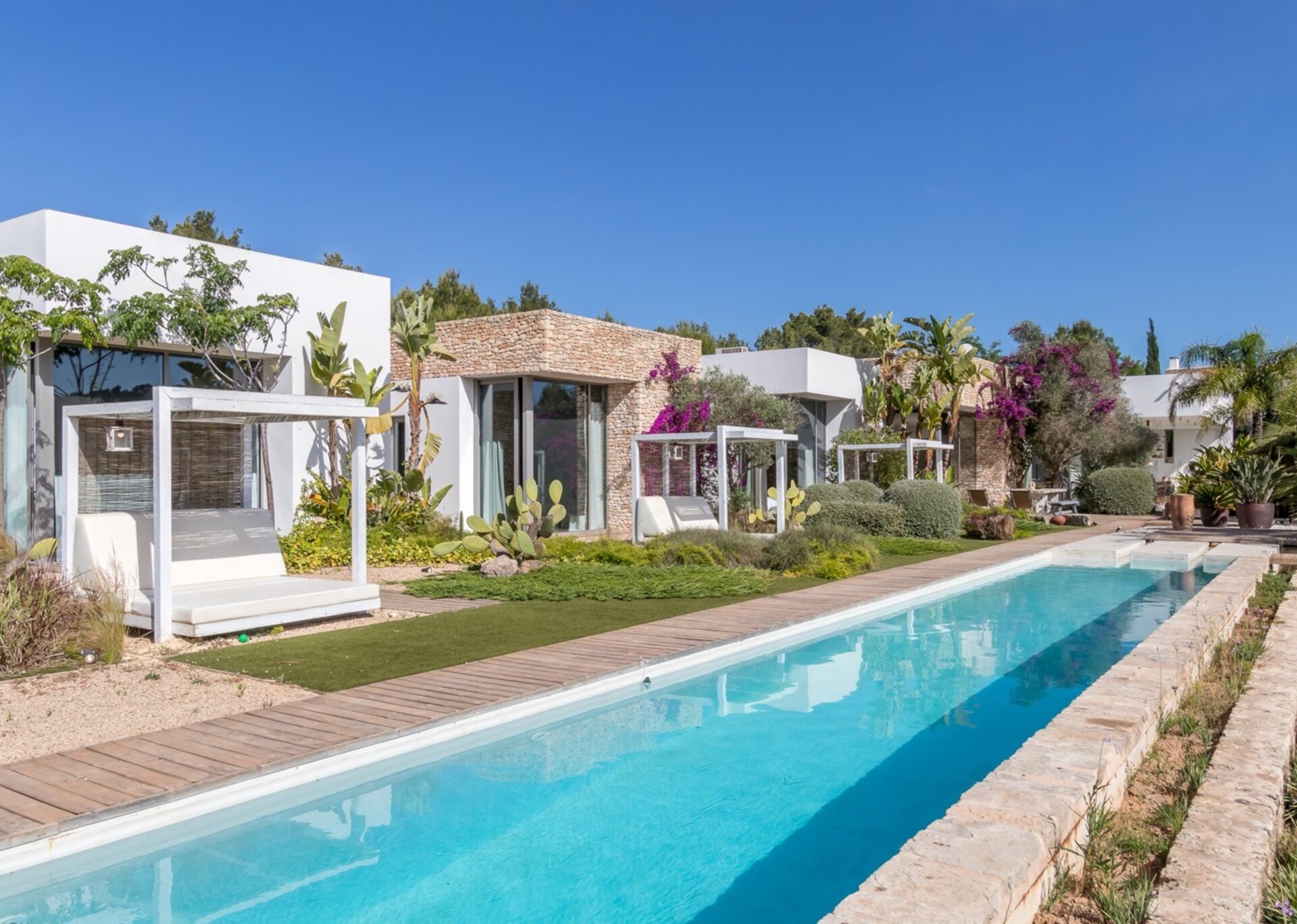 Nestled amidst lush greenery, Verde boasts captivating vistas of the Ibiza countryside. Its modern Spanish architecture and beautifully landscaped grounds, complete with a spacious private pool and ample outdoor areas, will leave a lasting impression as you approach the villa.