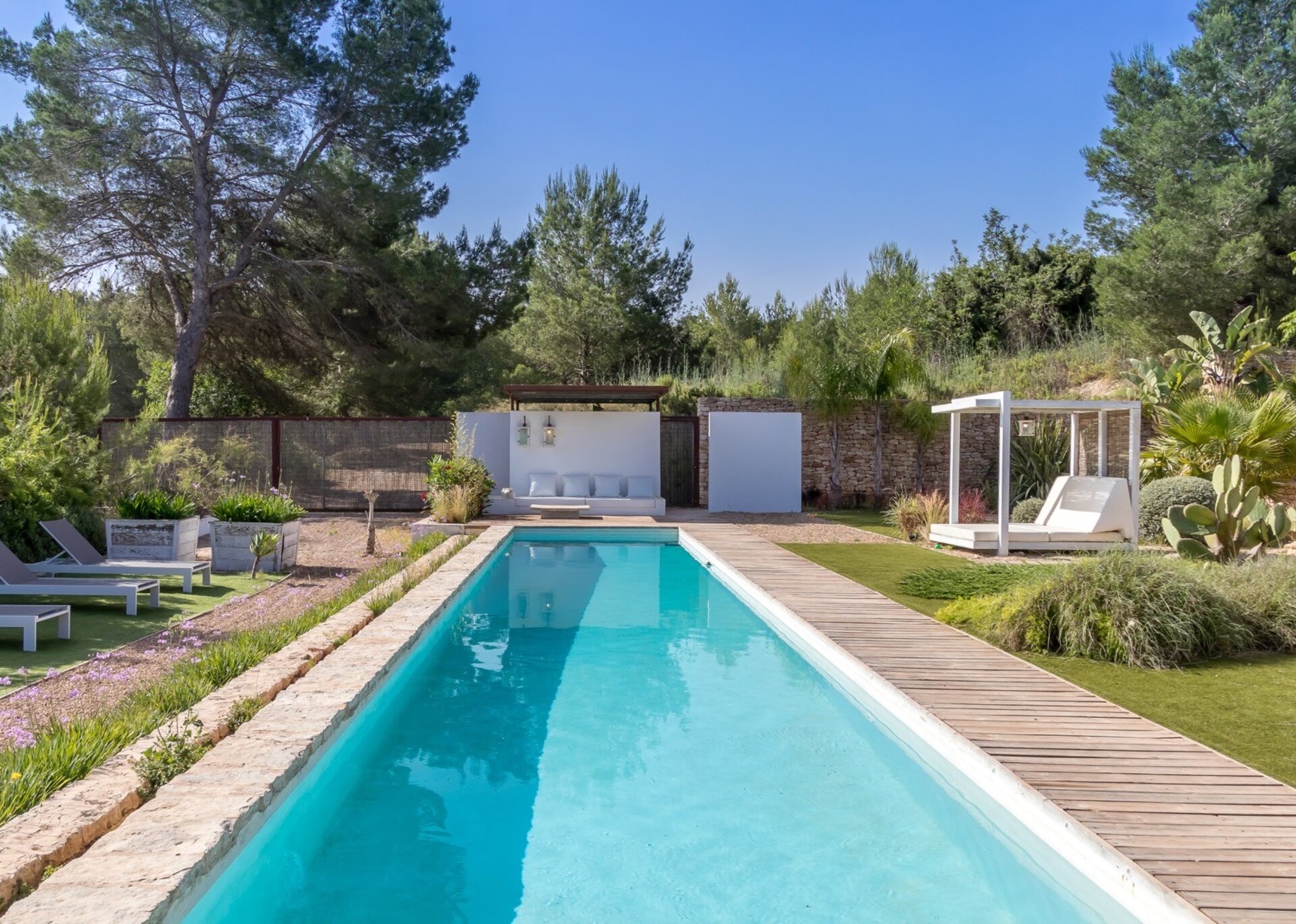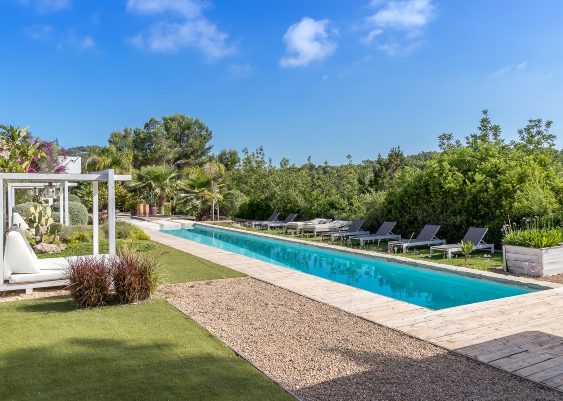 The location of this villa is ideal for families, with Santa Gertrudis village just a 5-minute drive away, Ibiza town reachable in 15 minutes, and Ibiza airport a short 20-minute drive. The nearest beach, Talamanca, is only a 15-minute drive as well.