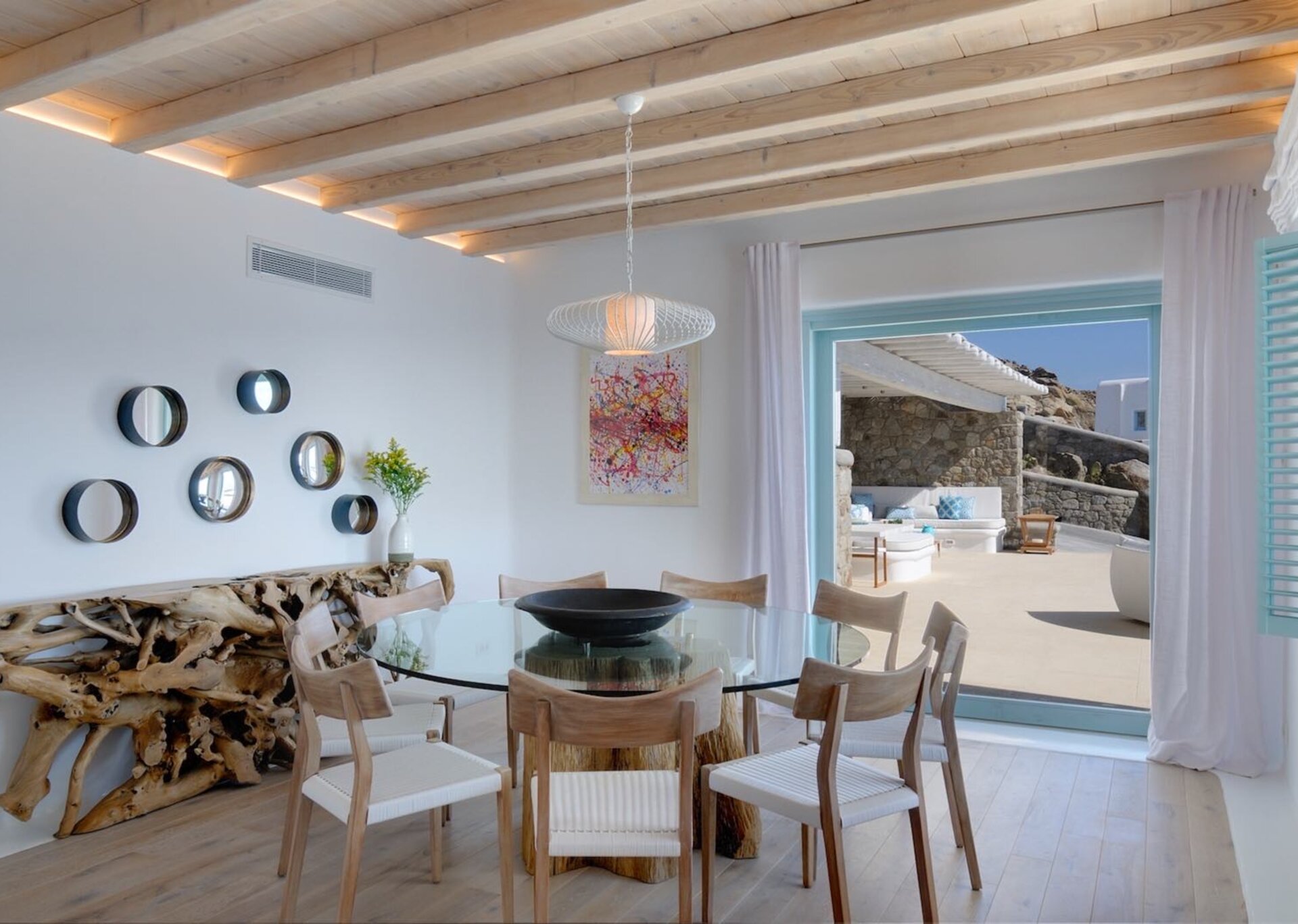 Situated atop a hill, Villa Violet offers panoramic views of the enchanting Delos and Rhenia islands, allowing guests to immerse themselves in the ethereal beauty of breathtaking sunsets punctuating the unspoiled natural landscape. Here, you will embark on an extraordinary journey, where a harmonious fusion of well-being and understated opulence awaits, promising an unparalleled quality of life throughout your stay.