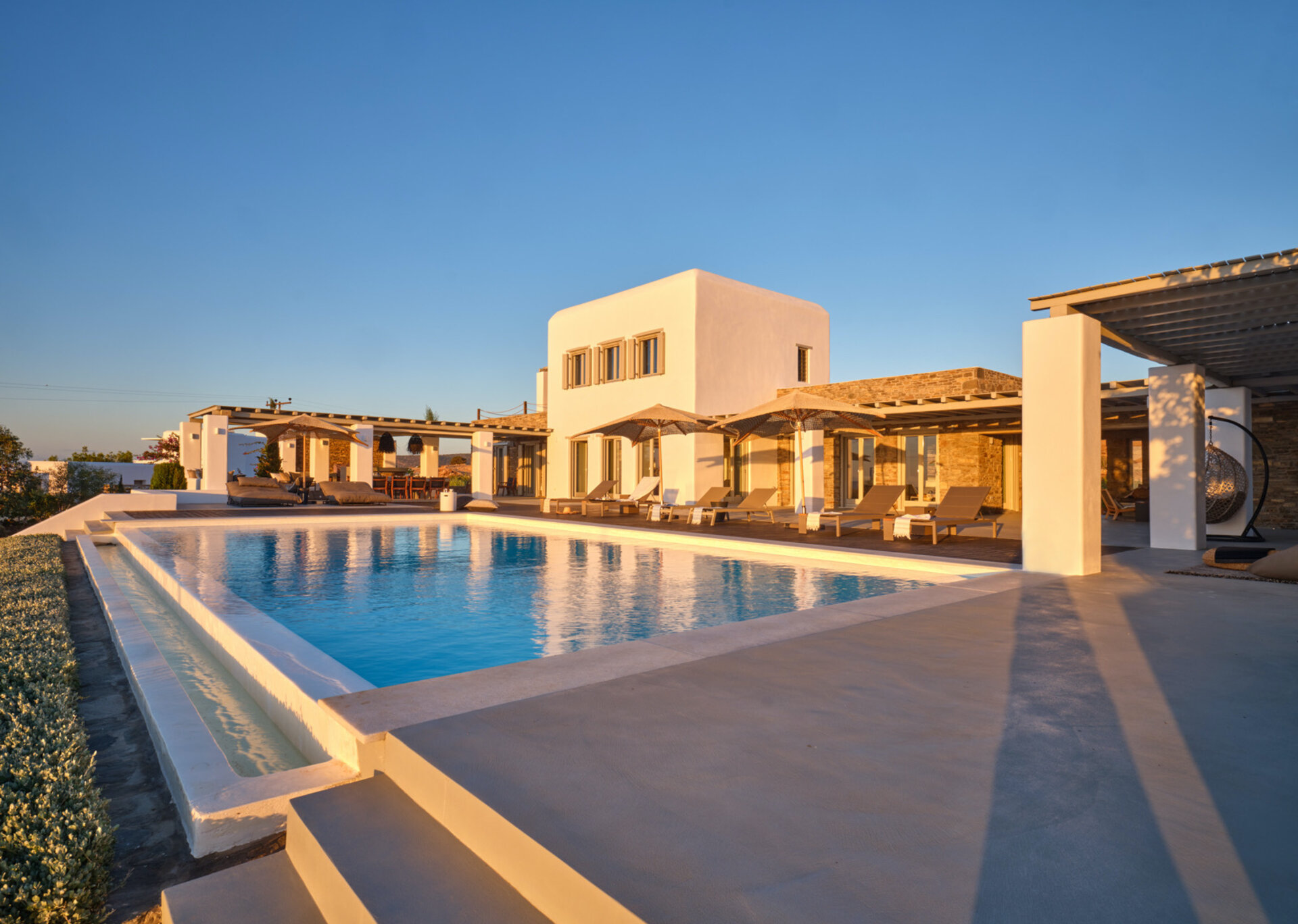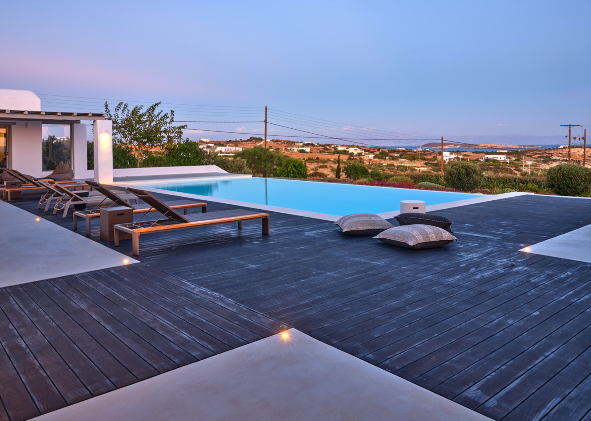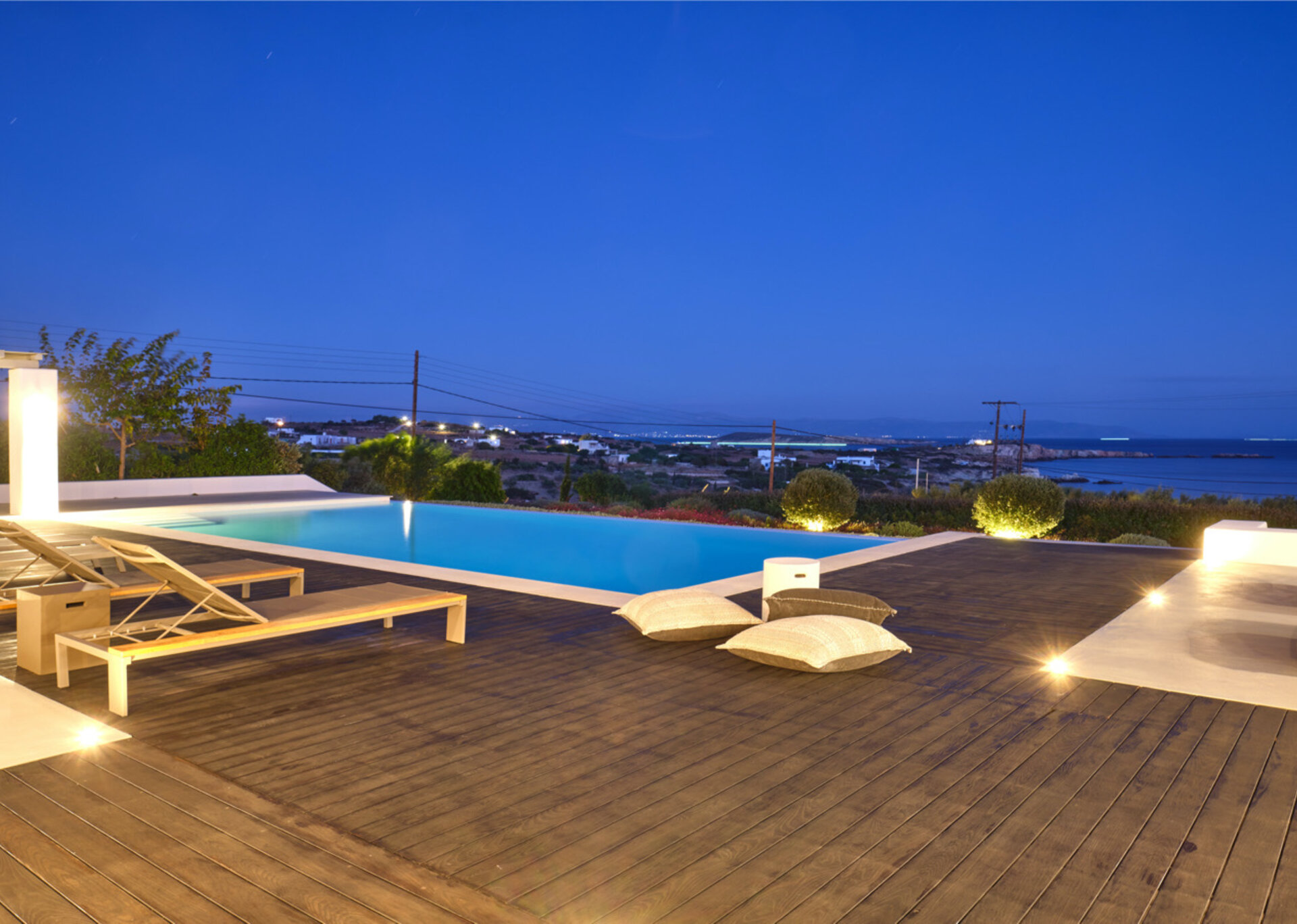Only a 2' walk from the beach and 3-5 minutes driving from Drios village and Chrissi Akti beach, villa Violetta is ideally situated at Drios in Paros and its a unique estate in Greek islands. The property has astounding architecture and a quiet and tranquil atmosphere. This stylish villa is highlighted by the astonishing sea views, the spacious and dashing outdoor areas and the lavish ambience that it has. The outer area contains a large private infinity pool with view, a BBQ and an outer dining area for family gatherings.