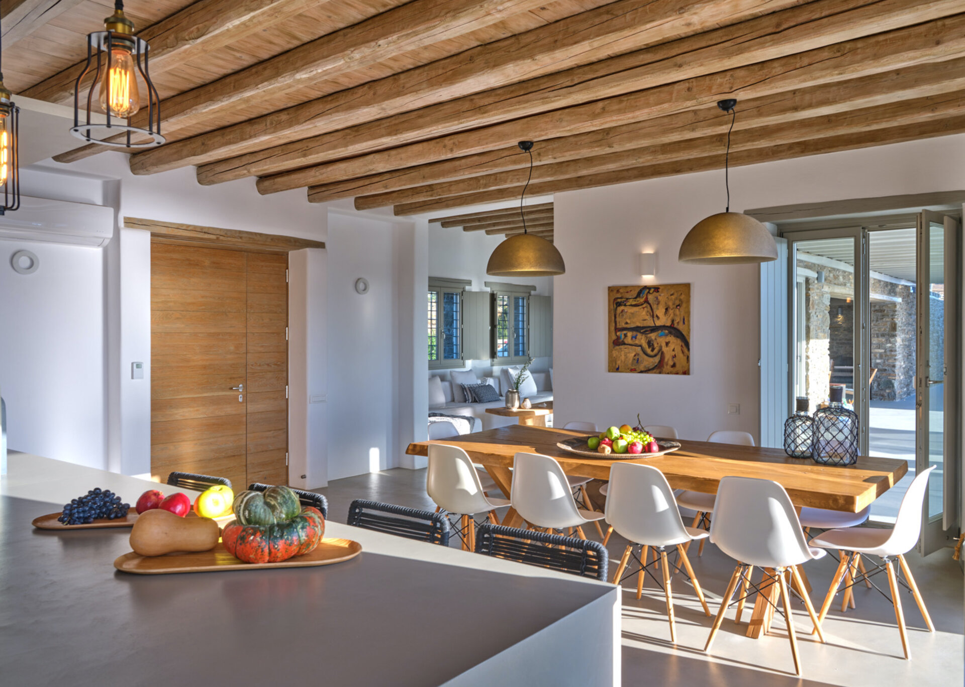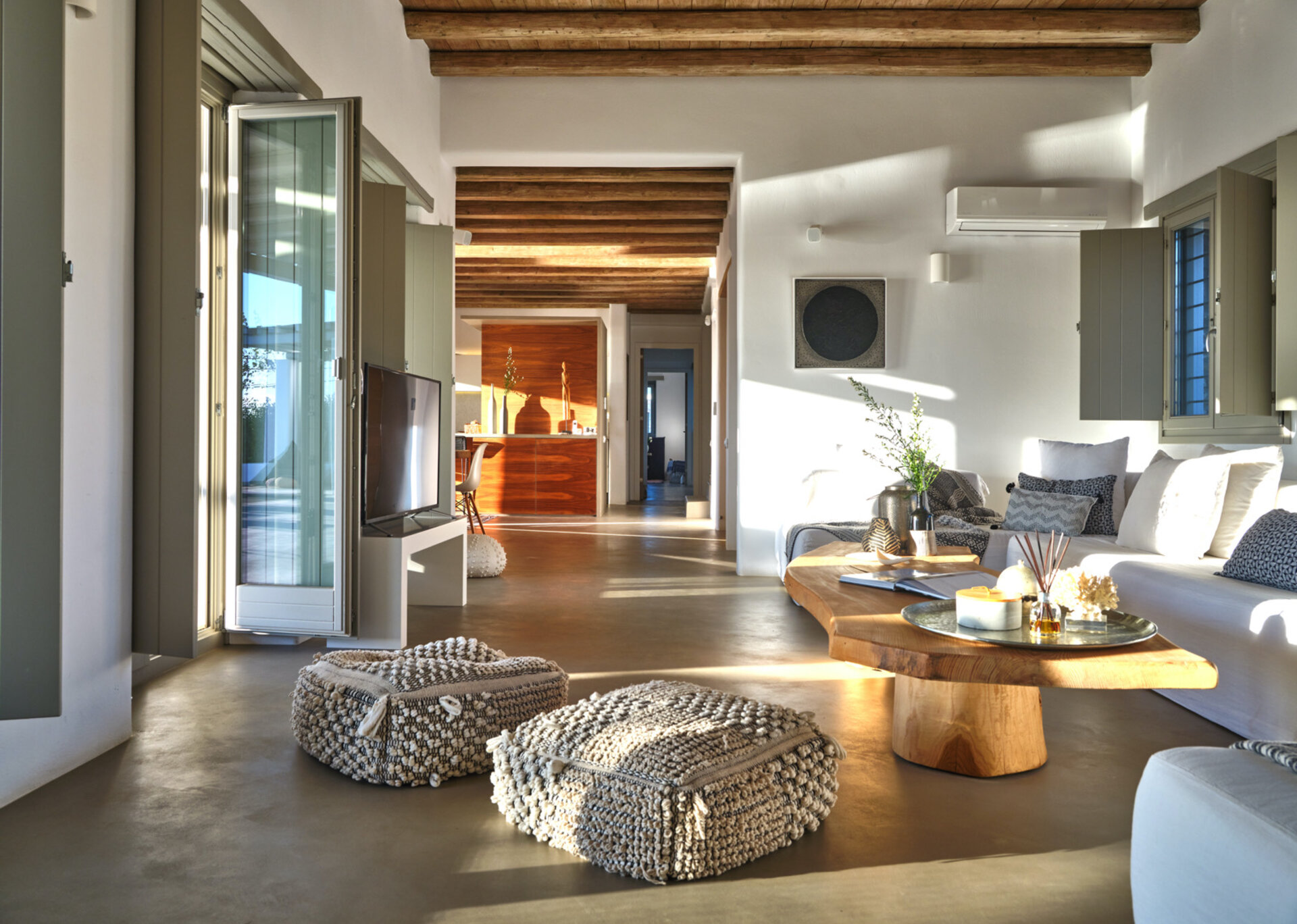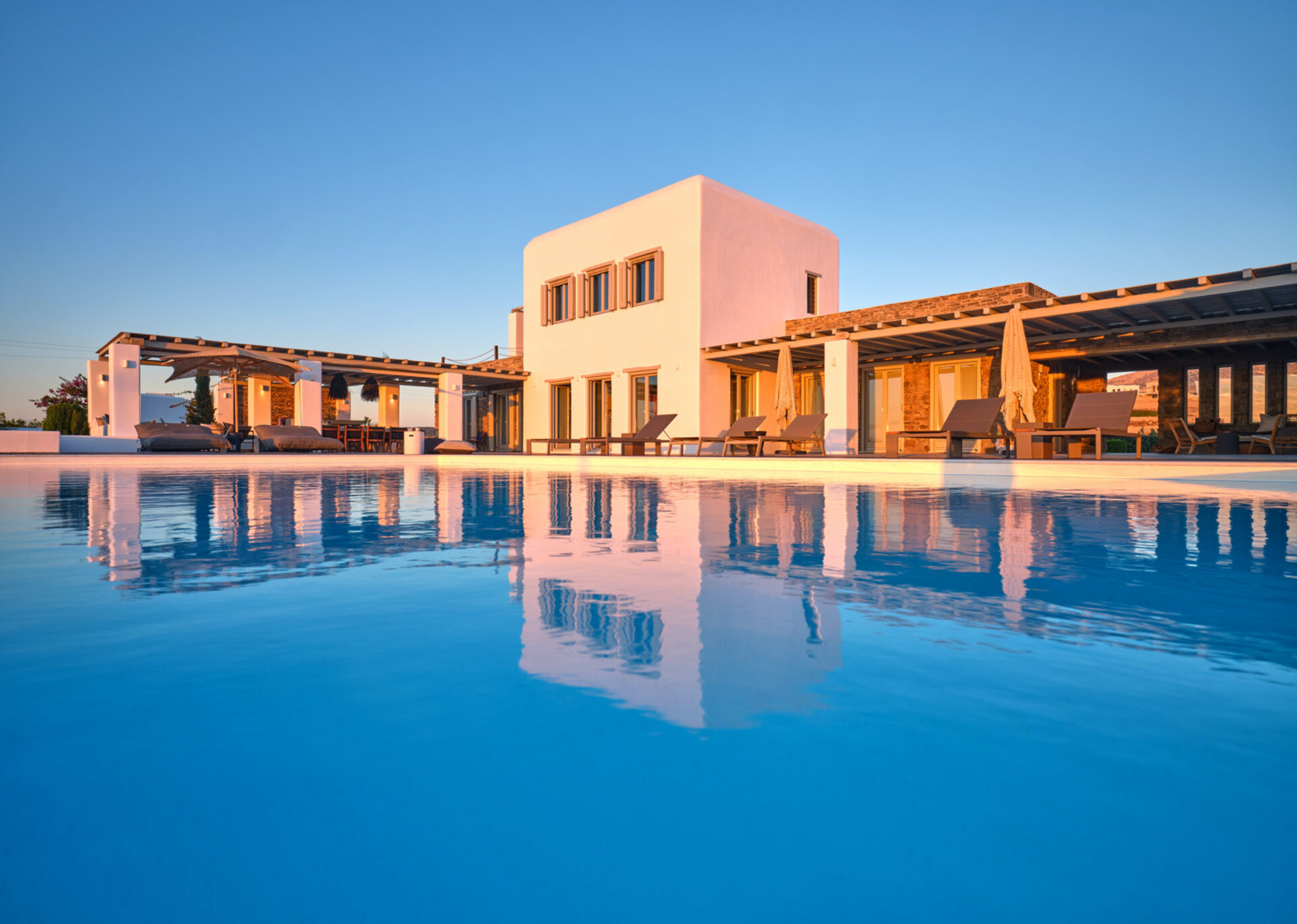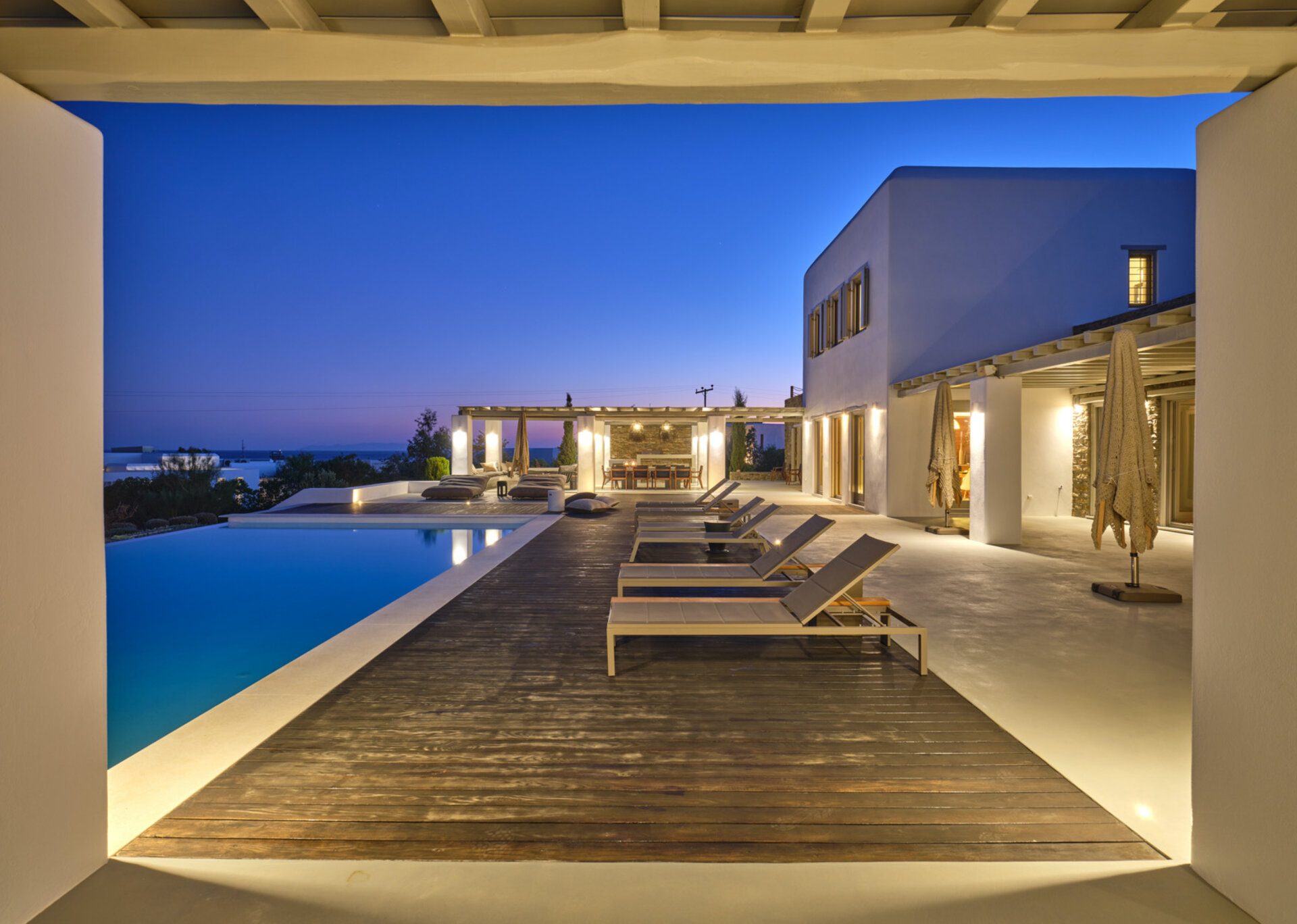 Only a 2' walk from the beach and 3-5 minutes driving from Drios village and Chrissi Akti beach, villa Violetta is ideally situated at Drios in Paros and its a unique estate in Greek islands. The property has astounding architecture and a quiet and tranquil atmosphere. This stylish villa is highlighted by the astonishing sea views, the spacious and dashing outdoor areas and the lavish ambience that it has. The outer area contains a large private infinity pool with view, a BBQ and an outer dining area for family gatherings.
