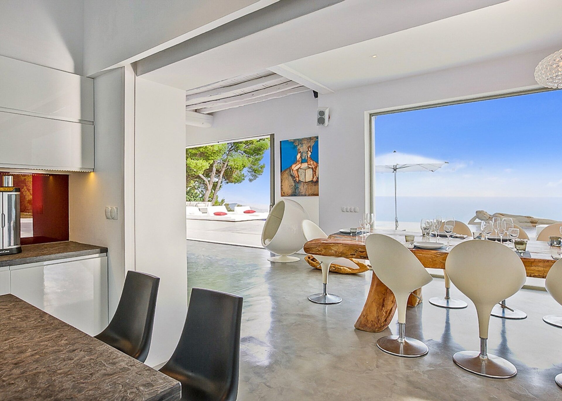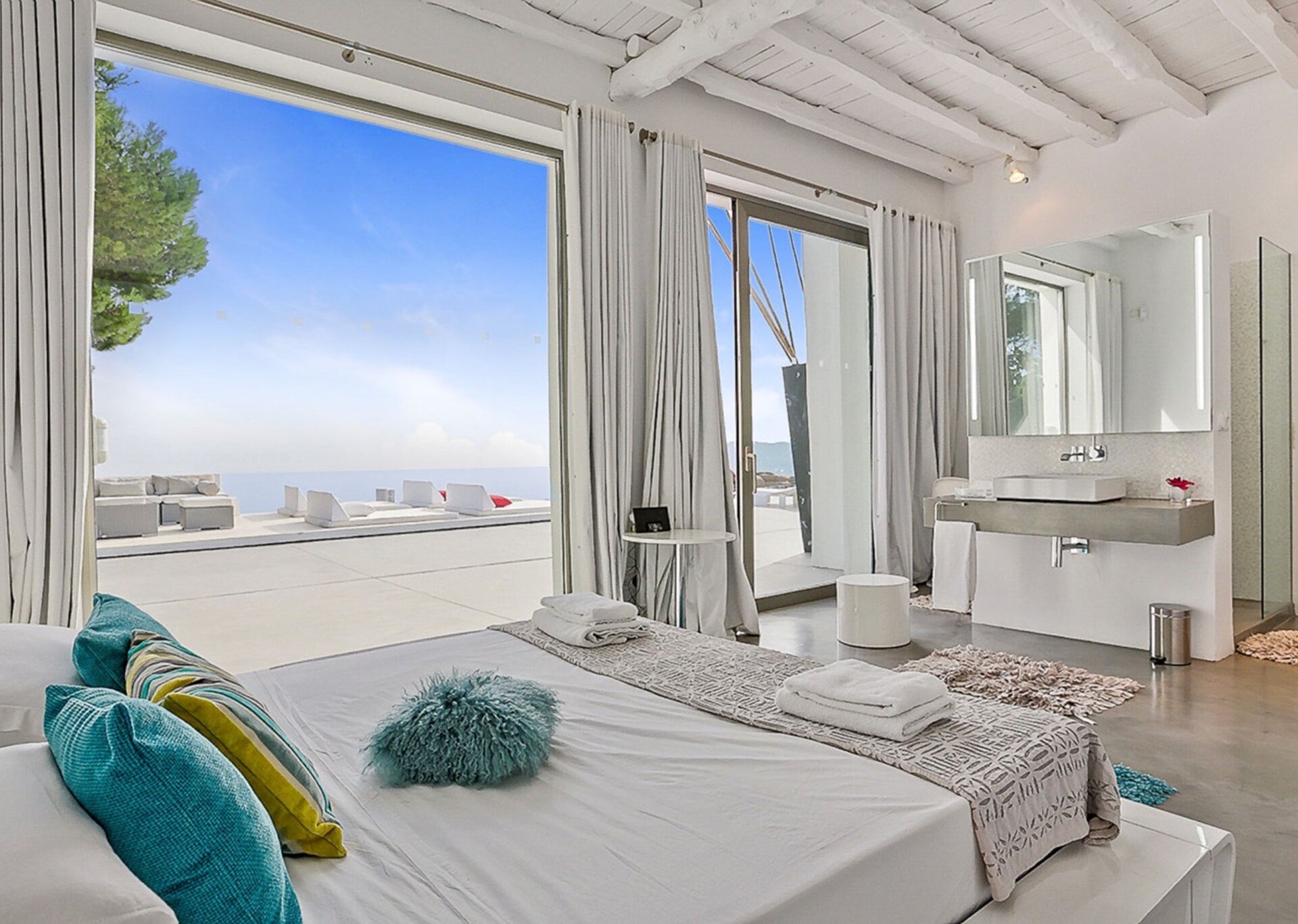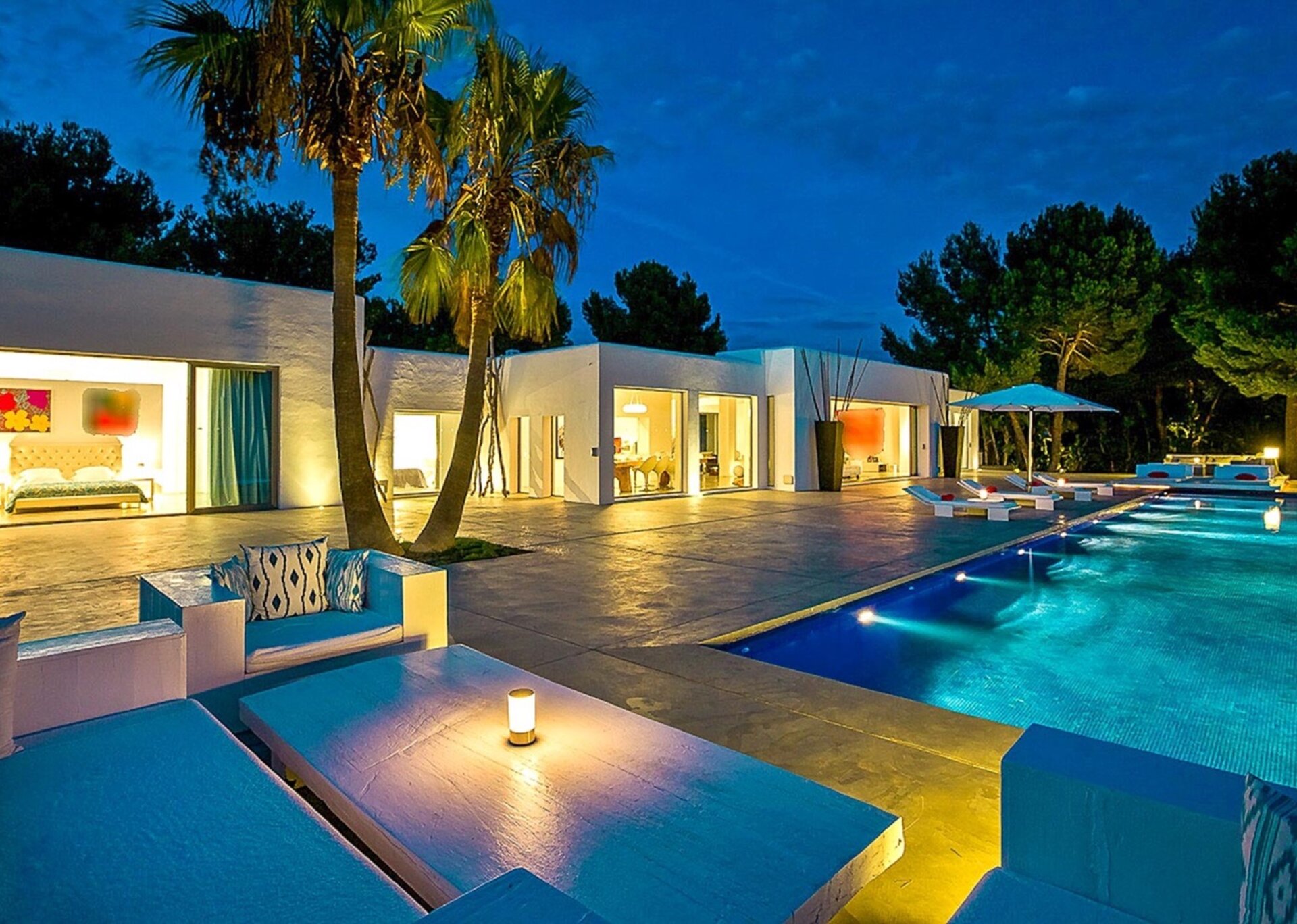 V Wendy, a contemporary minimalist paradise nestled on a hillside in the exclusive Es Cubells area, offers breathtaking views of the Mediterranean Sea stretching towards the neighboring Formentera island and the enchanting lights of Ibiza Town. This private and secluded retreat provides easy access to the ever-popular Cala Jondal bay, home to the renowned Blue Marlin Beach Club, as well as the charming village of San Jose.