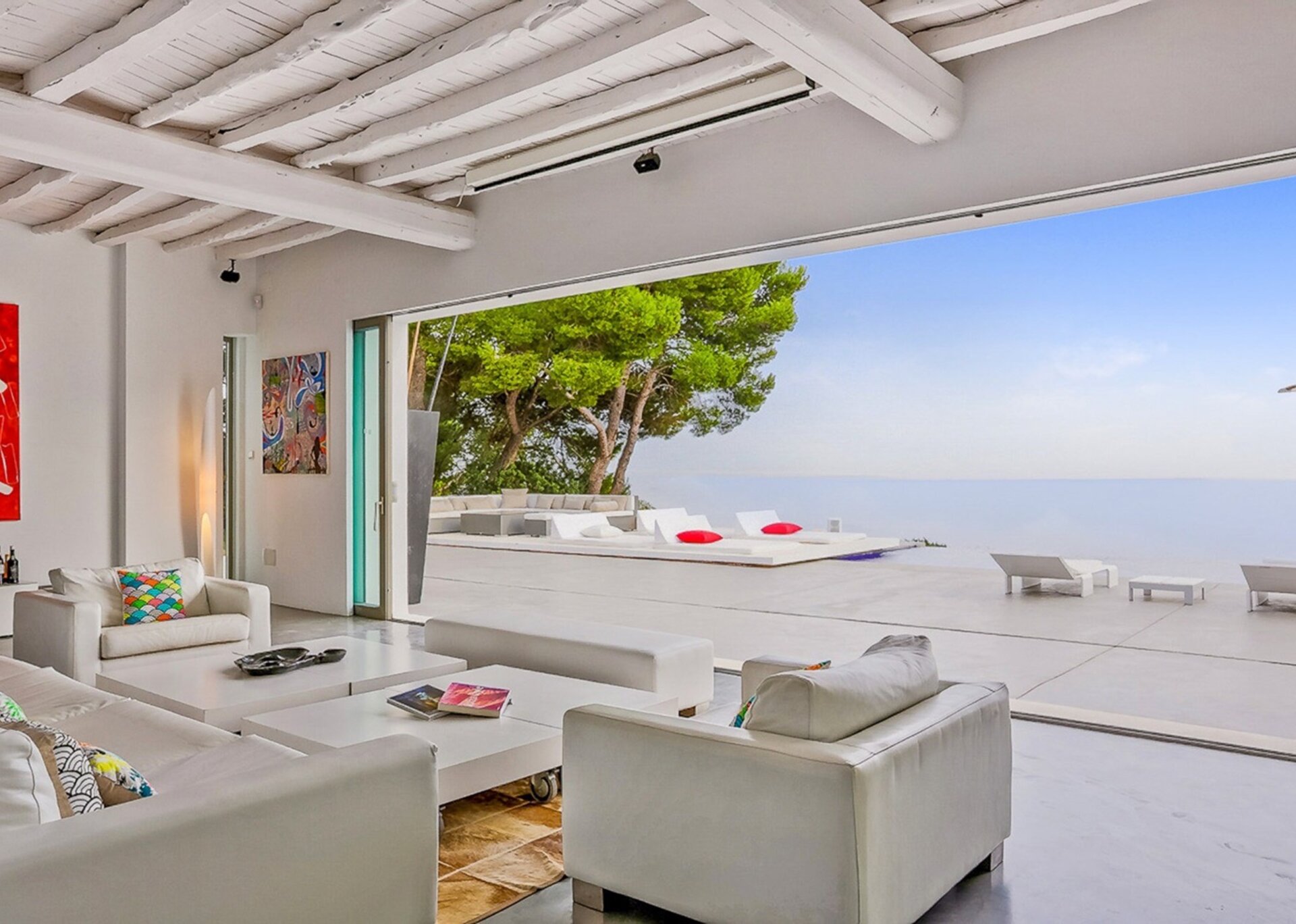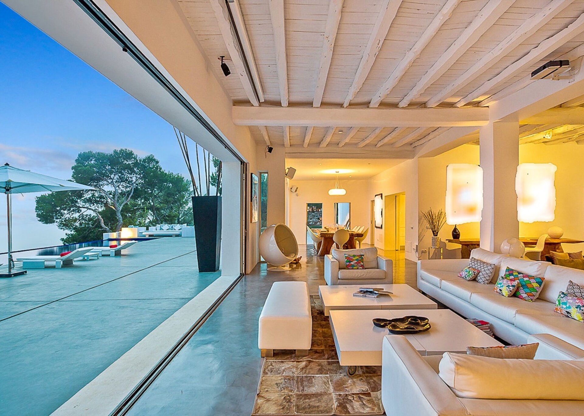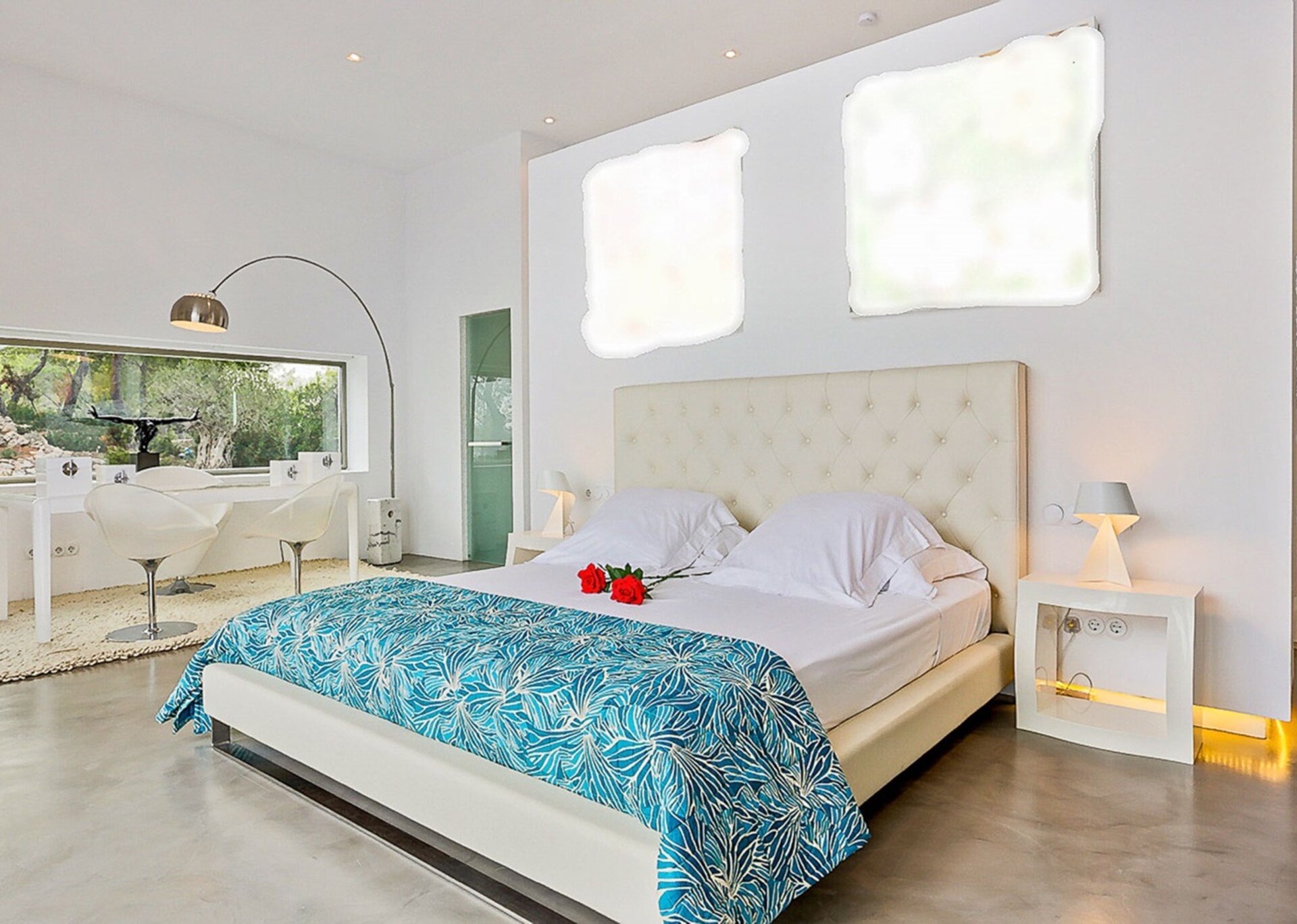V Wendy, a contemporary minimalist paradise nestled on a hillside in the exclusive Es Cubells area, offers breathtaking views of the Mediterranean Sea stretching towards the neighboring Formentera island and the enchanting lights of Ibiza Town. This private and secluded retreat provides easy access to the ever-popular Cala Jondal bay, home to the renowned Blue Marlin Beach Club, as well as the charming village of San Jose.