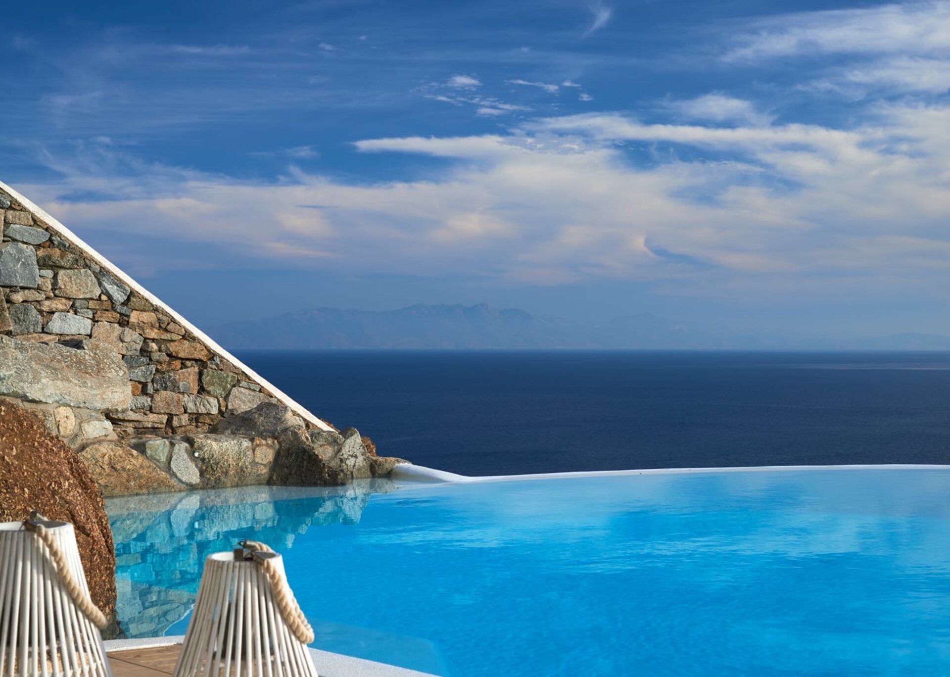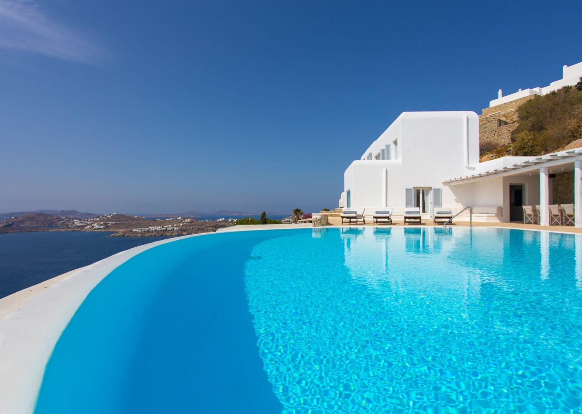 Overlooking a breathtaking vista of numerous Cyclades islands and the Aegean sea, surrounded by all shades of blue, crystal waters and bare rocks, this exclusive property is situated on the spectacular and prestigious location of Mykonos, Agios Lazaros. Nestled on the cliff-side, superbly constructed and sheltered by almost all wind directions, the building stands out in the surrounding landscape, ideally combining the stark clean lines of local architecture with premium refinement.